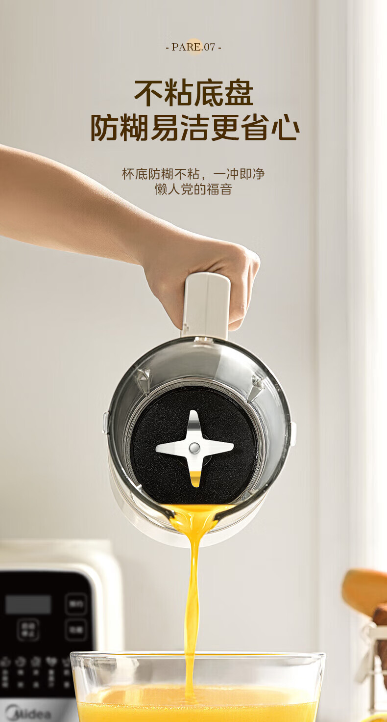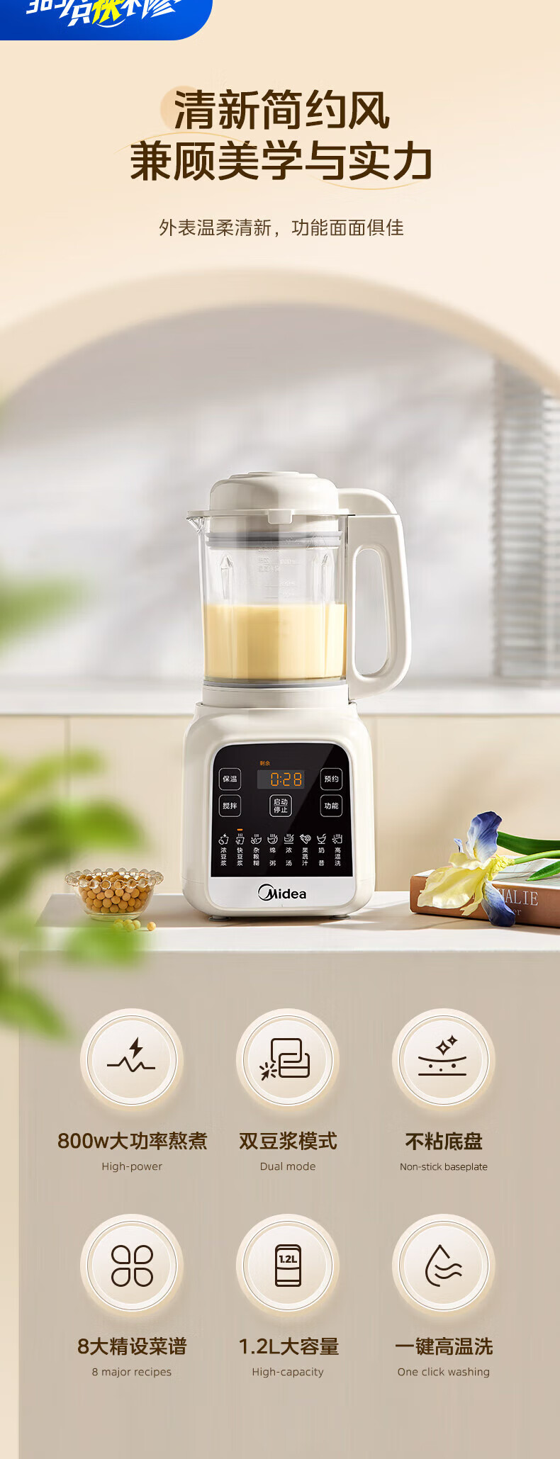 美的(Midea)破壁机家用小型1-2人 1.2L容量多功能免滤豆浆机 五谷杂粮米糊料理机辅食机榨汁机 【双豆浆模式】MJ-PB50G2-001