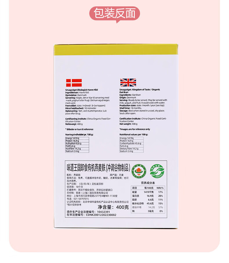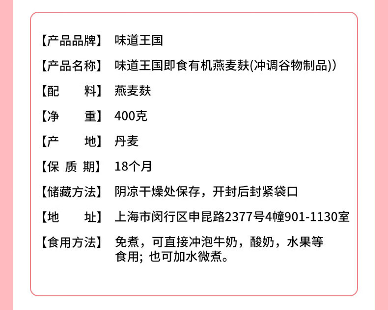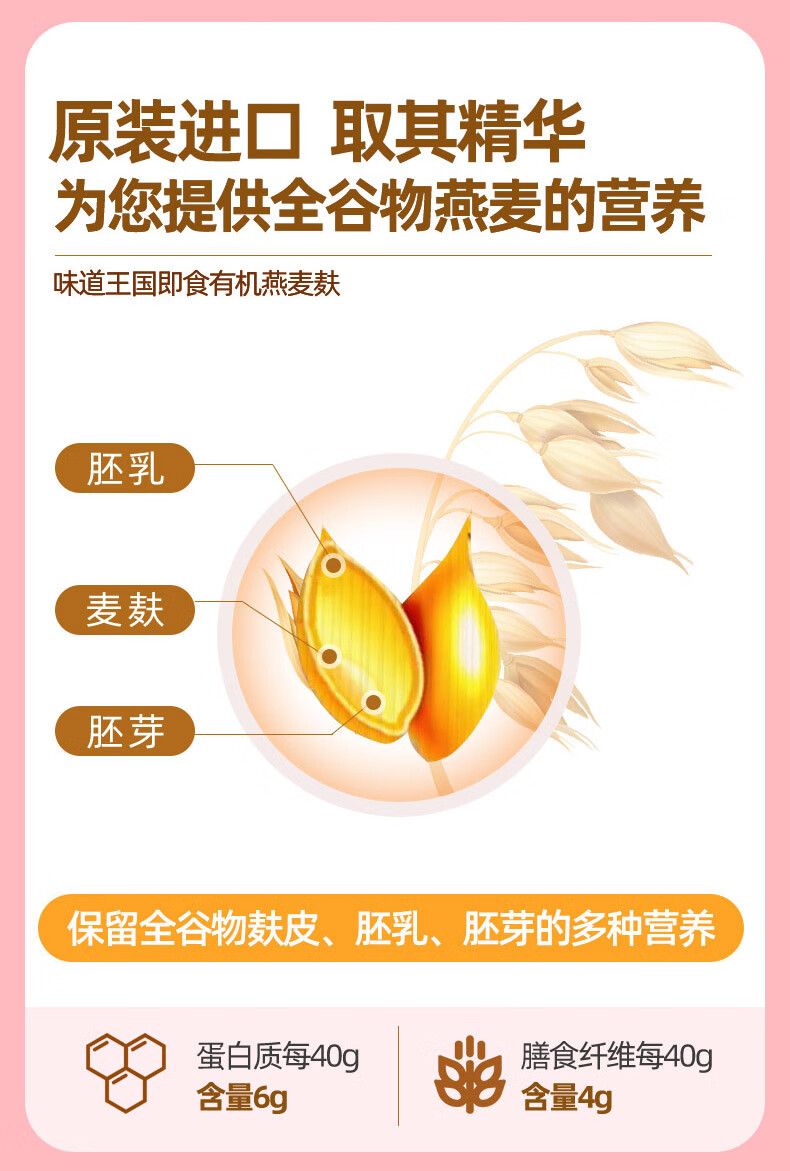 味道王国进口有机燕麦麸皮400g 冲饮即食 抗饿代餐食品 0添加富含膳食纤维