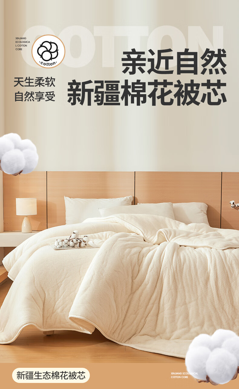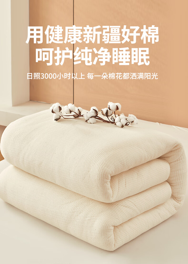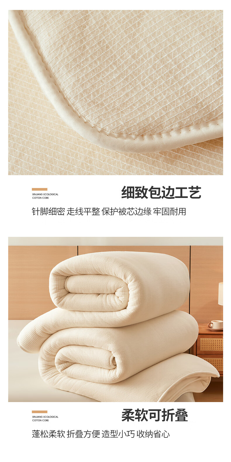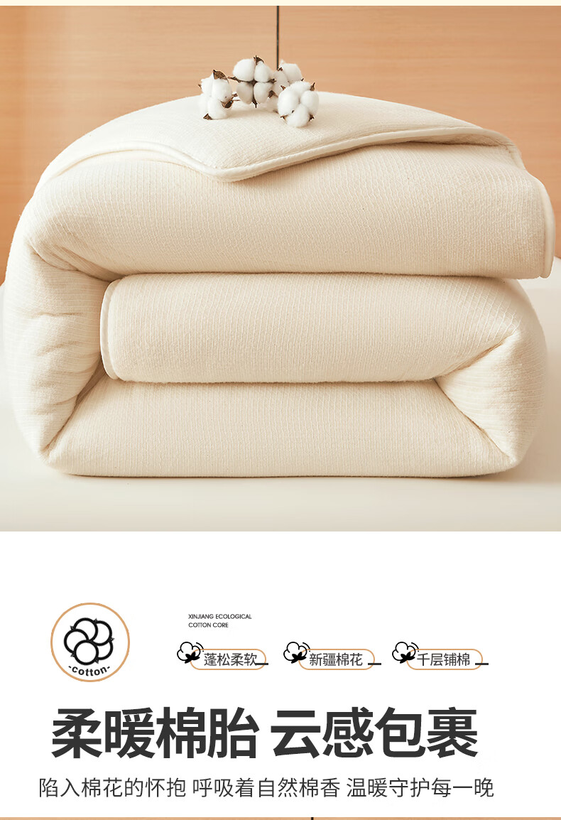 VJEA类新疆一级棉被芯100纯棉花被子冬被加厚保暖棉絮垫被褥子棉花胎 铺盖两用-棉花被 220*240cm【约6斤重】100%新疆一级棉