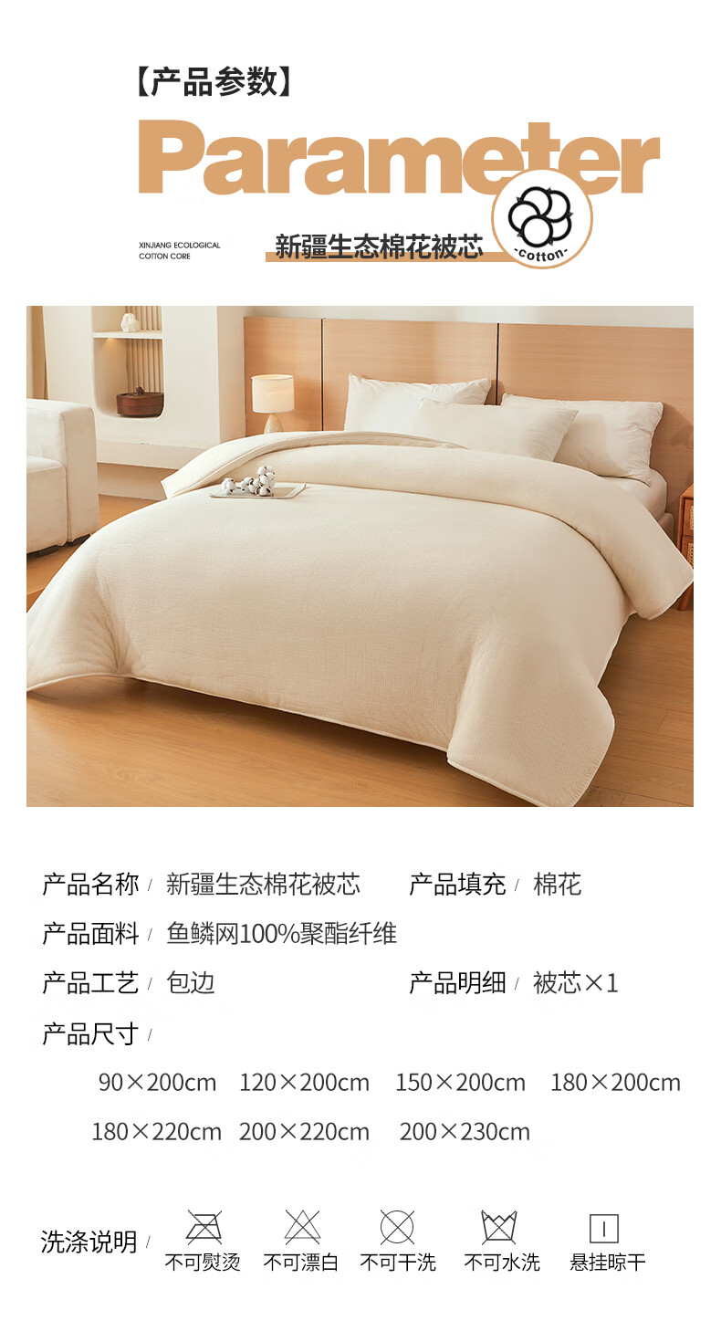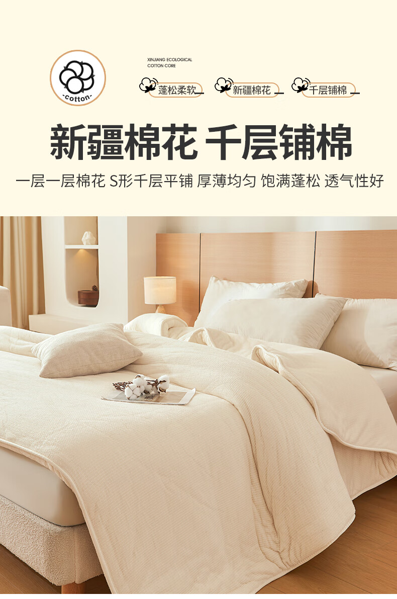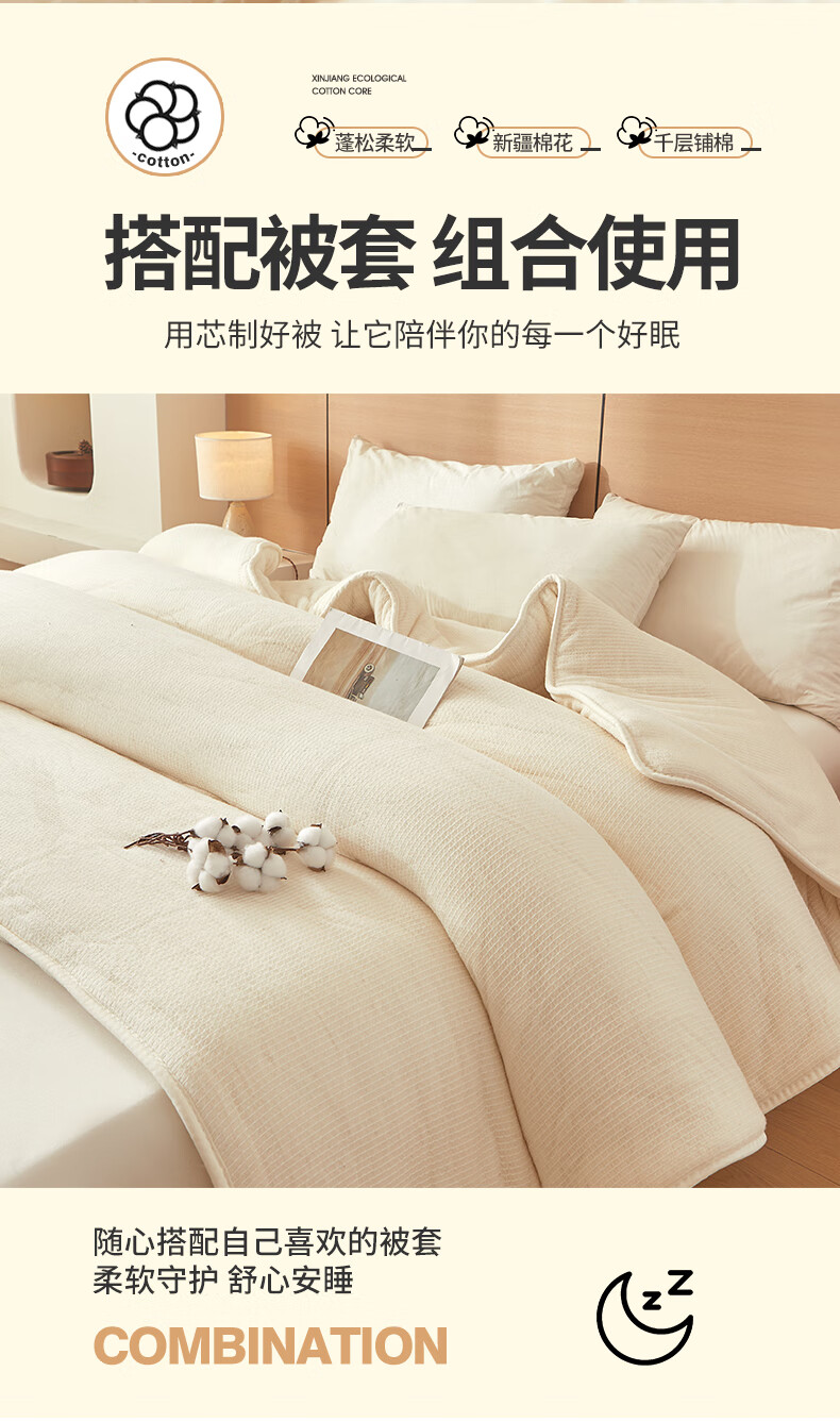 VJEA类新疆一级棉被芯100纯棉花被子冬被加厚保暖棉絮垫被褥子棉花胎 铺盖两用-棉花被 220*240cm【约6斤重】100%新疆一级棉