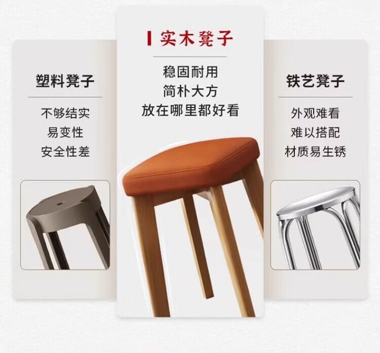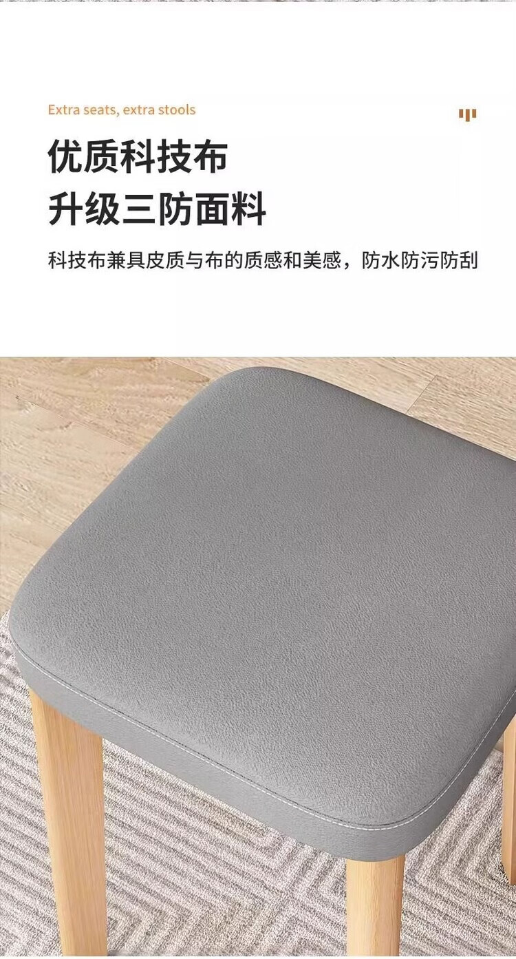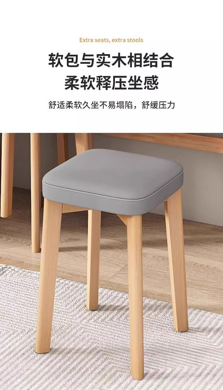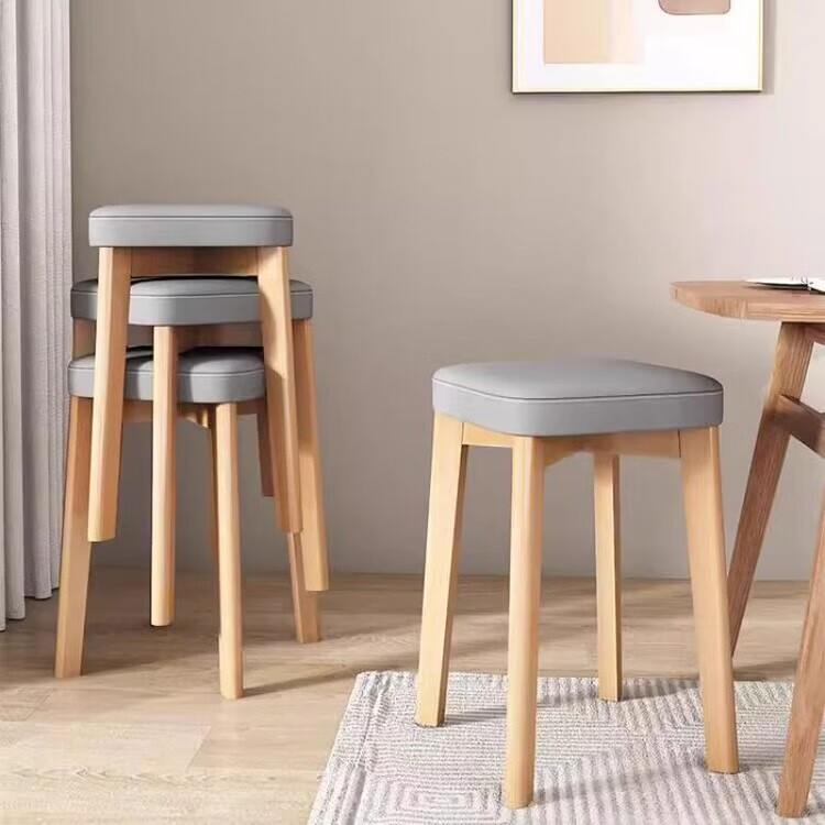 欣慕雅实木凳子家用软包叠放客厅方凳餐桌简约矮凳简约板凳餐椅化妆椅子 【平面软包】原木色+灰色-油蜡皮【榉木腿】
