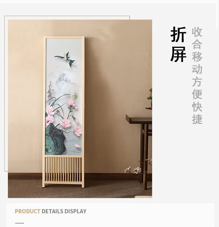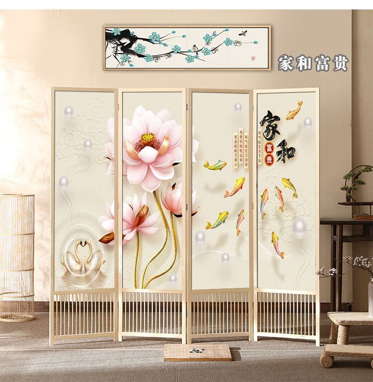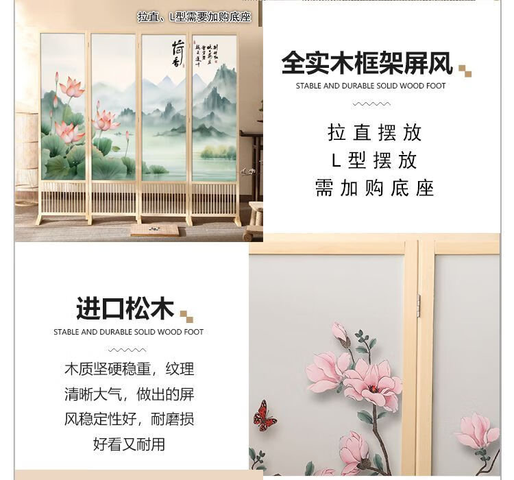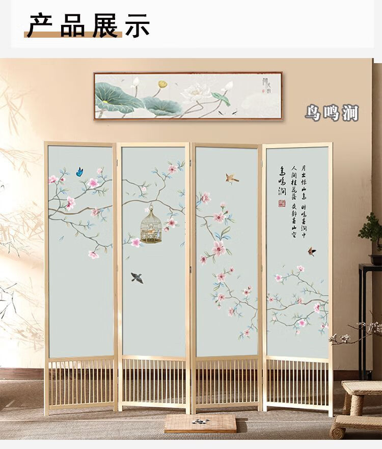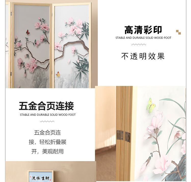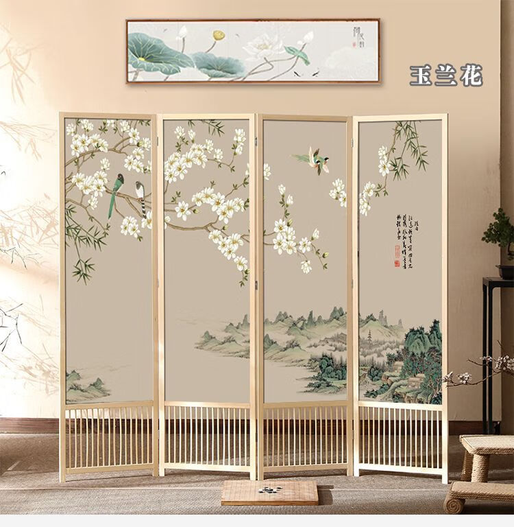 欣慕雅现代中式实木可折叠移动家用屏风隔断客厅卧室书房酒店宾馆办公室 玉兰花 1.8米高x3扇(遮挡1.2-1.3米宽)