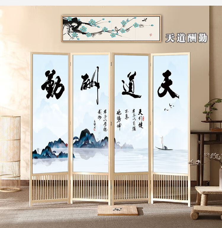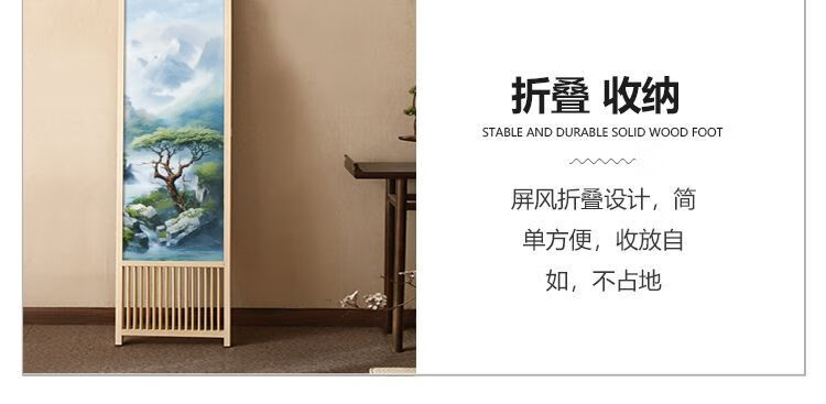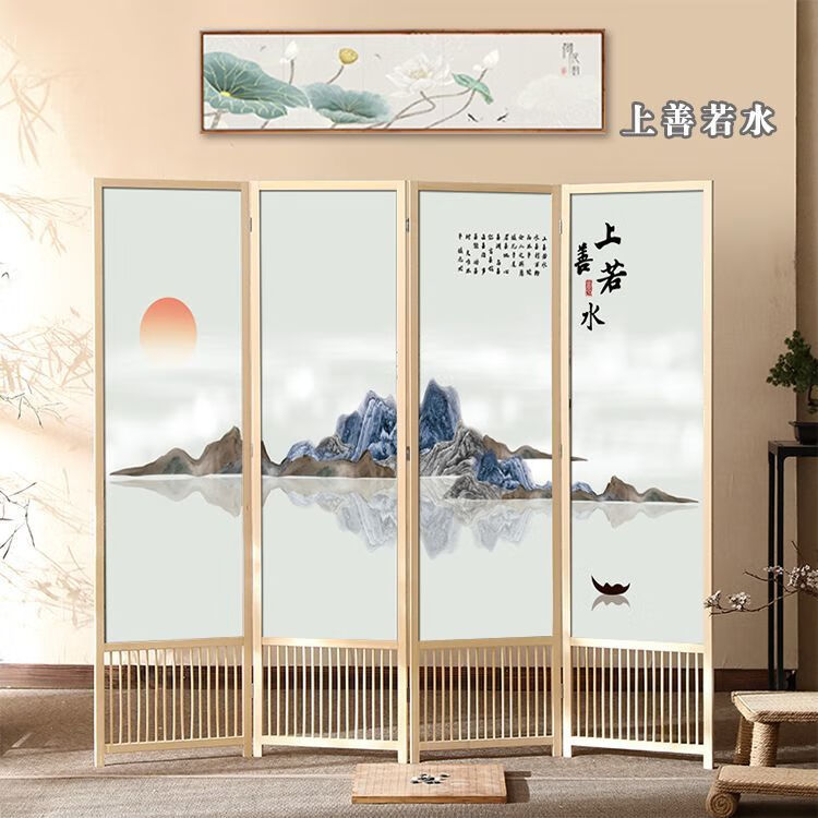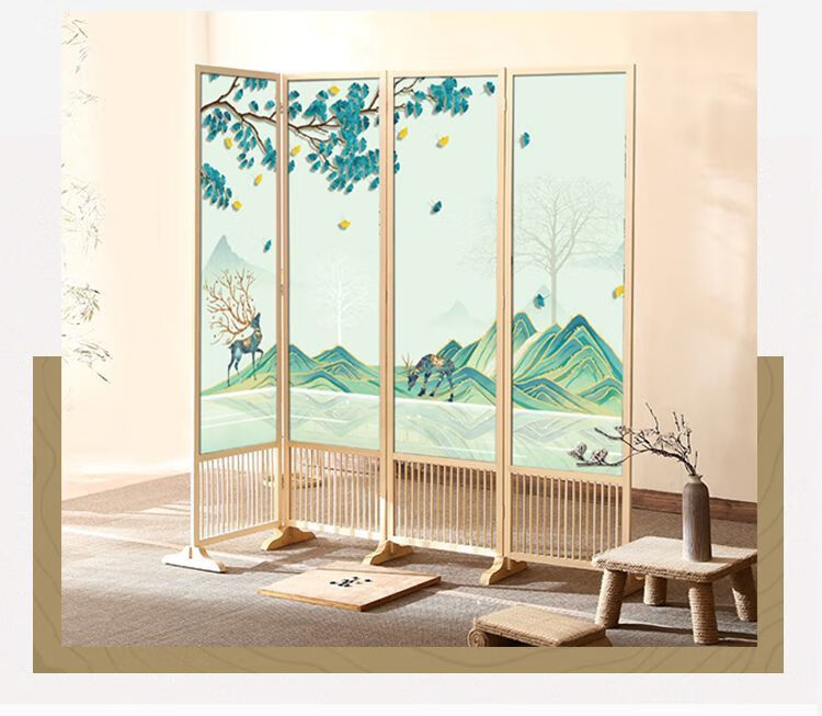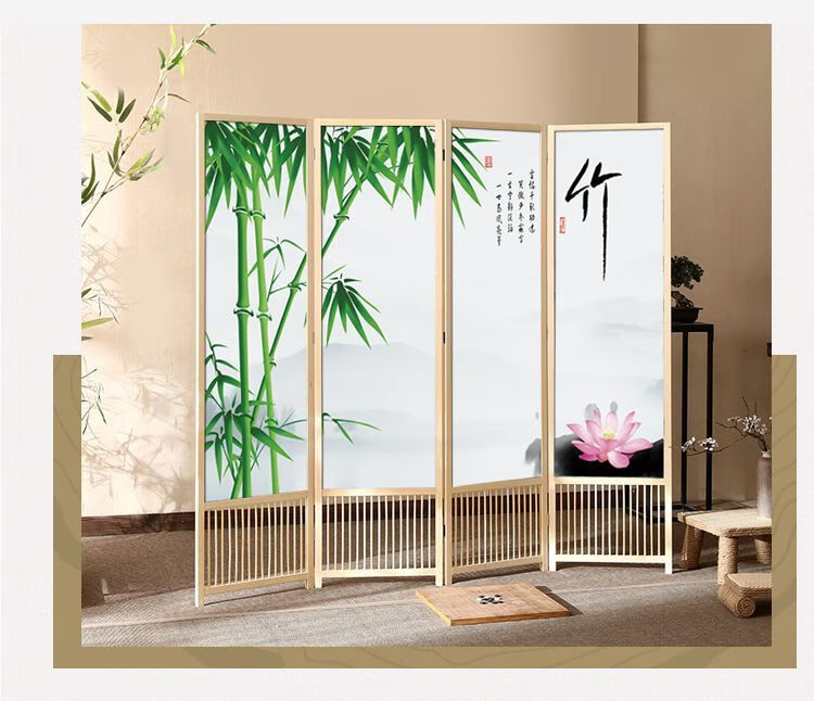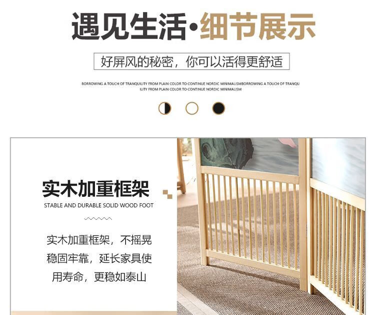 欣慕雅现代中式实木可折叠移动家用屏风隔断客厅卧室书房酒店宾馆办公室 玉兰花 1.8米高x3扇(遮挡1.2-1.3米宽)