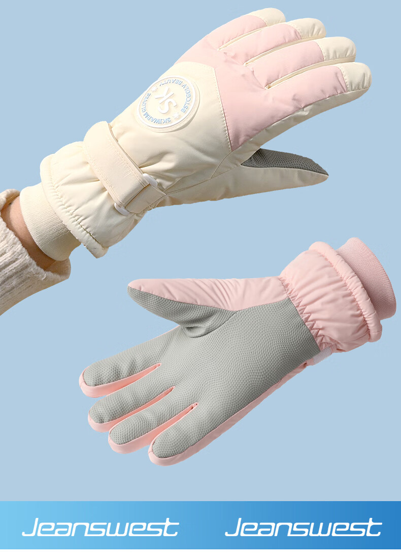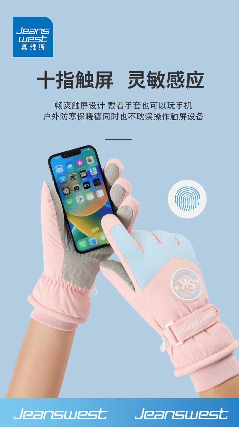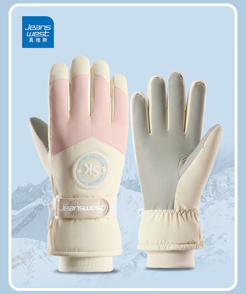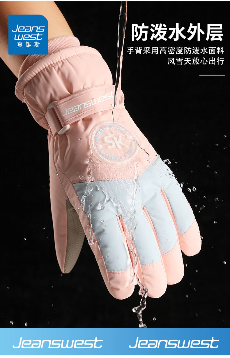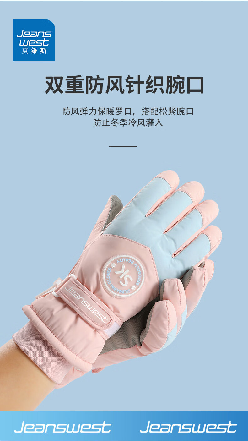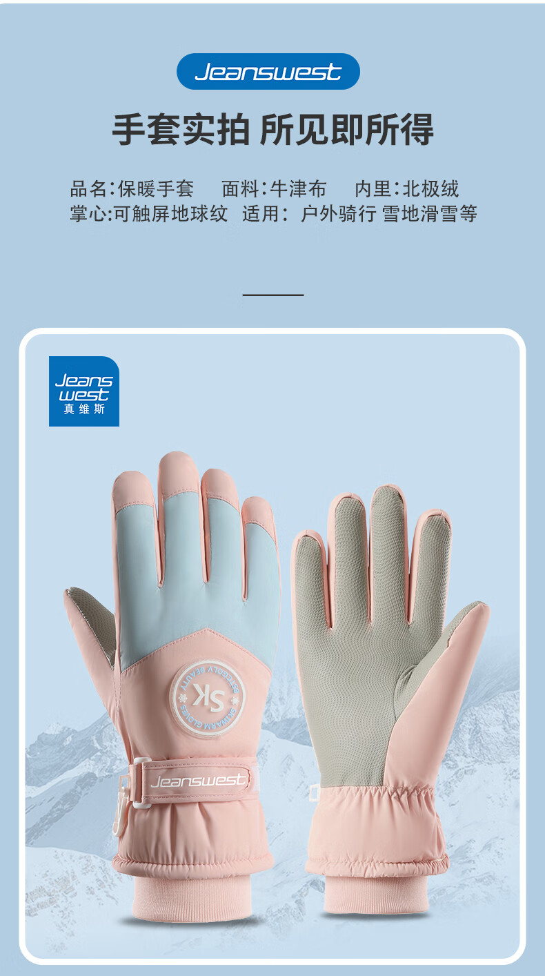 真维斯(Jeanswest)冬季保暖手套加绒加厚滑雪骑行户外防风防水防滑触屏女防滑 SK 女标-米粉色 均码