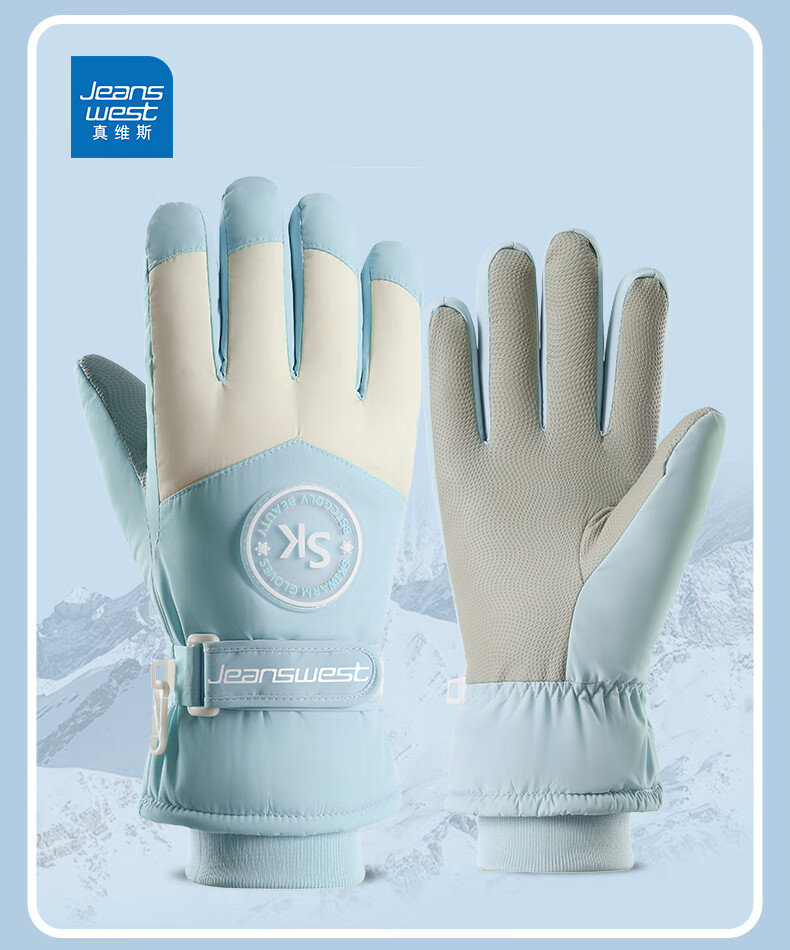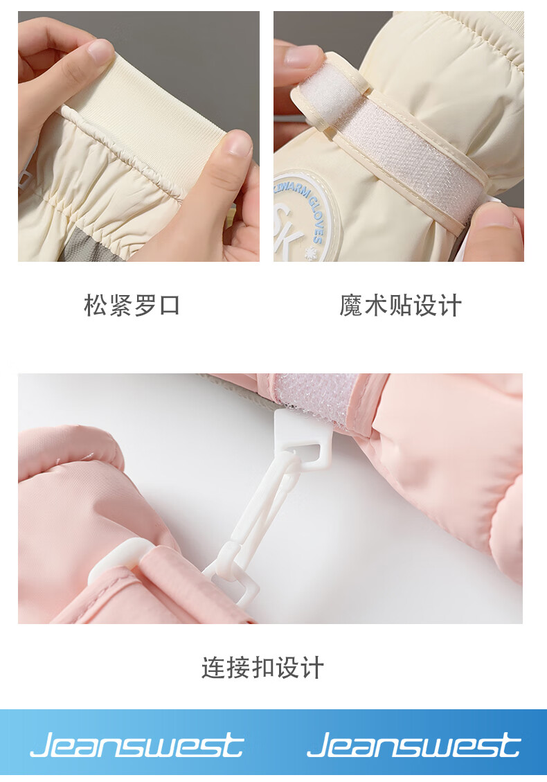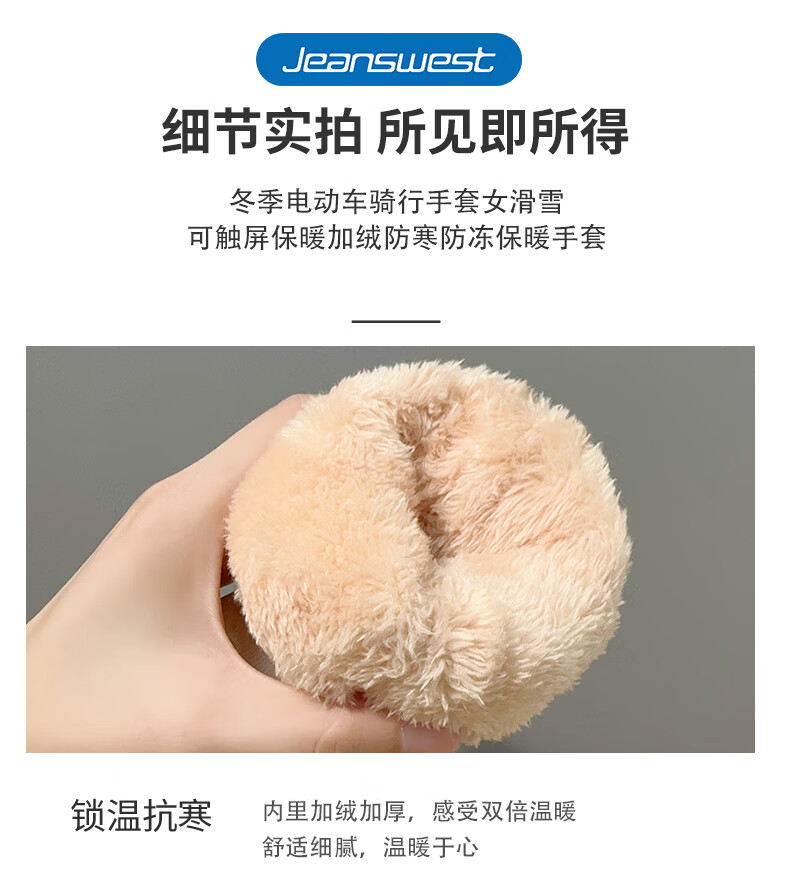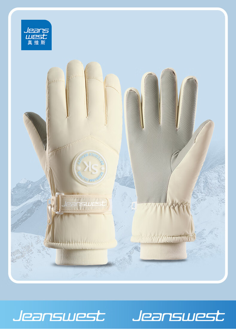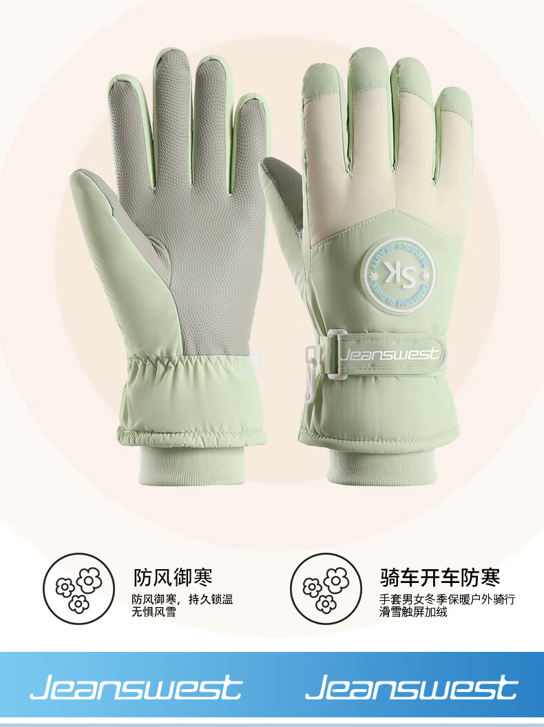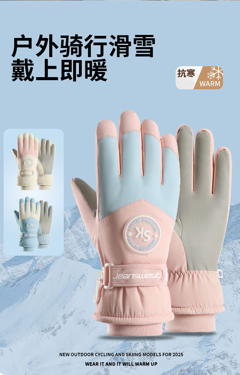 真维斯(Jeanswest)冬季保暖手套加绒加厚滑雪骑行户外防风防水防滑触屏女防滑 SK 女标-米粉色 均码