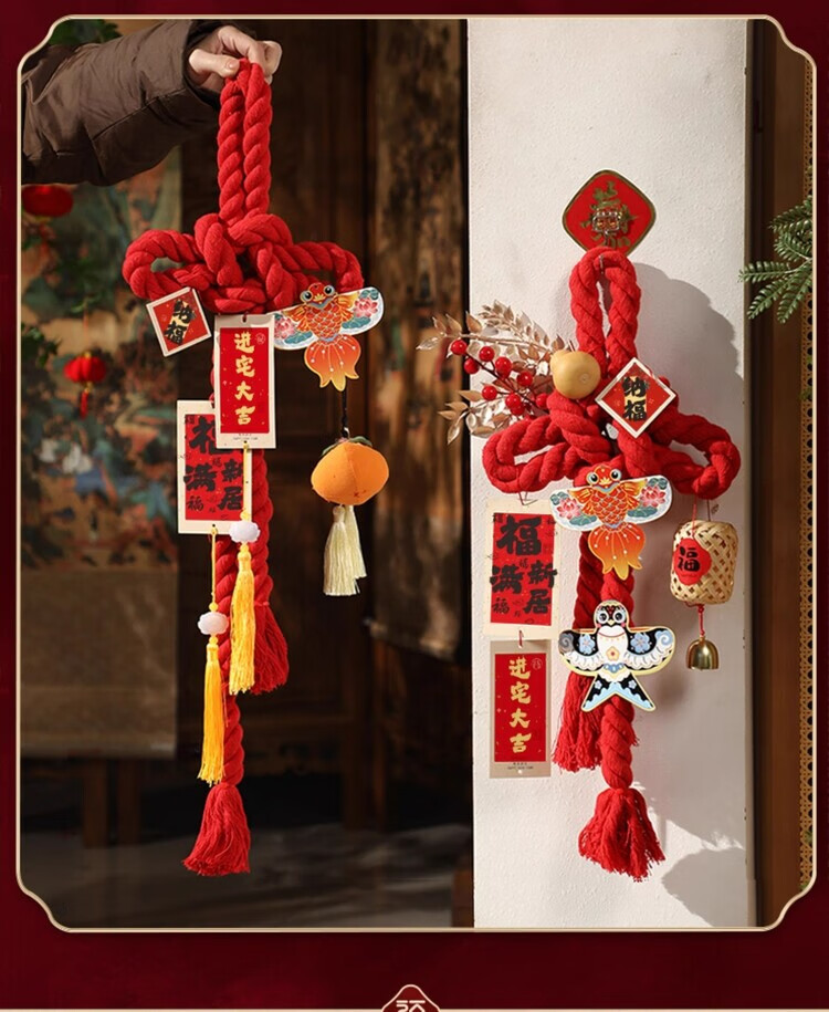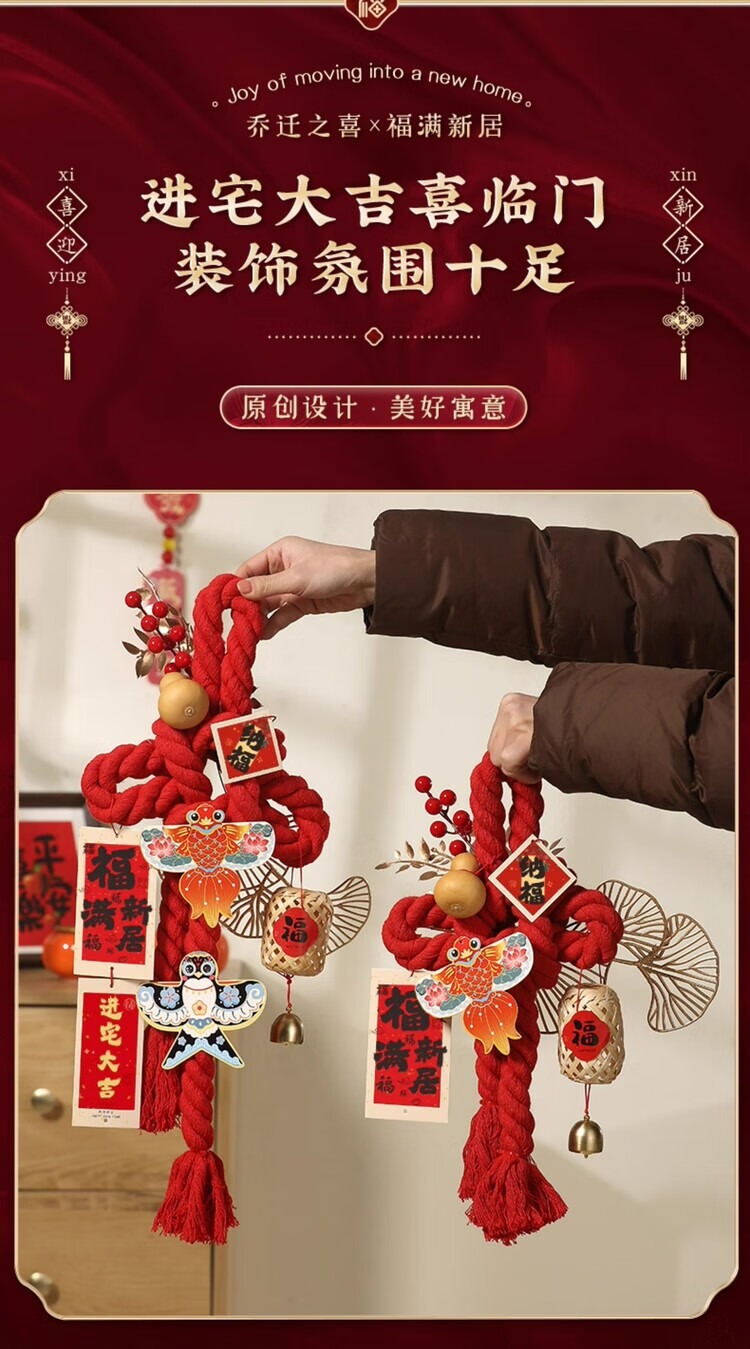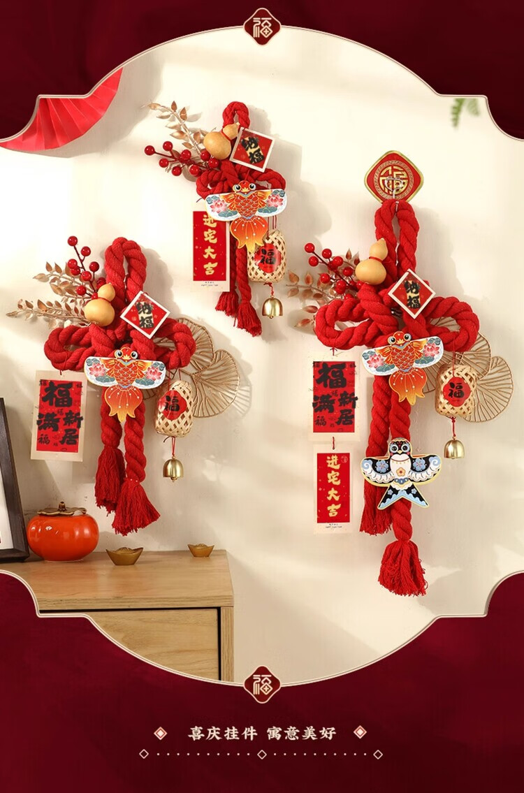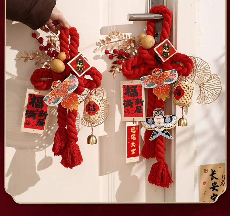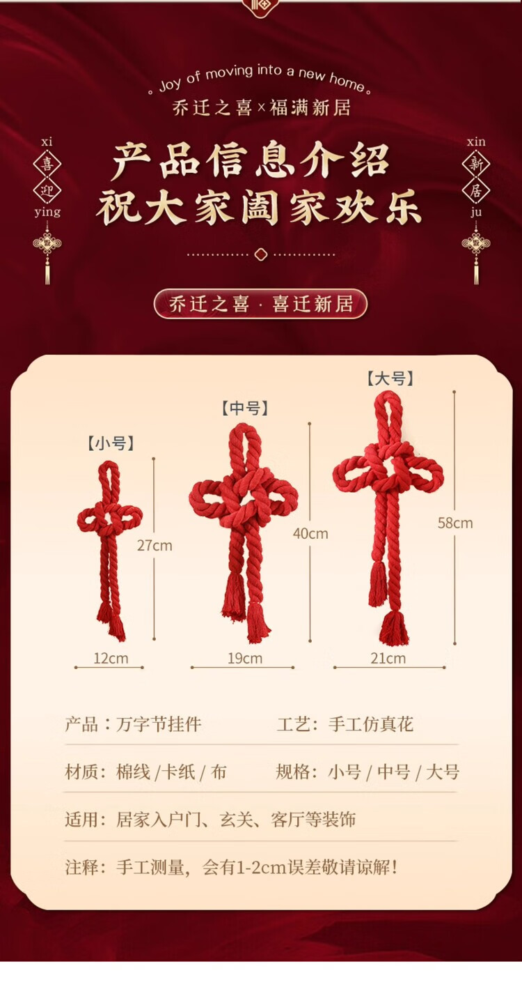 OYKTN乔迁之喜装饰入户门把手挂件福字万字结新居布置搬家入宅仪式用品 进宅大吉-小号万字结-一个