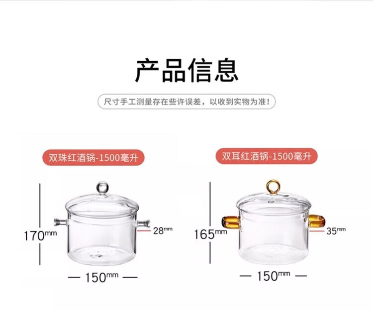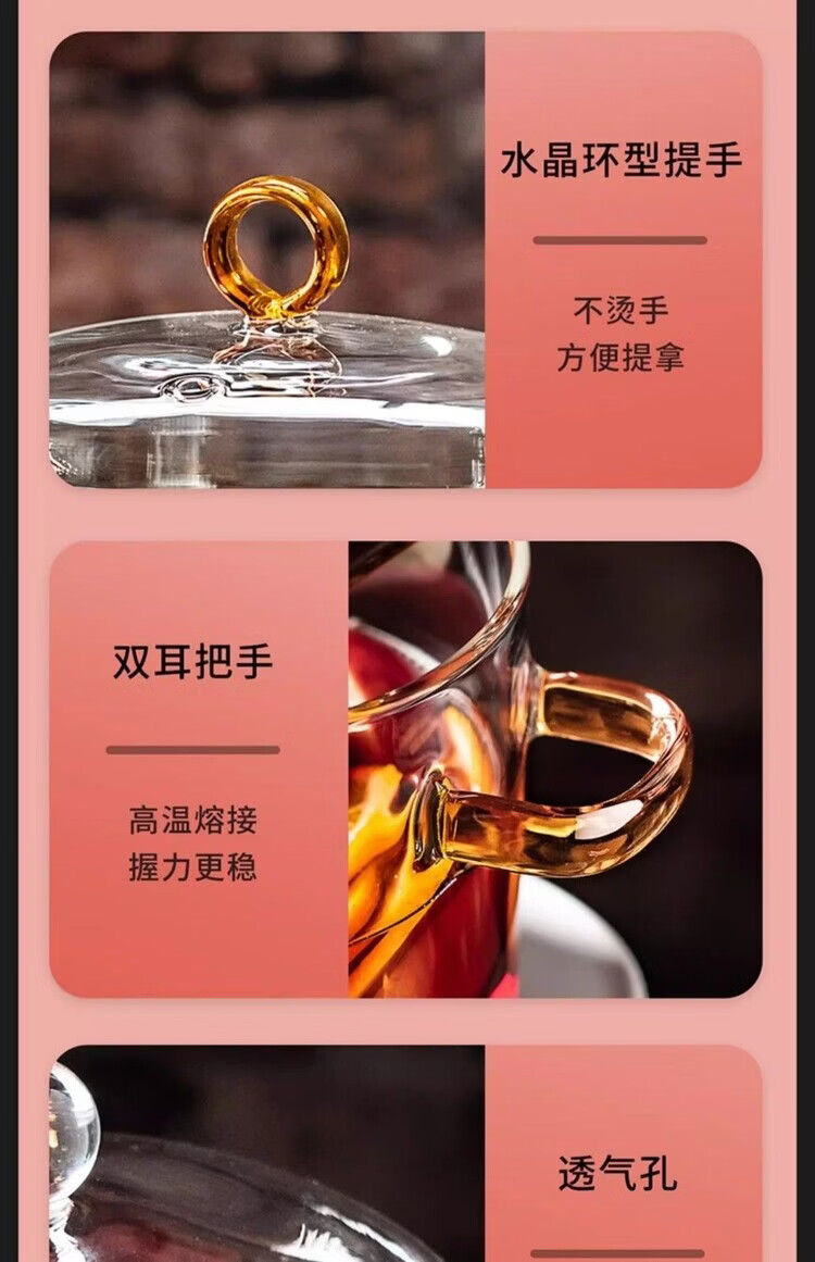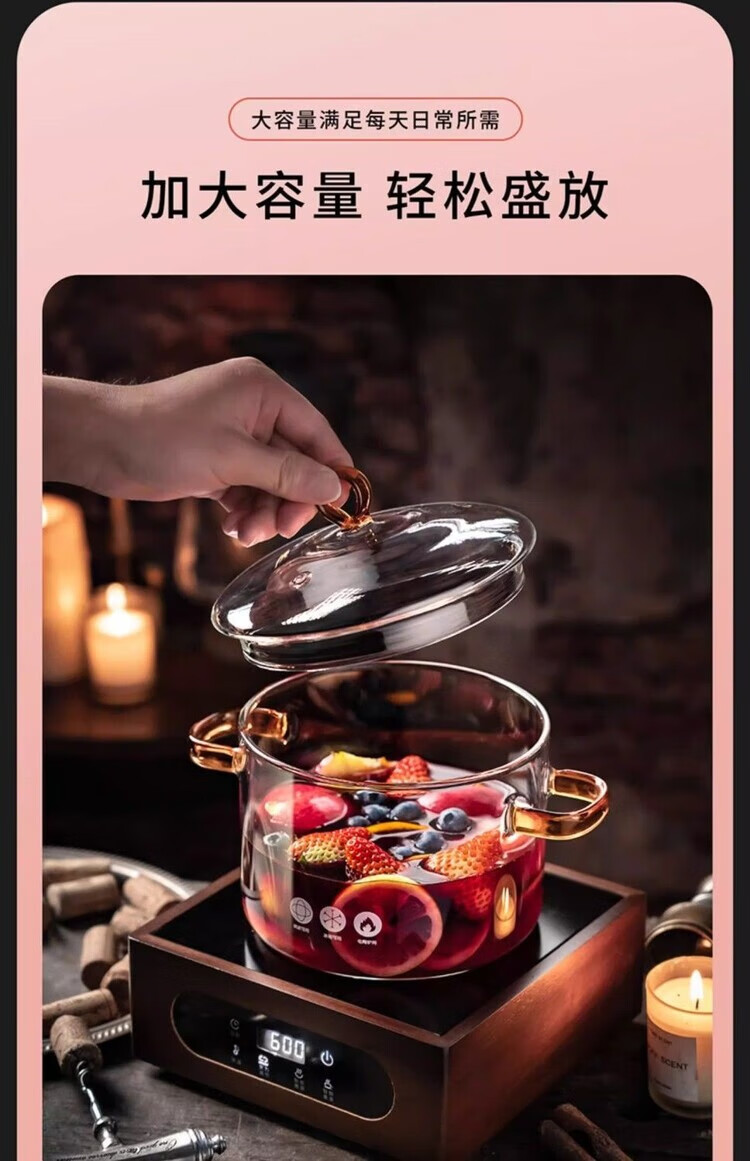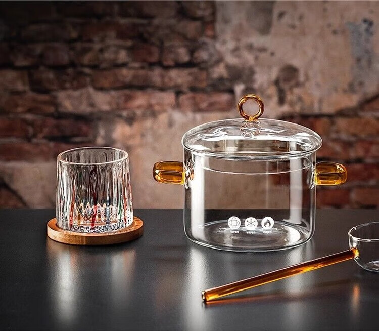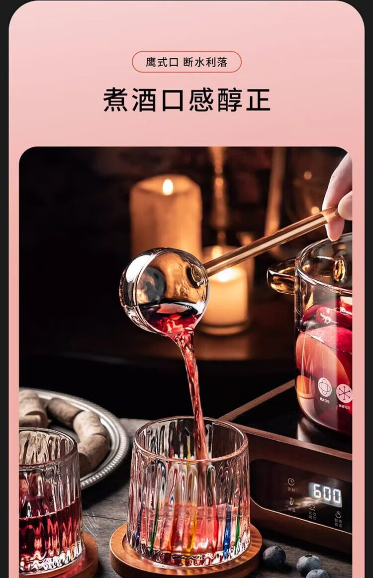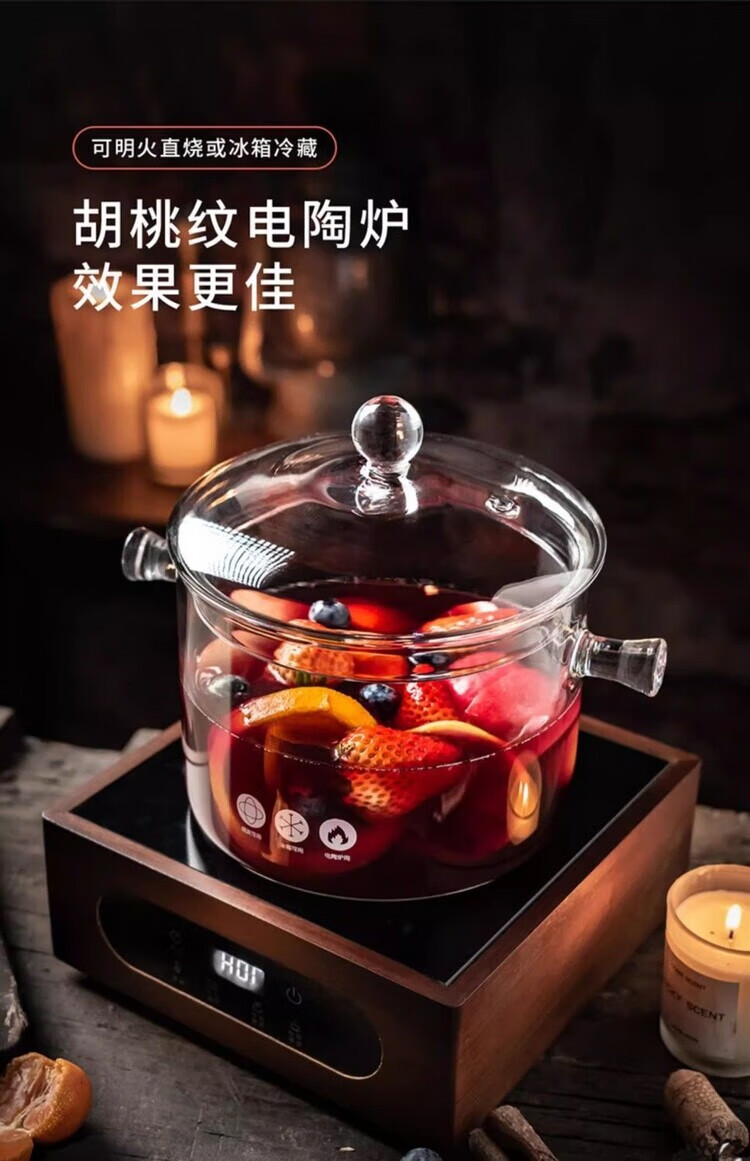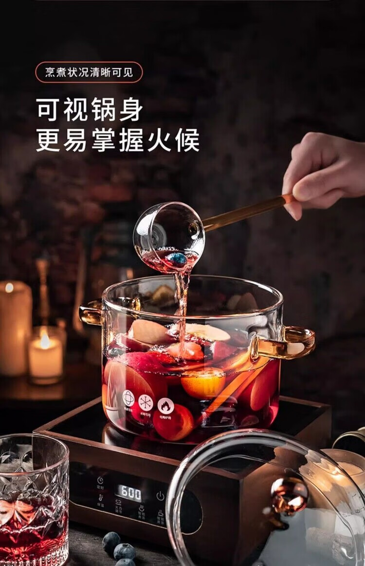 简漾煮红酒专用锅具套装冬天明火电陶炉耐高温玻璃器皿围炉热红酒汤锅 高硼硅玻璃煲(双耳大号款)2L 1cm 红酒锅+玻璃勺+导磁片【电磁炉专拍】