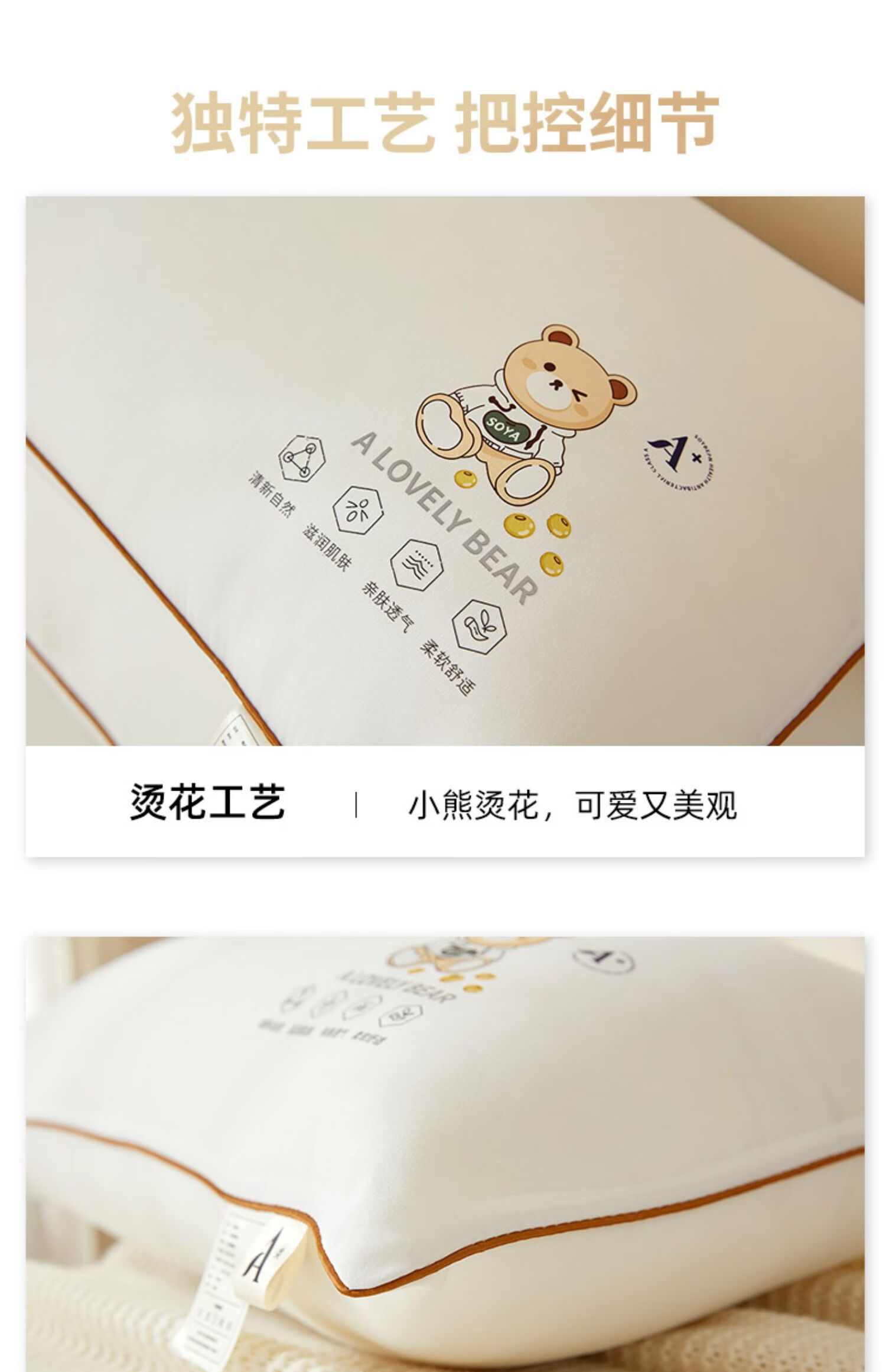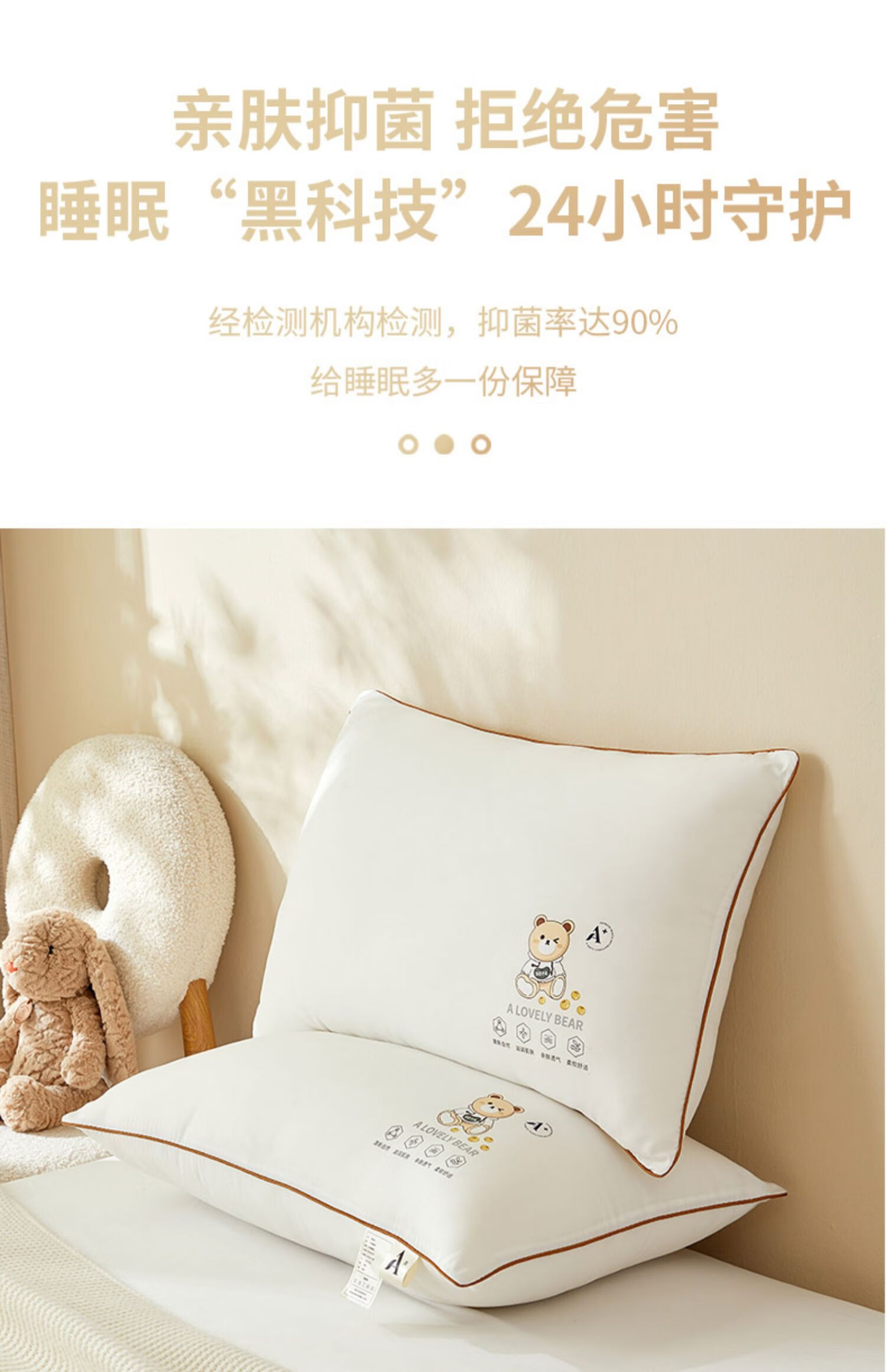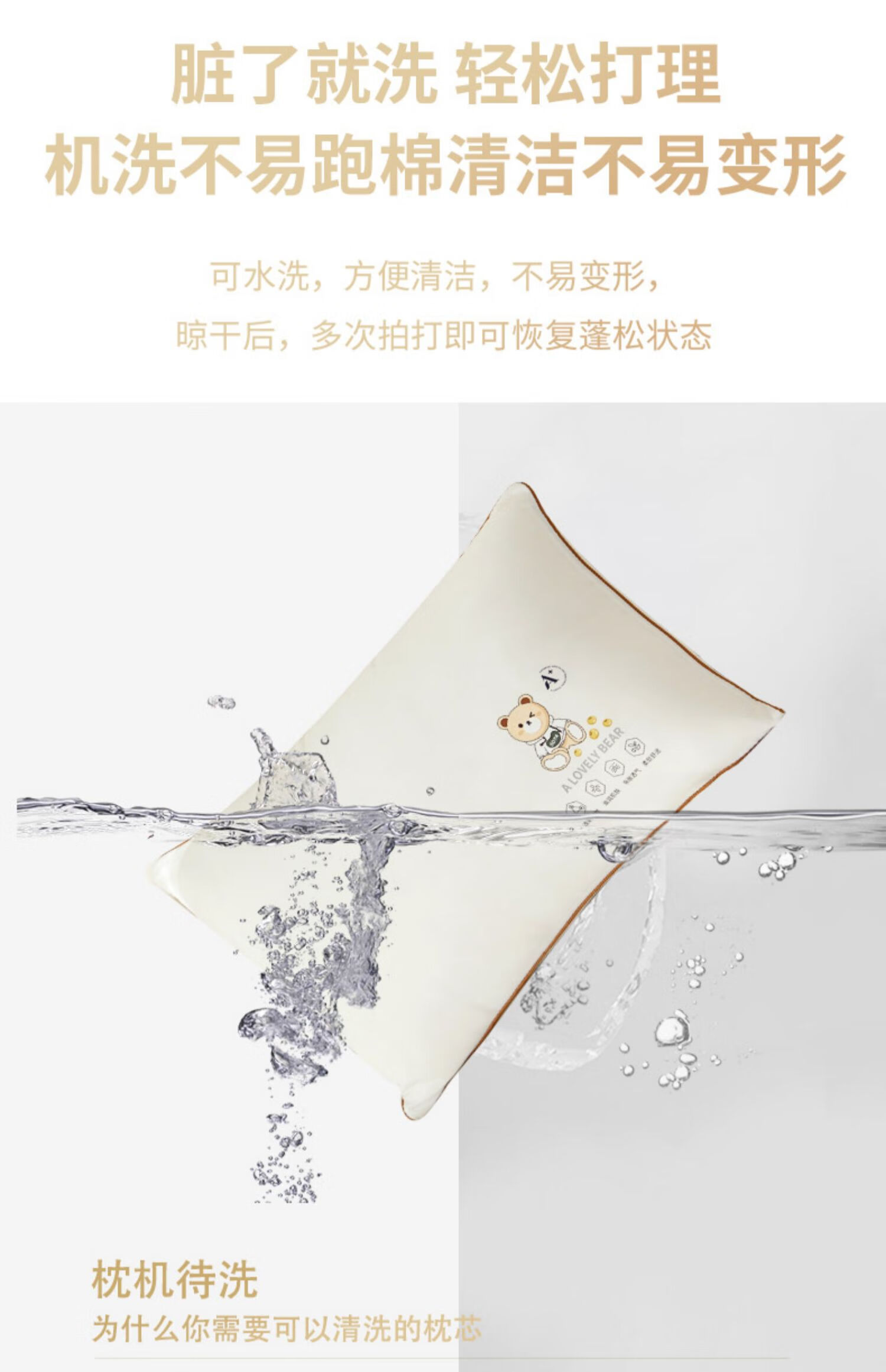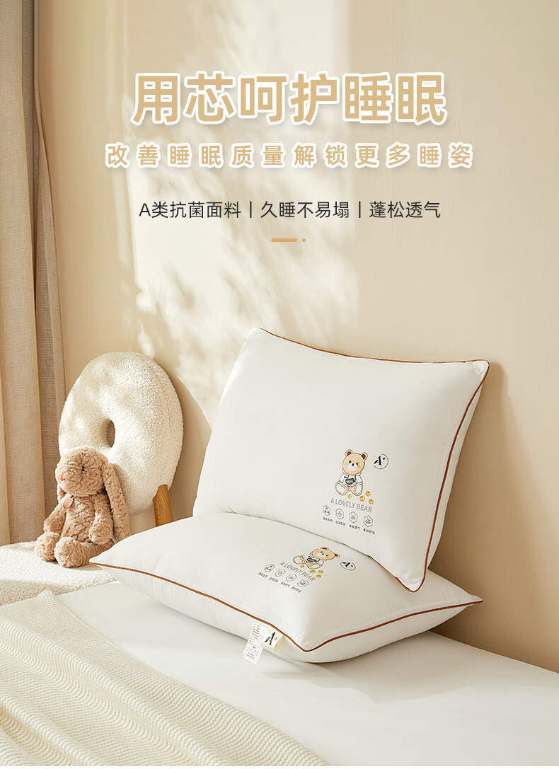 高睿枕头枕芯助睡眠护颈椎儿童成人专用单人一对家用不塌陷不变形2025 元气小熊护颈助眠【低枕】单只装 2-9cm
