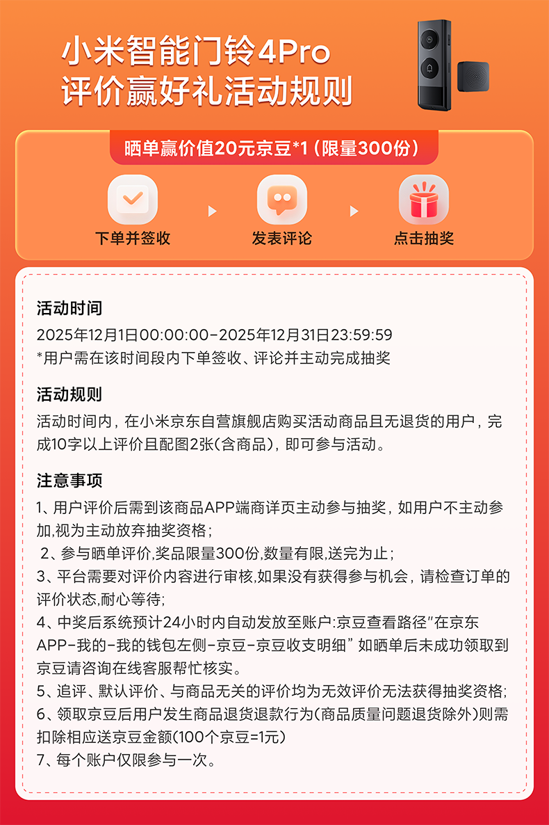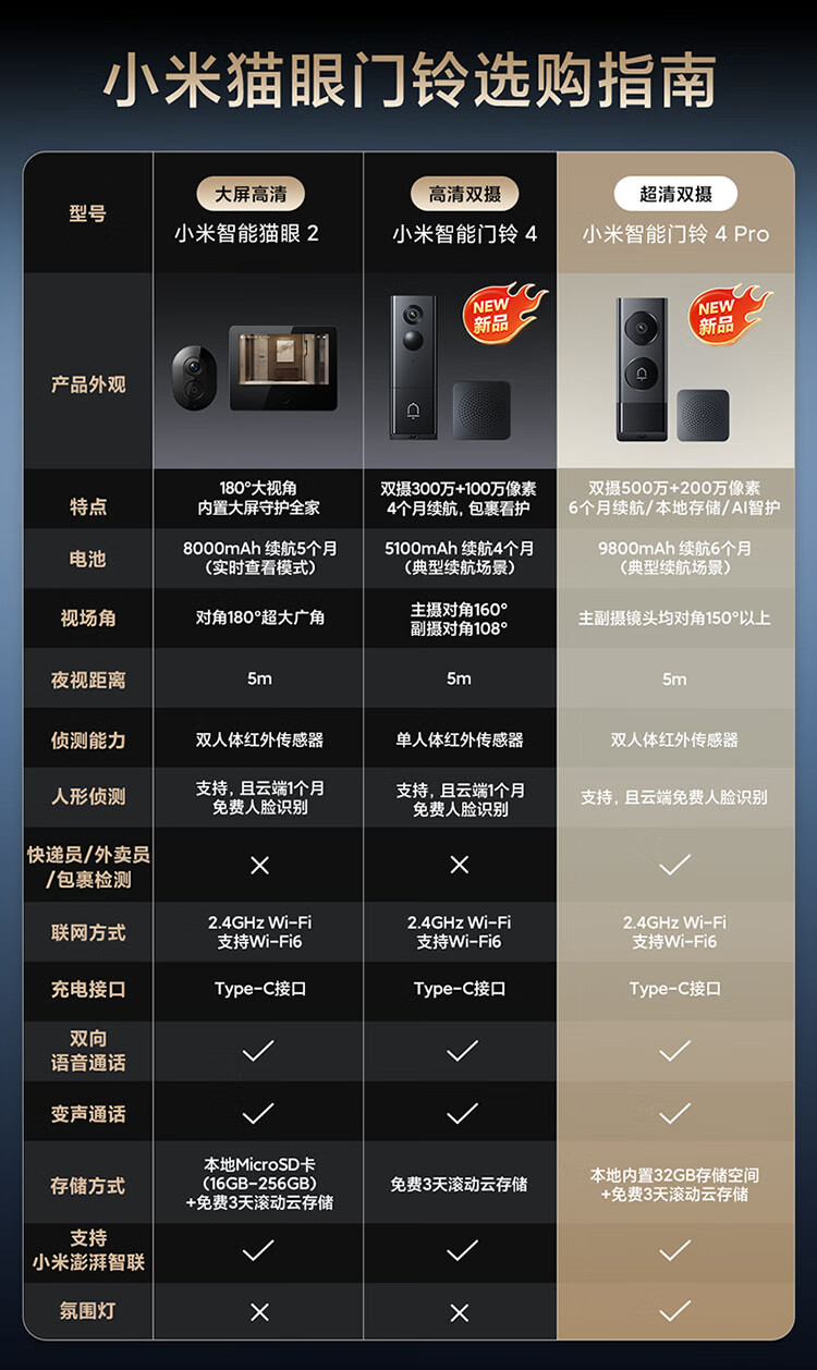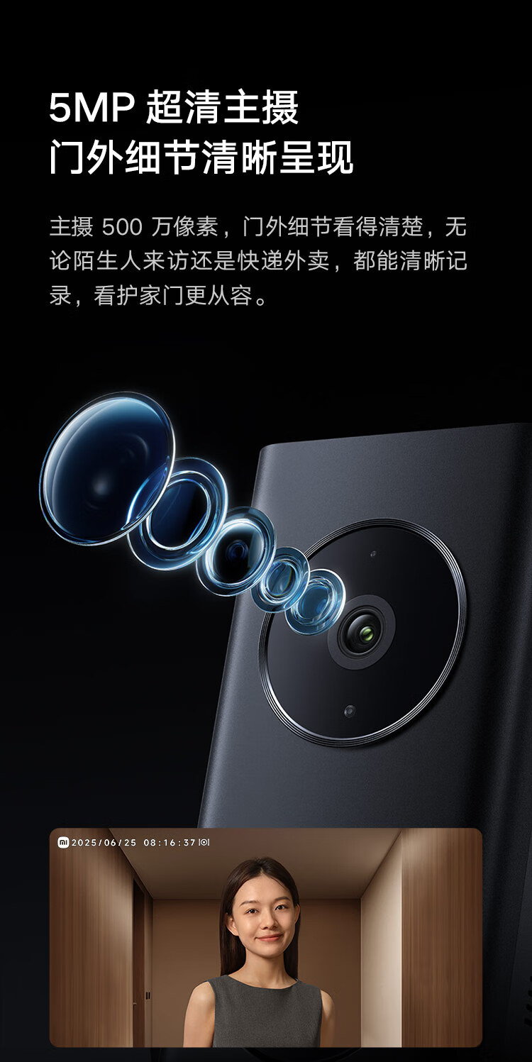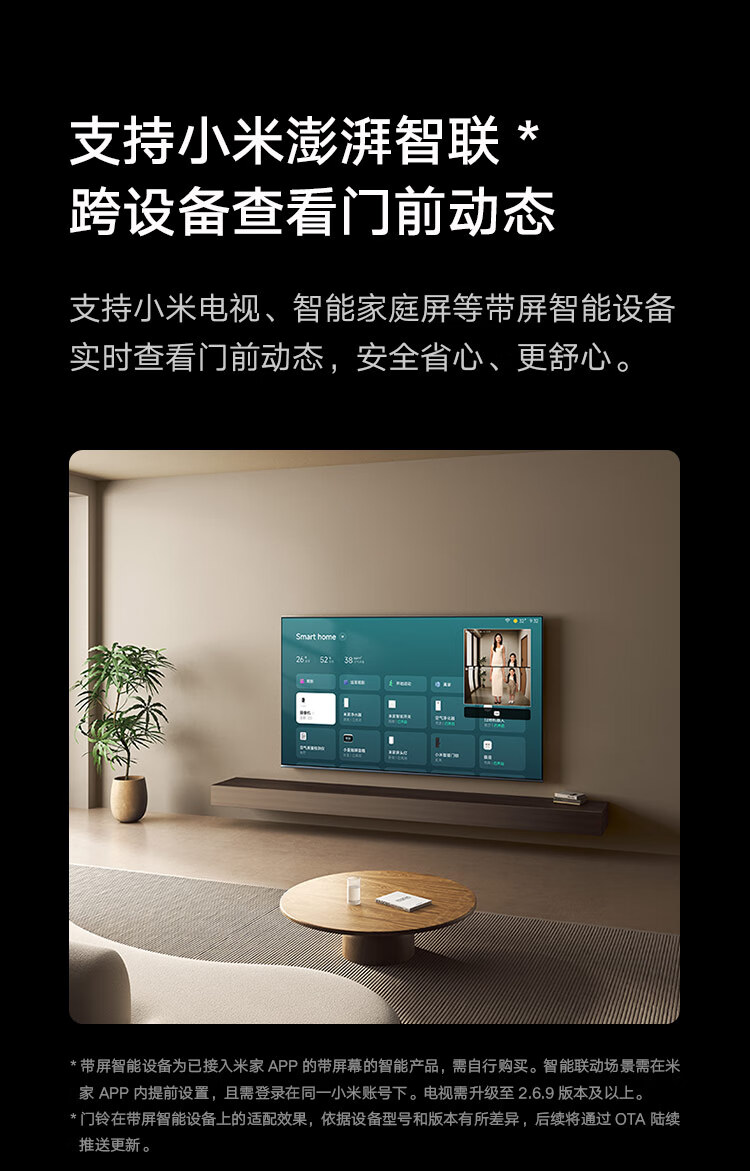 小米智能门铃4Pro可视门铃500万+200万双摄家用监控摄像头红外夜视远程双向通话包裹快递识别电子猫眼