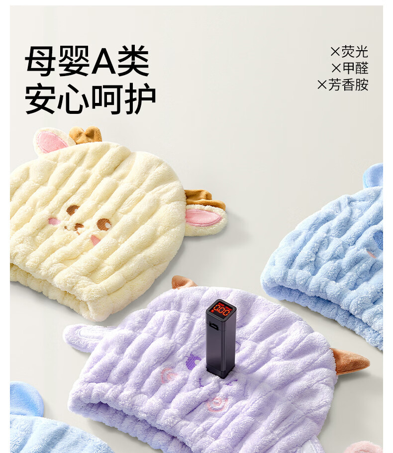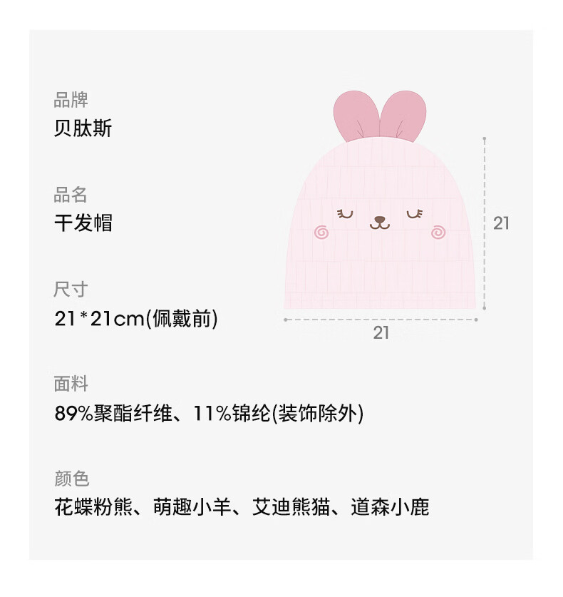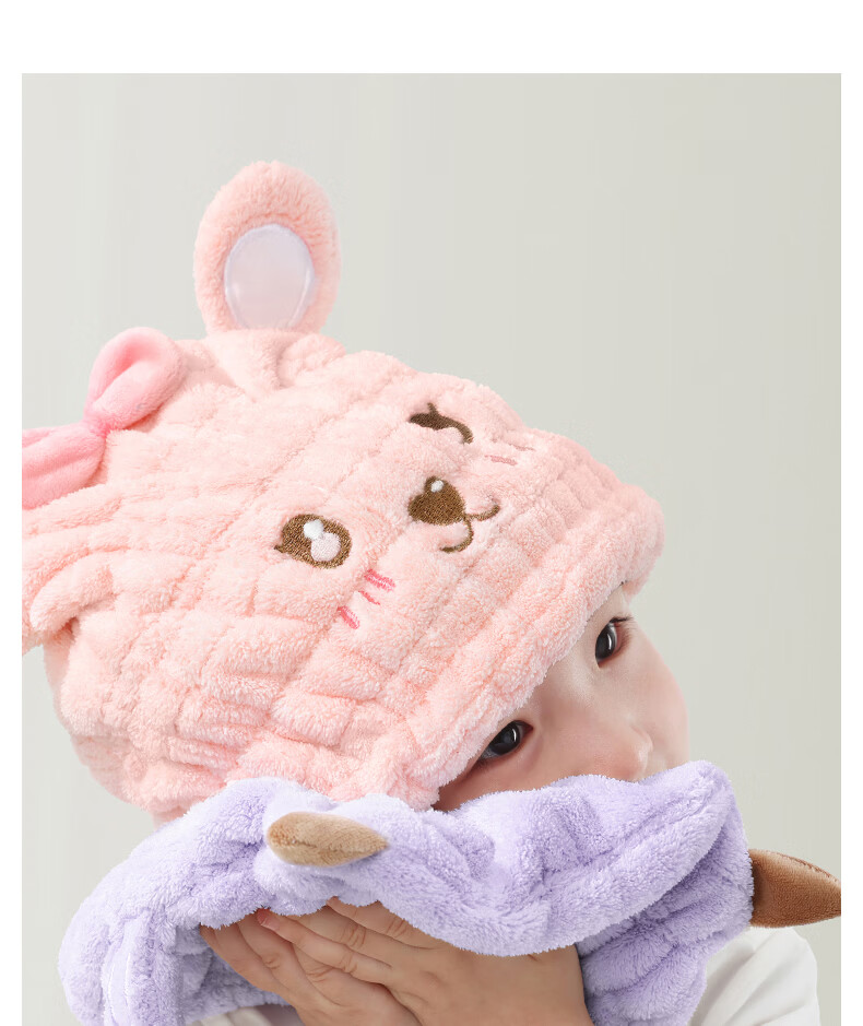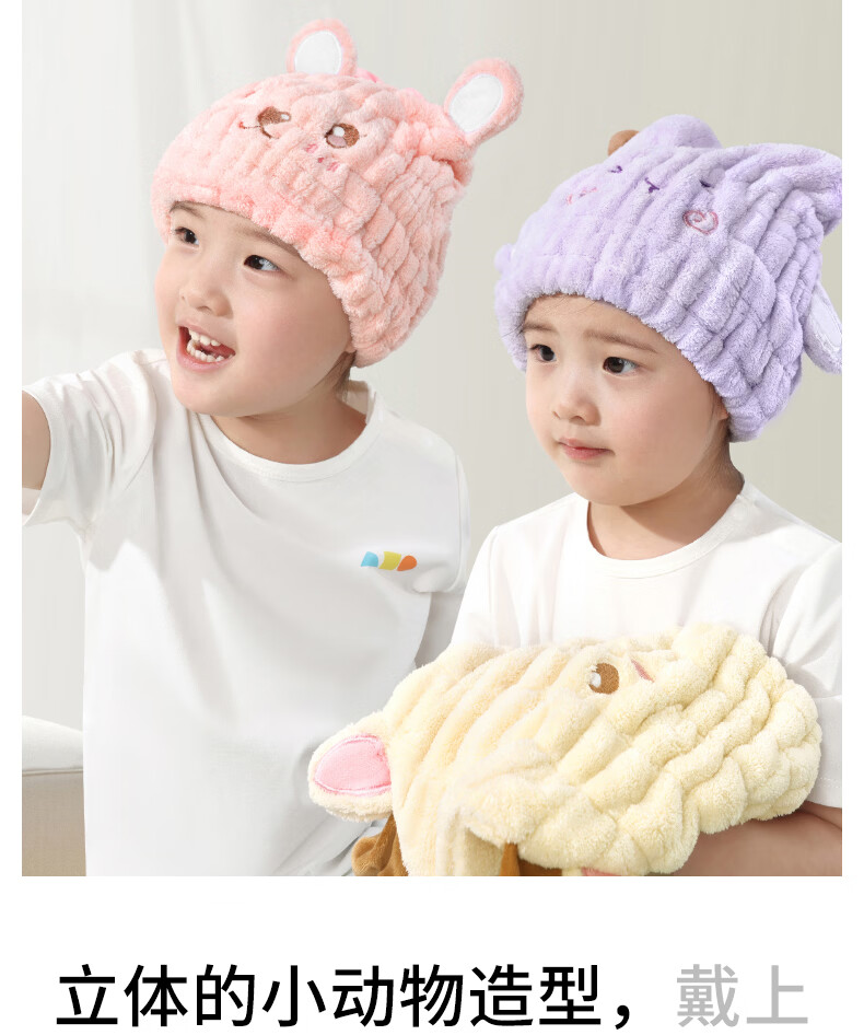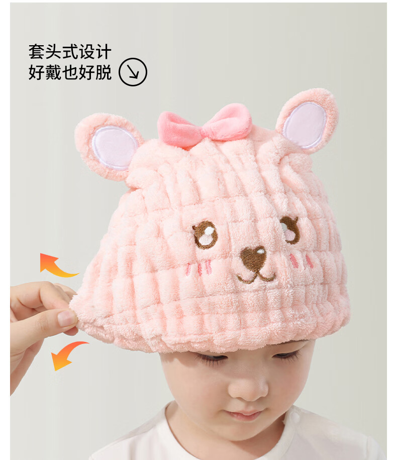 贝肽斯儿童干发帽吸水速干女童洗头毛巾宝宝浴帽子包头巾加厚 花蝶粉熊+花蝶粉熊【柔软珊瑚绒-7A抗菌】