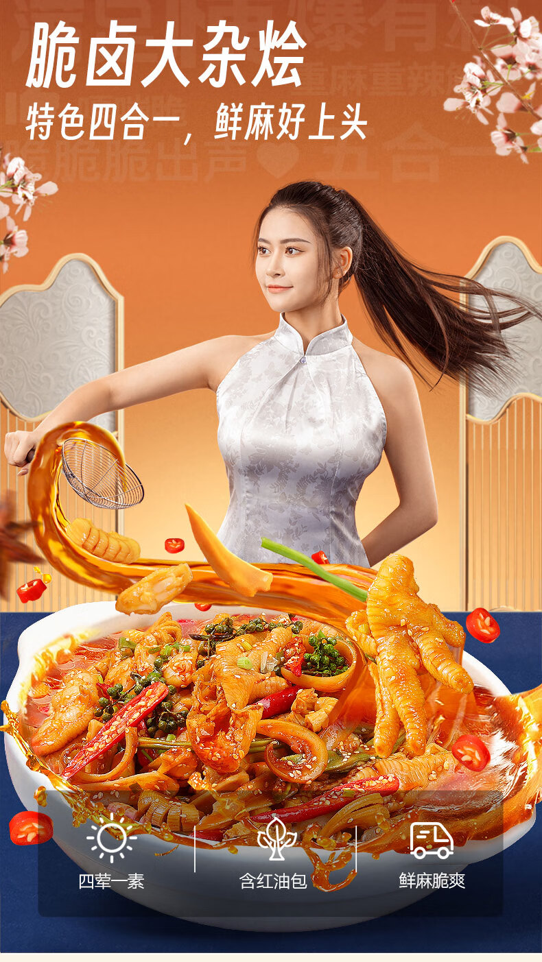 满山馋脆卤椒麻大杂烩1kg微辣无骨鸡爪贡菜三角骨休闲解馋零食源头直发