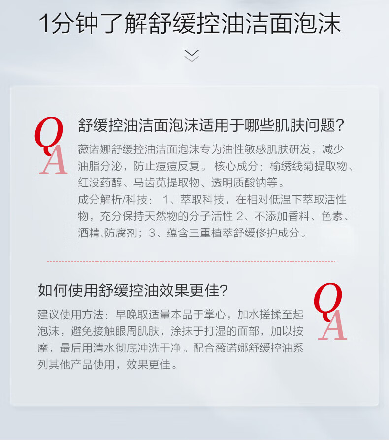 薇诺娜舒缓控油洁颜泡沫50ml保湿温和洗面奶男女护肤品圣诞礼物