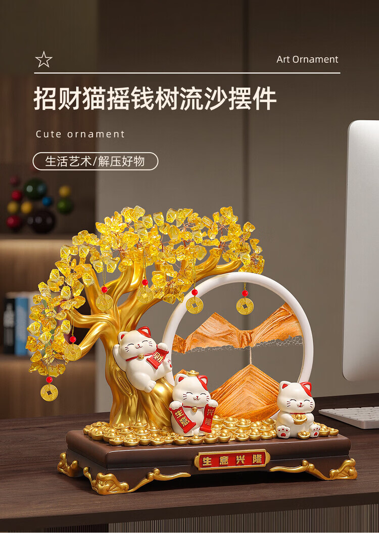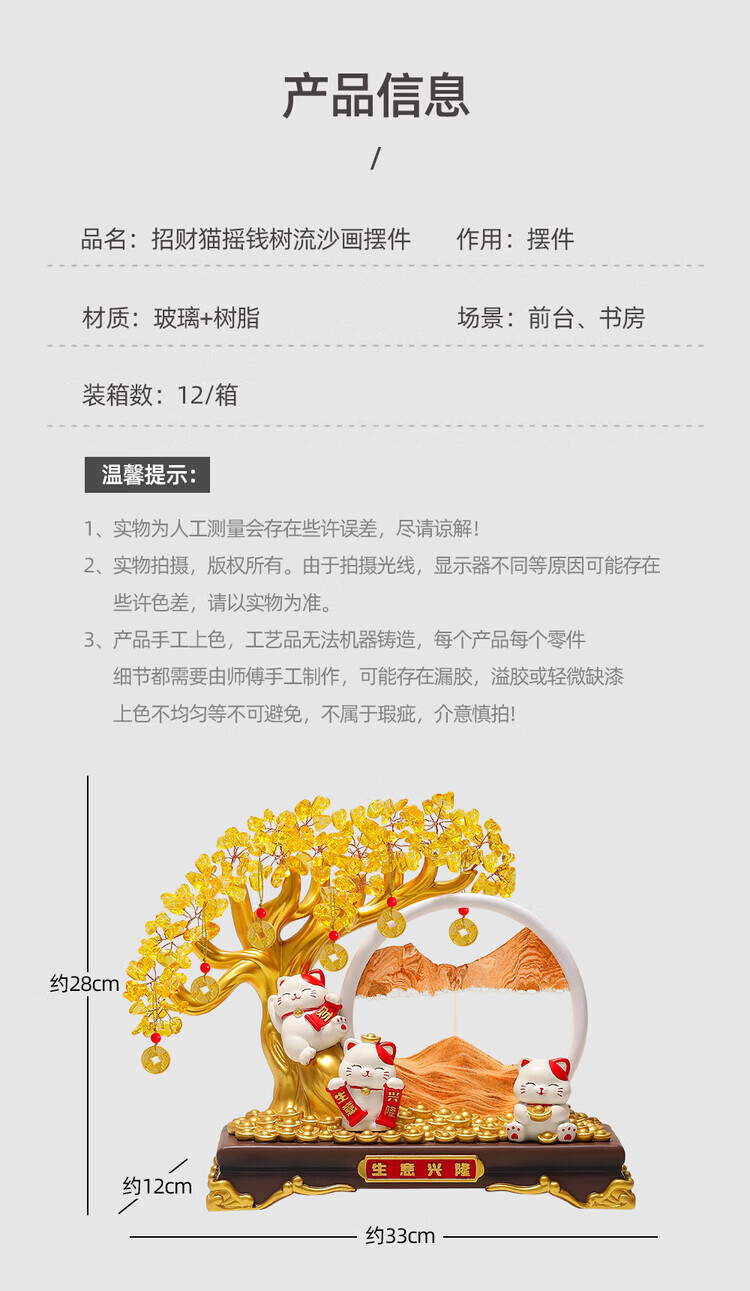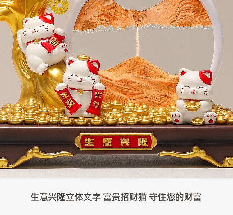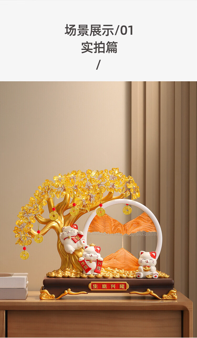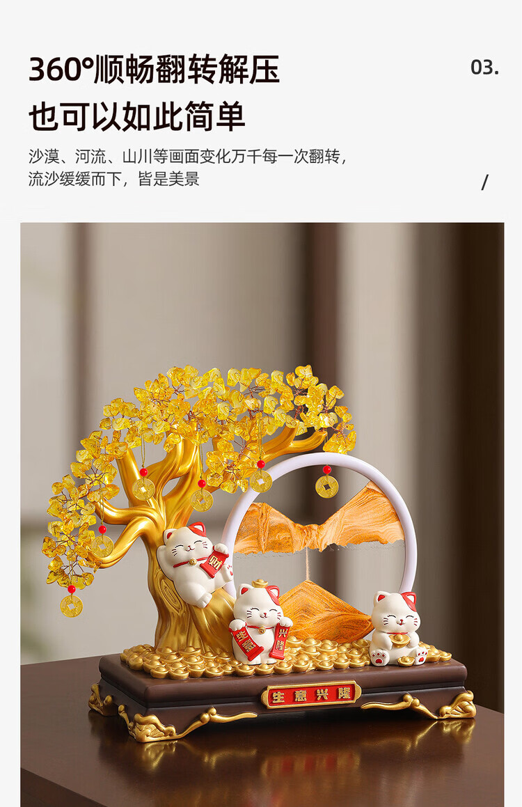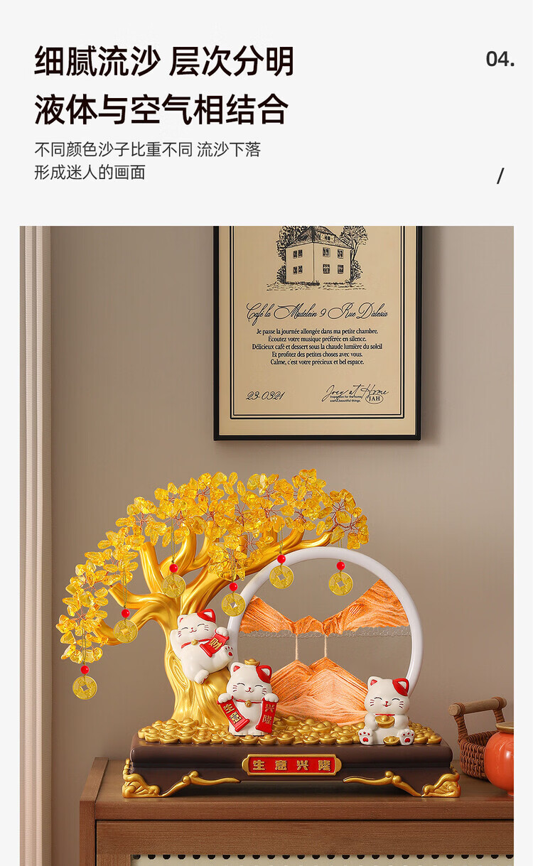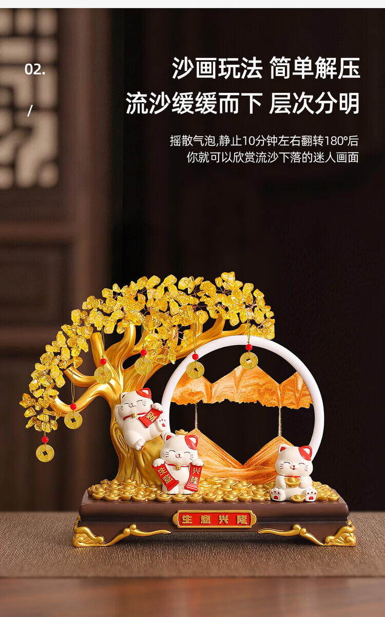 OYKTN生意兴隆发财树招财猫摆件客厅店铺收银台高档装饰品乔迁开业礼物 生意兴隆流沙画摆件