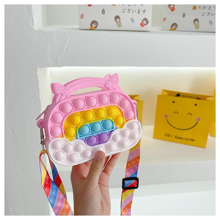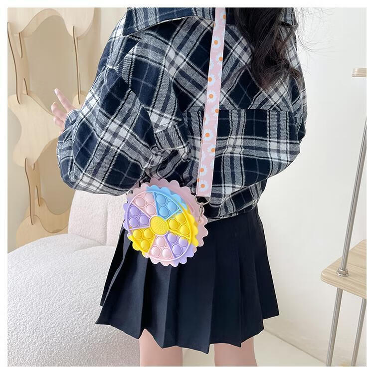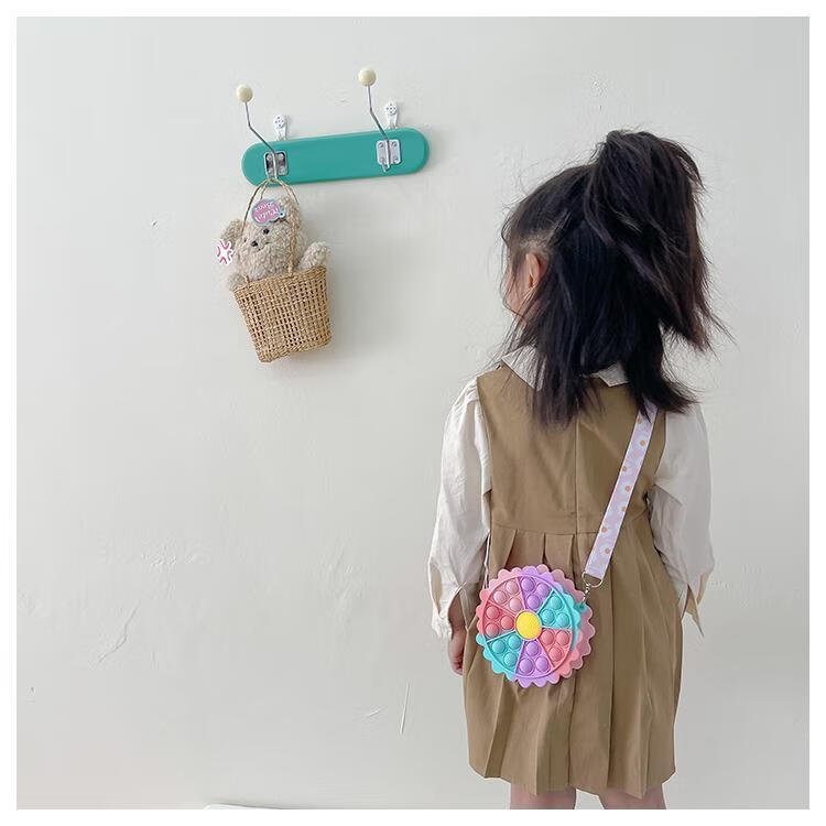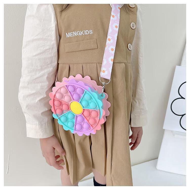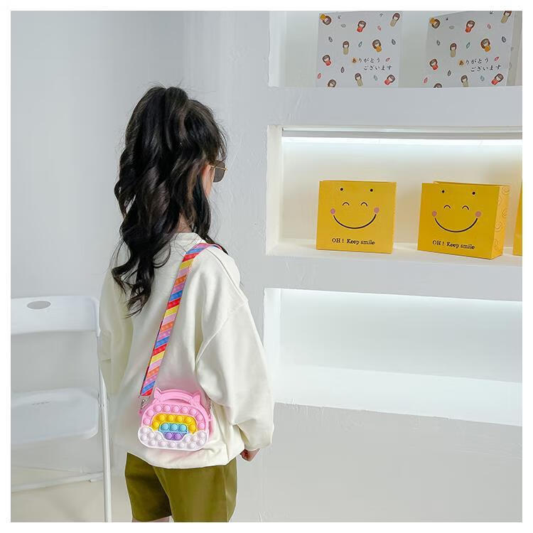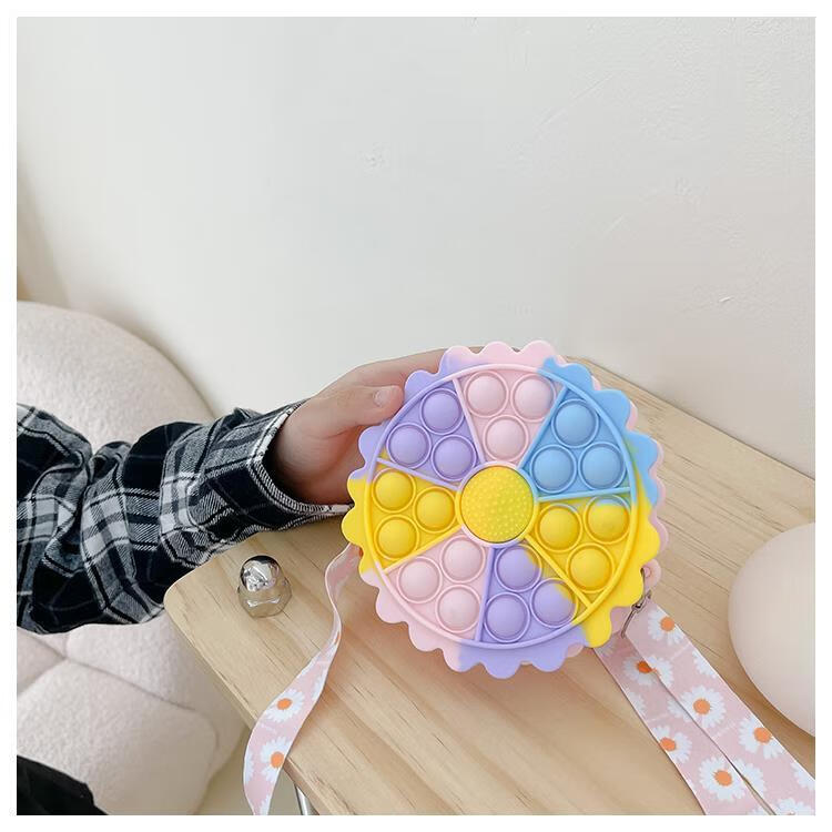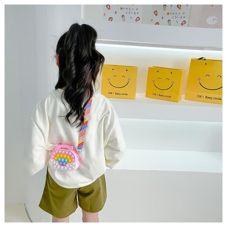 迪士尼(Disney)小女孩包包可爱小挎包卡通按压泡泡硅胶包包儿童男宝宝单肩斜挎包 3066圆绿彩色
