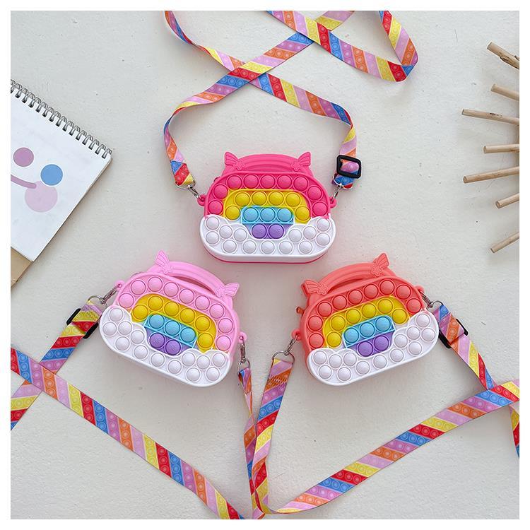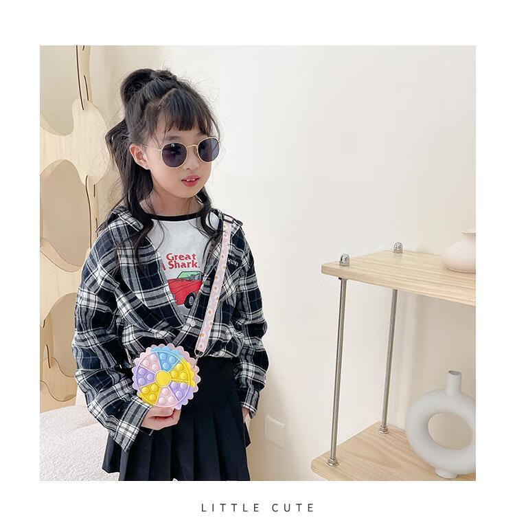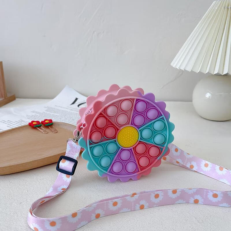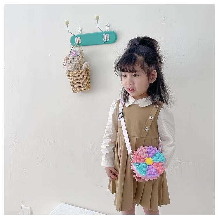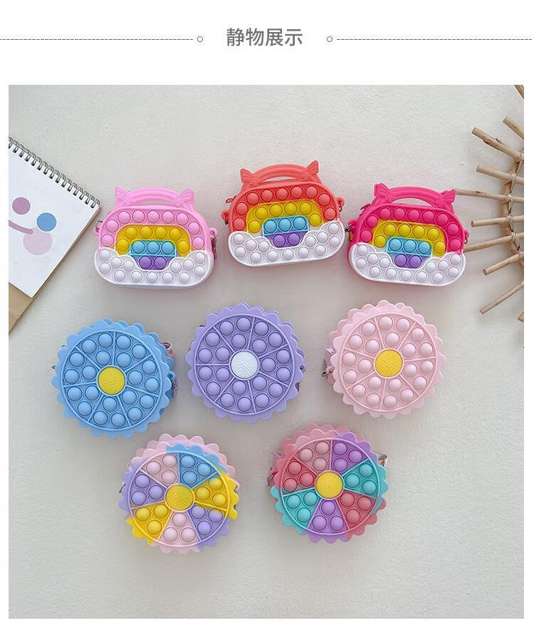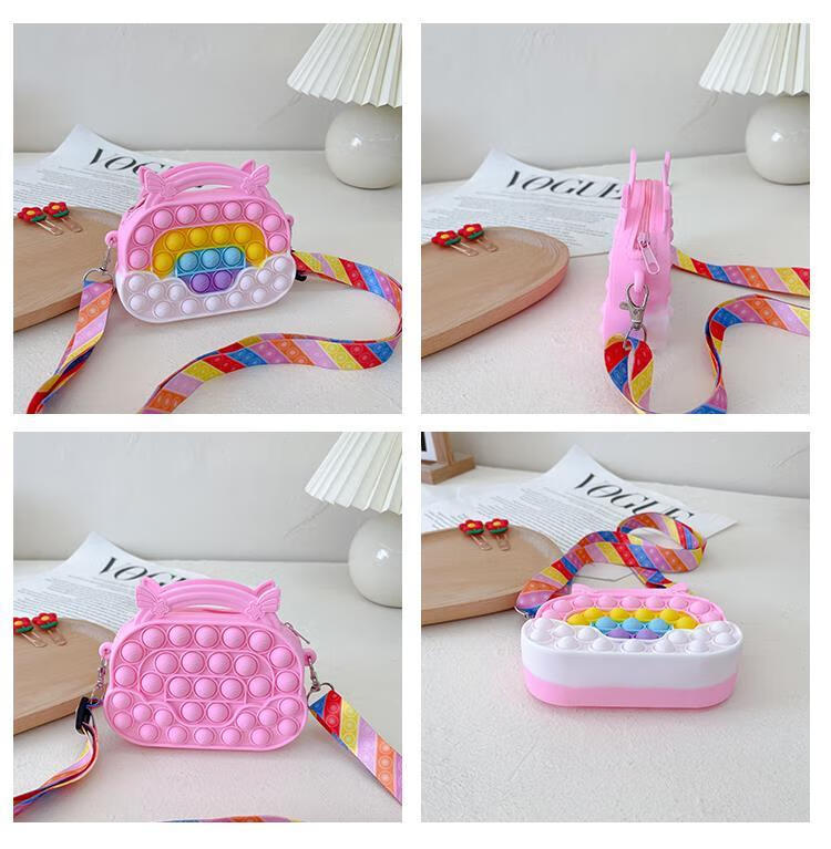 迪士尼(Disney)小女孩包包可爱小挎包卡通按压泡泡硅胶包包儿童男宝宝单肩斜挎包 3066圆绿彩色