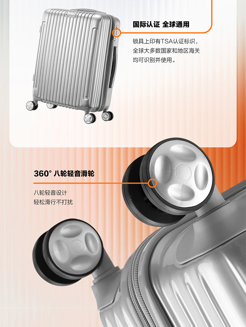 广璐迪前开盖小行李箱拉杆箱可上飞机登机箱18密码旅行箱子皮箱结实耐用 奢华银 【USB/Type-c 双充电口】 18英寸 登机箱+干湿分离+杯架
