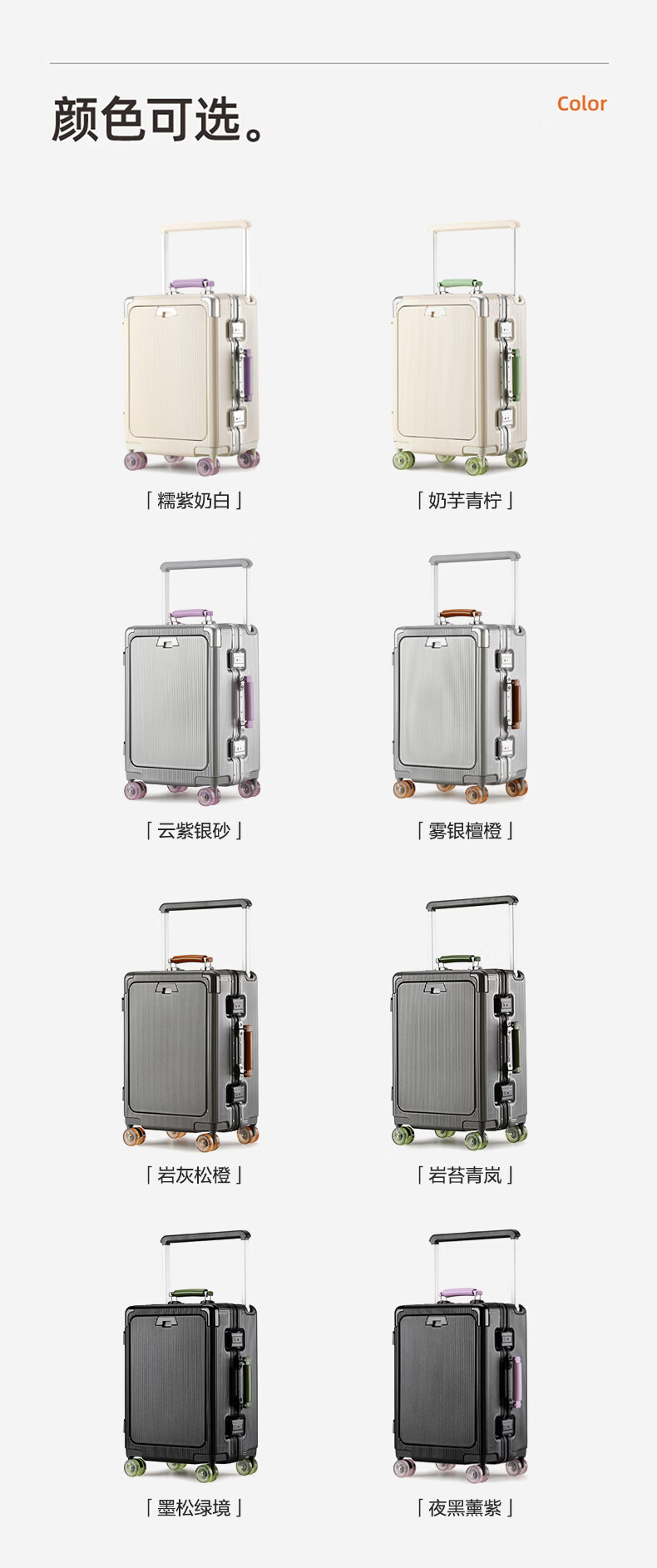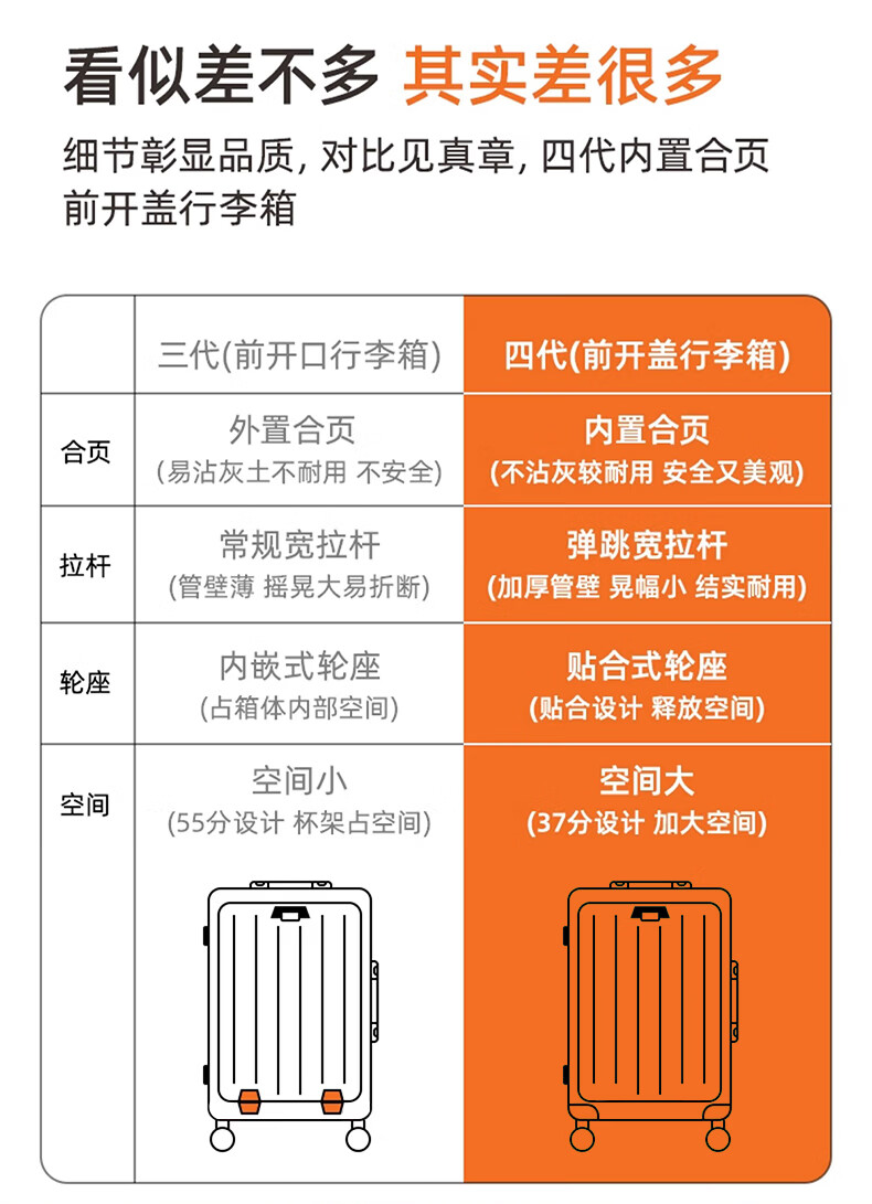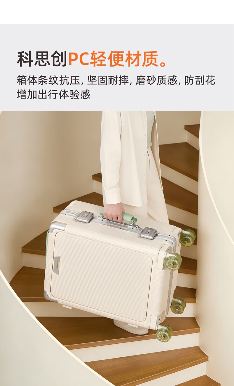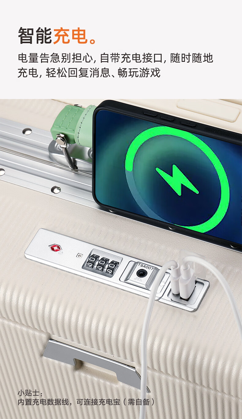 广璐迪前开盖小行李箱拉杆箱可上飞机登机箱18密码旅行箱子皮箱结实耐用 奢华银 【USB/Type-c 双充电口】 18英寸 登机箱+干湿分离+杯架