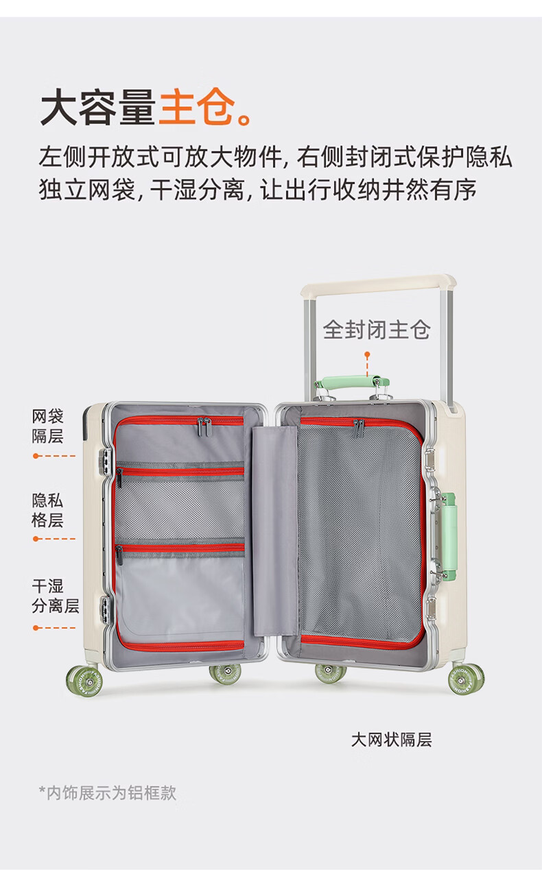 广璐迪高颜值铝框学生拉杆行李箱男小登机旅行箱子女结实耐用密码皮箱包 升级多功能颜值箱/红色-可扩展 26英寸 大容量