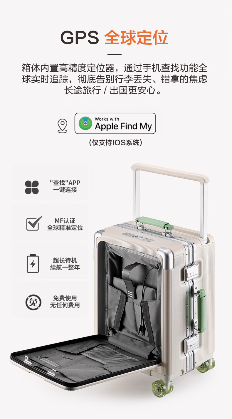 游乐者(MUSIC TRAVELS)行李箱前翻盖铝框拉杆箱PC多功能旅行密码箱子高颜值大容量登机箱 夜黑薰紫(左) GPS版「四大核心功能+升级全球定位」 24英寸 「拼色颜值 + 全功能 buff,一年破损换新」