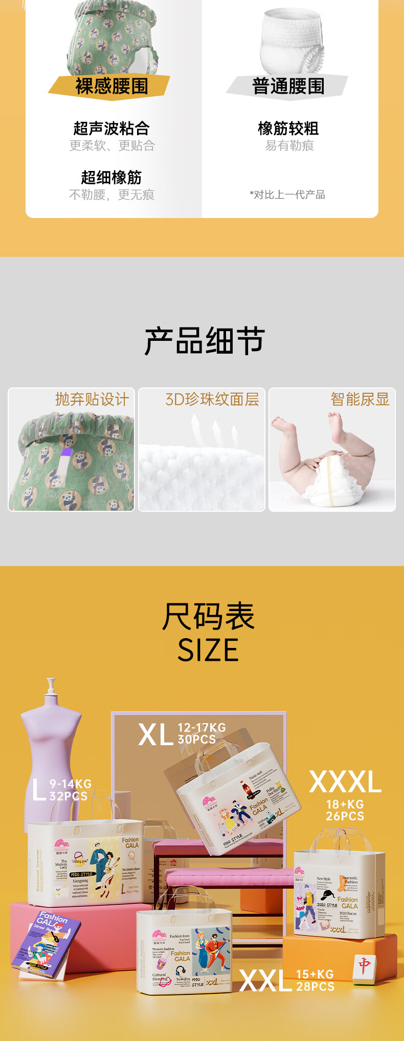盛夏光年Gala婴儿拉拉裤2包装宝宝尿不湿超薄大吸量更干爽安睡裤 【2包装】拉拉裤XL码60片(12-17kg)