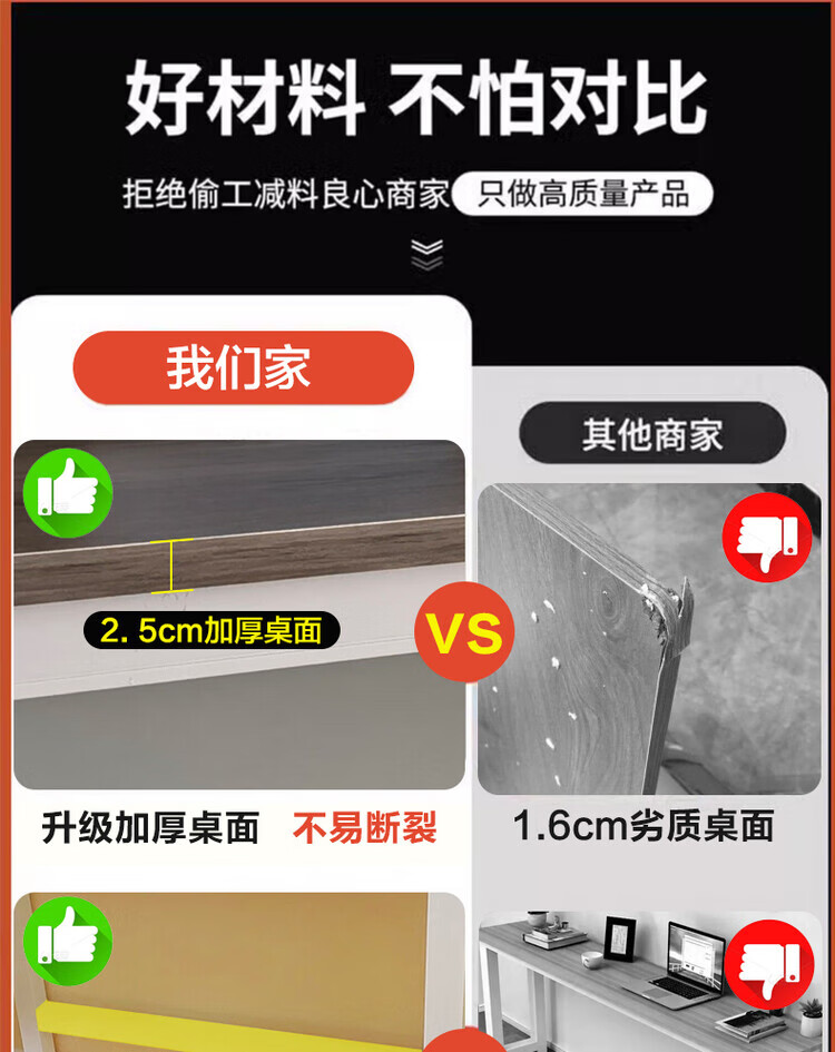 电脑桌120cm80高2米30/2.5书桌160cm180/20简约桌子定制尺寸定做 长150宽70高80 加厚桌面25mm