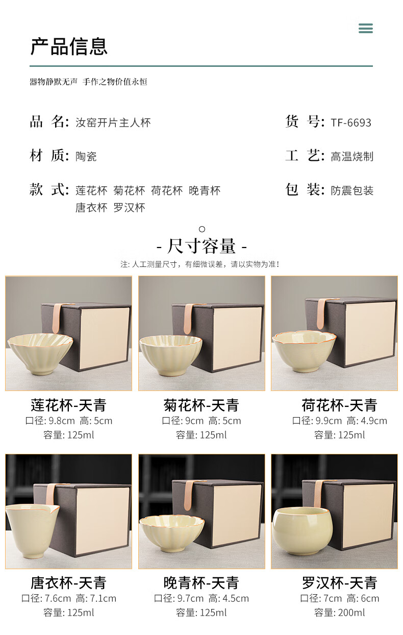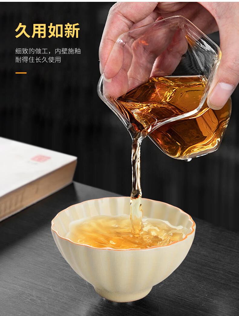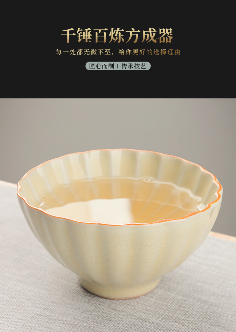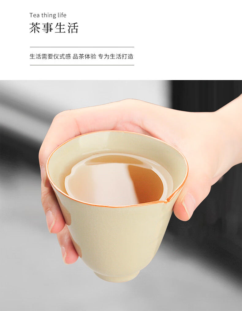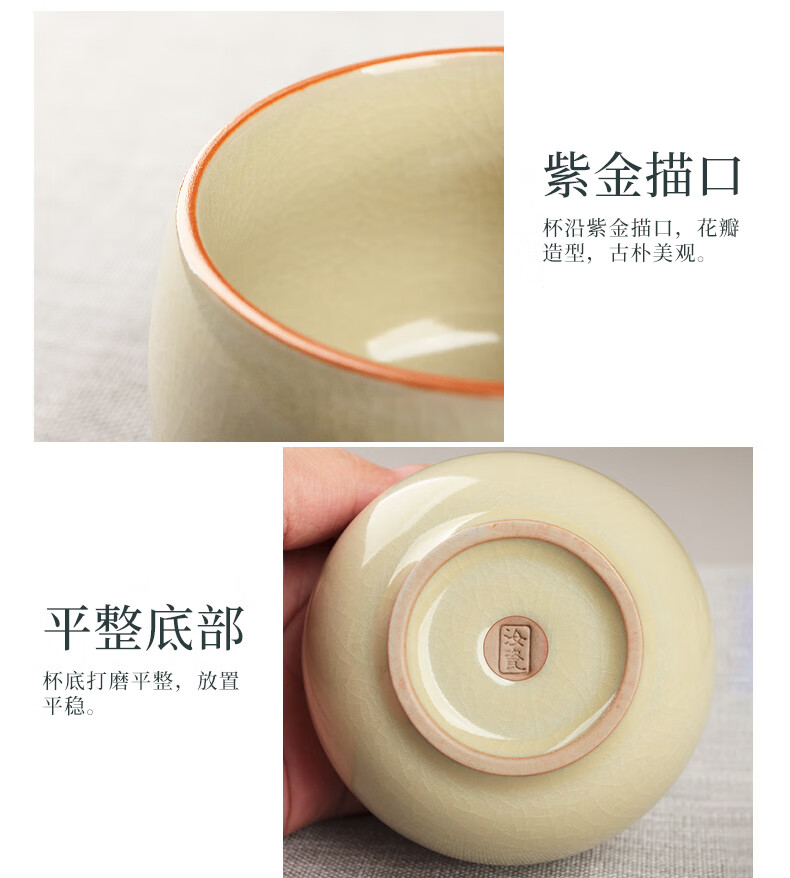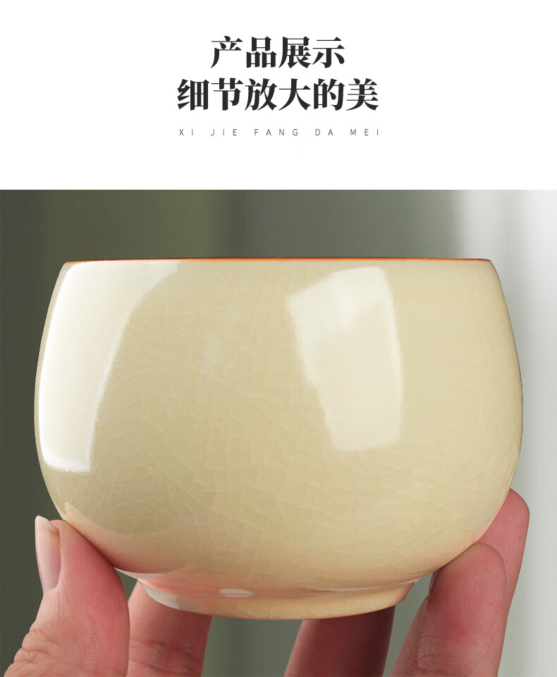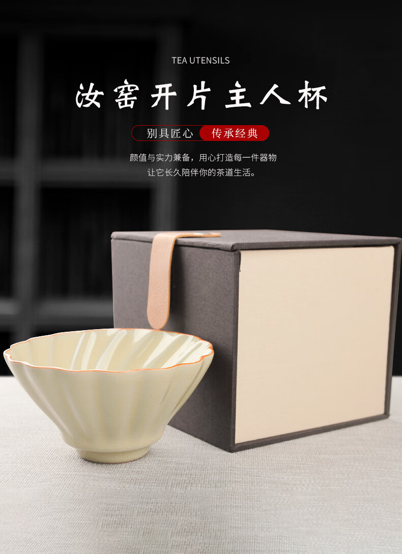 易信花瓣大号茶杯主人杯汝窑开片喝茶杯陶瓷杯单杯锦盒包装茶具配件 汝窑菊花杯-米黄
