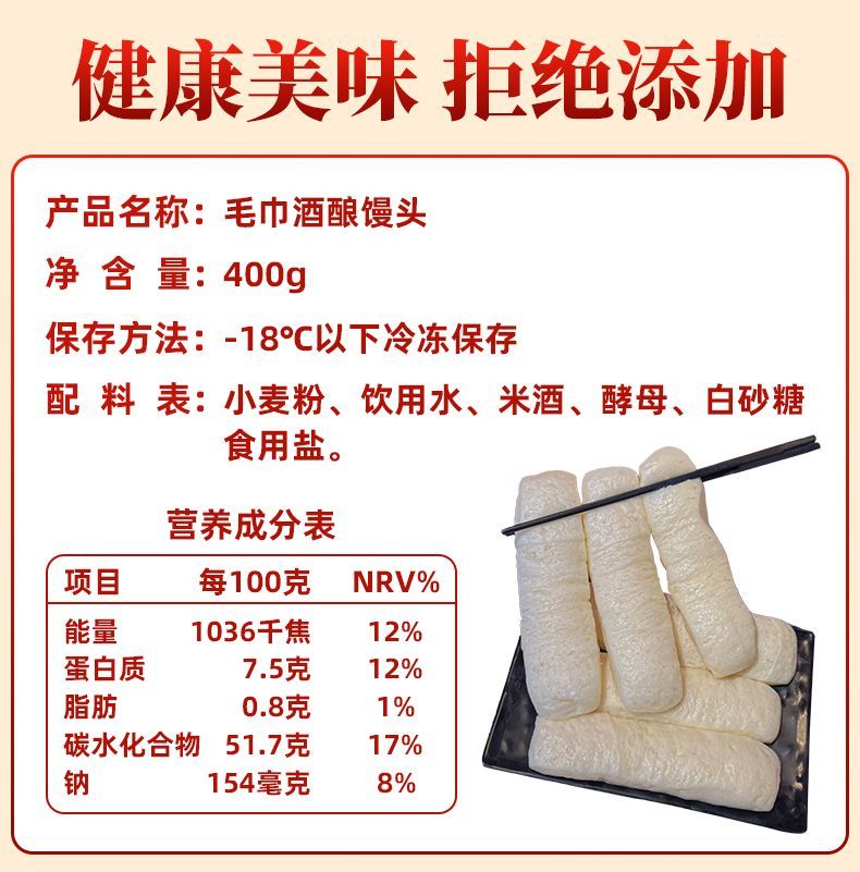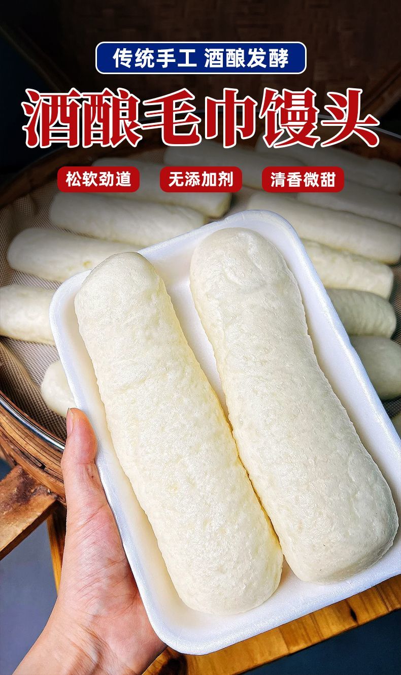 【微甜】超软酒酿毛巾馒头传统手工重庆街边小吃长条馒头加热即食 毛巾酒酿馒头 400g(4根)*2袋