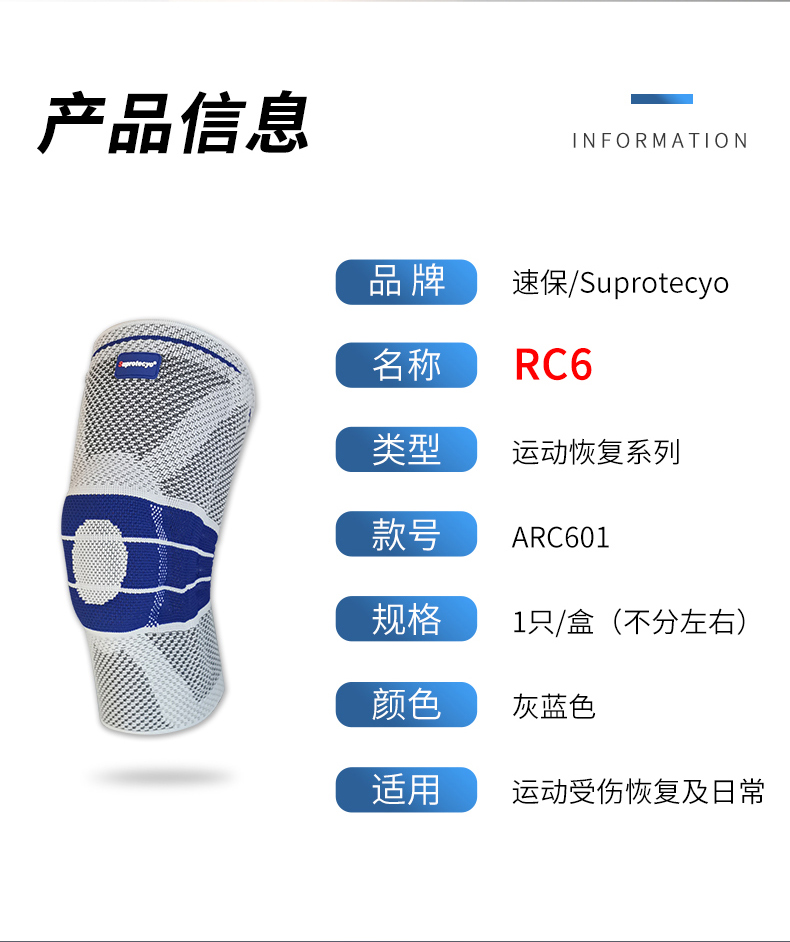 Suprotecyo运动恢复护膝男女半月板膝盖篮球羽毛球健身膝部受伤保暖保护护具 RC6(单只) 3XL (上围52-55cm,下围44-47cm