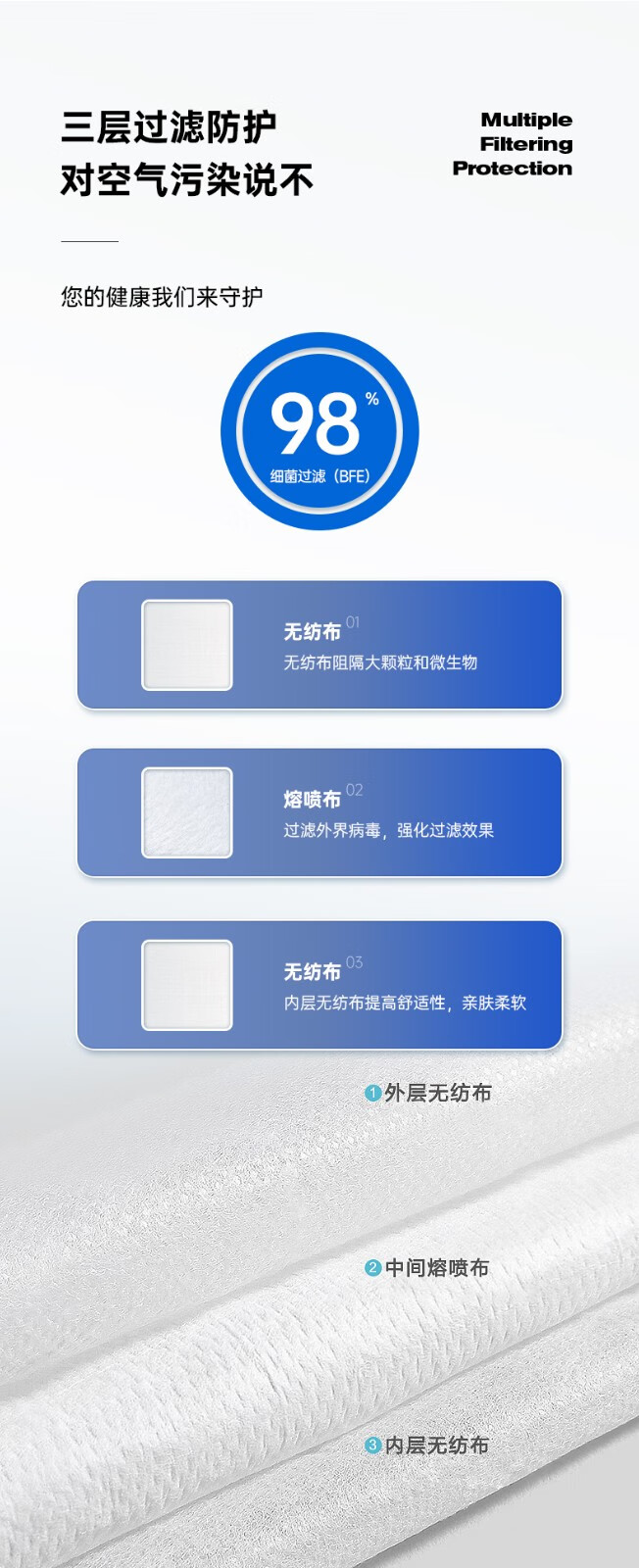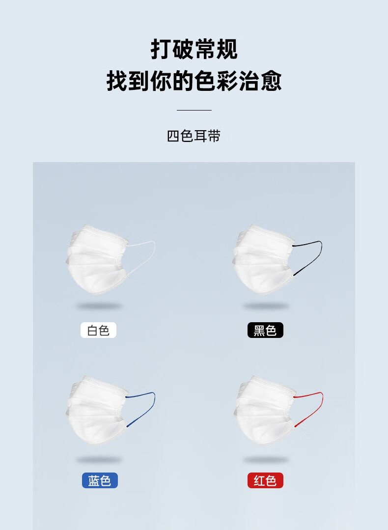 康诺迩一次性防护口罩三层透气云感贴合防风防尘防细菌成人通用 【三层加厚】100只黑色