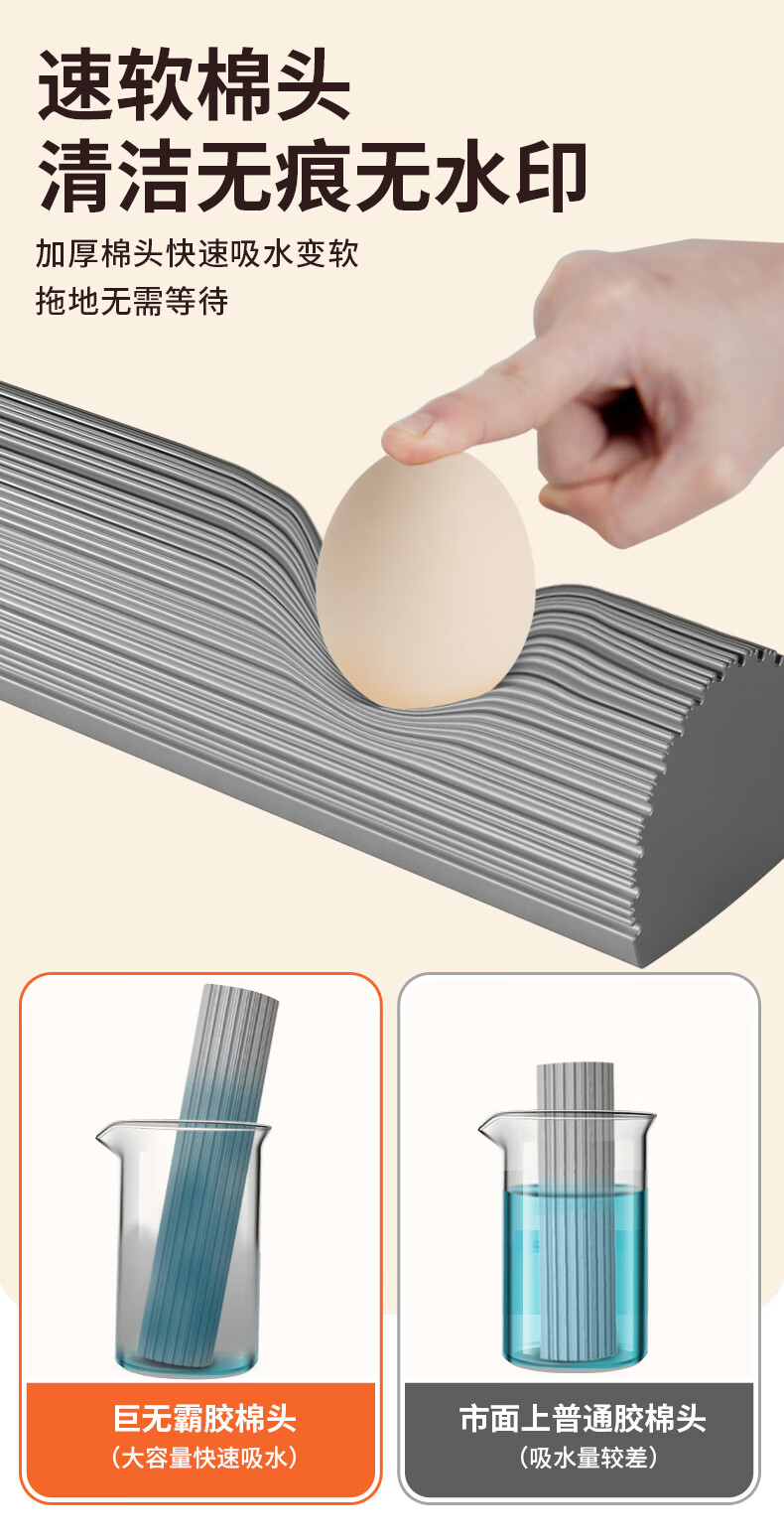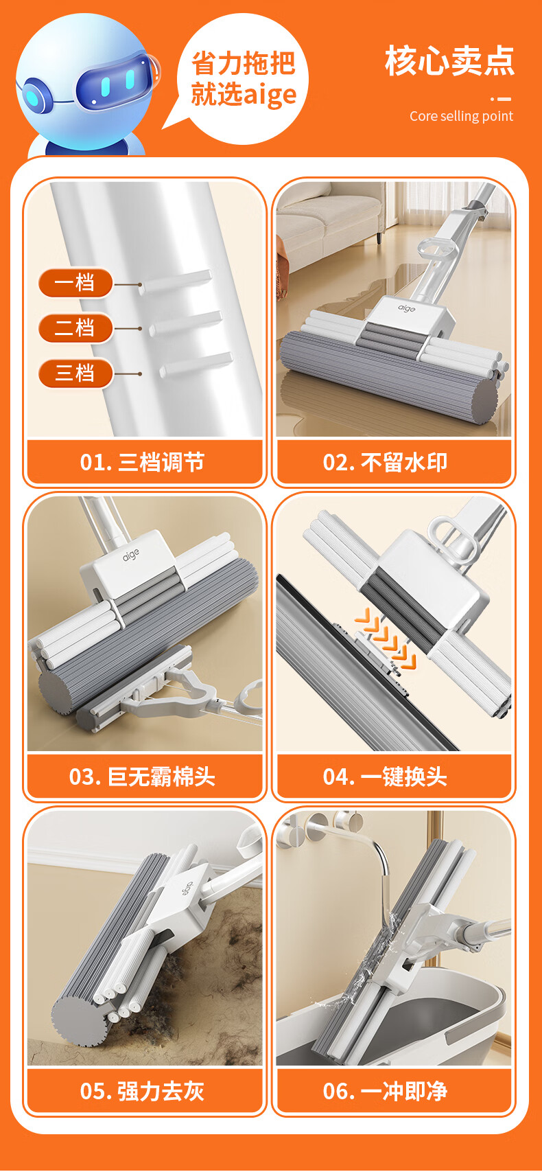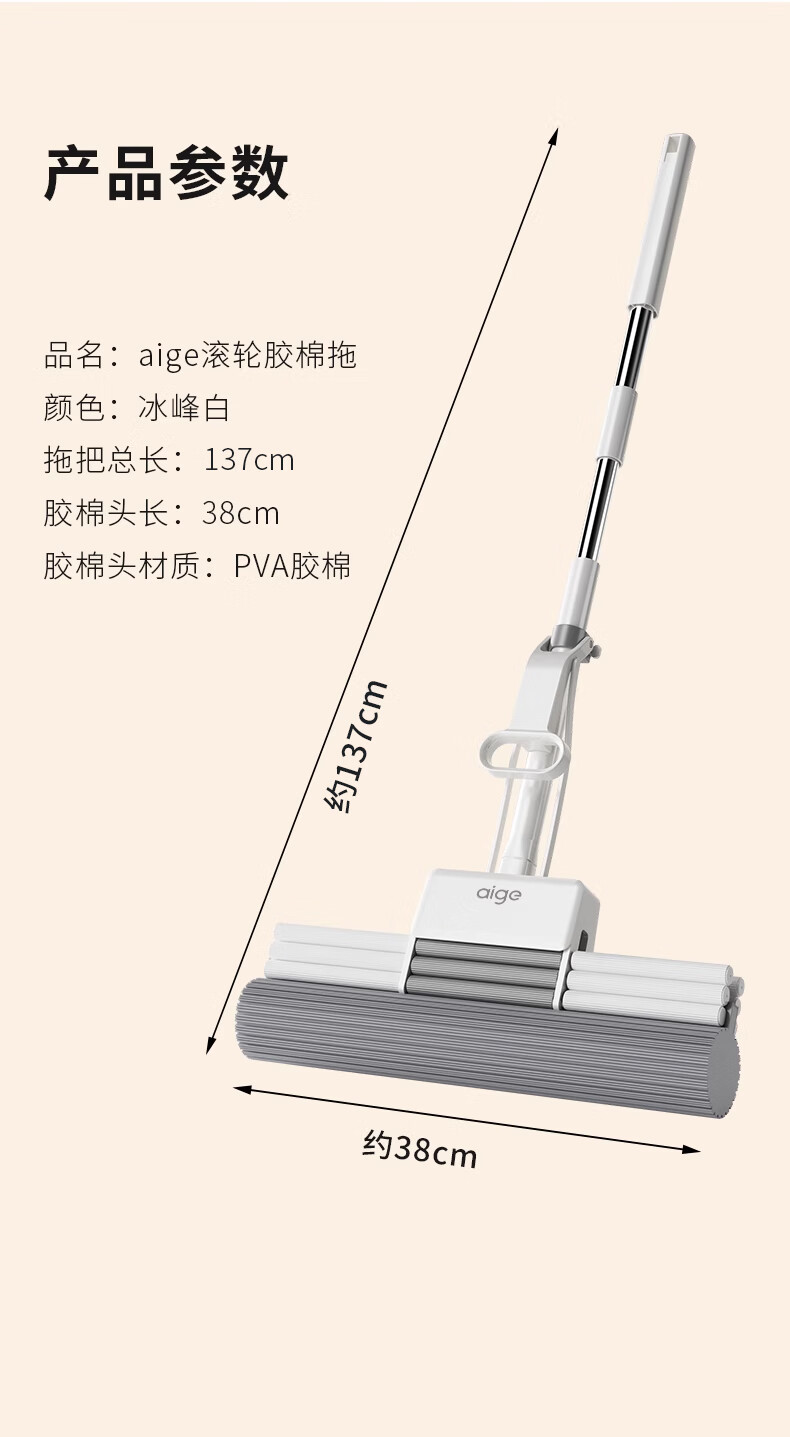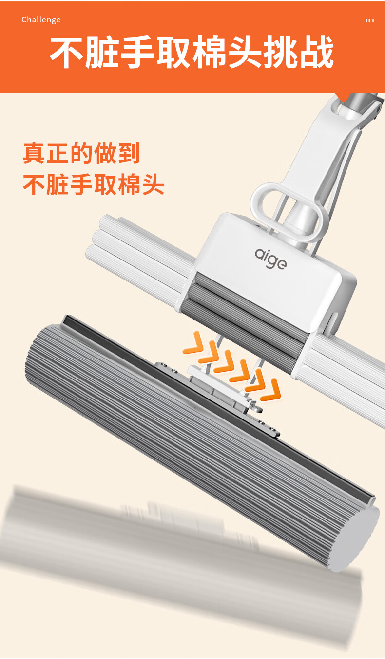 爱格(aige)拖把2025新款吸水海绵卫生间一拖懒人家用胶棉式拖头神器地拖布净 38cm大尺寸巨省力胶棉拖+2个头