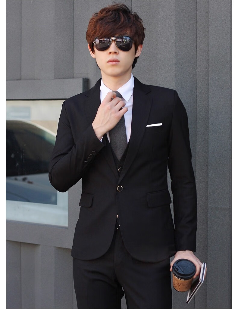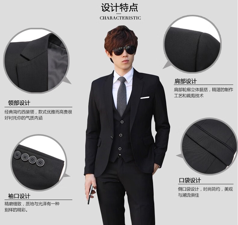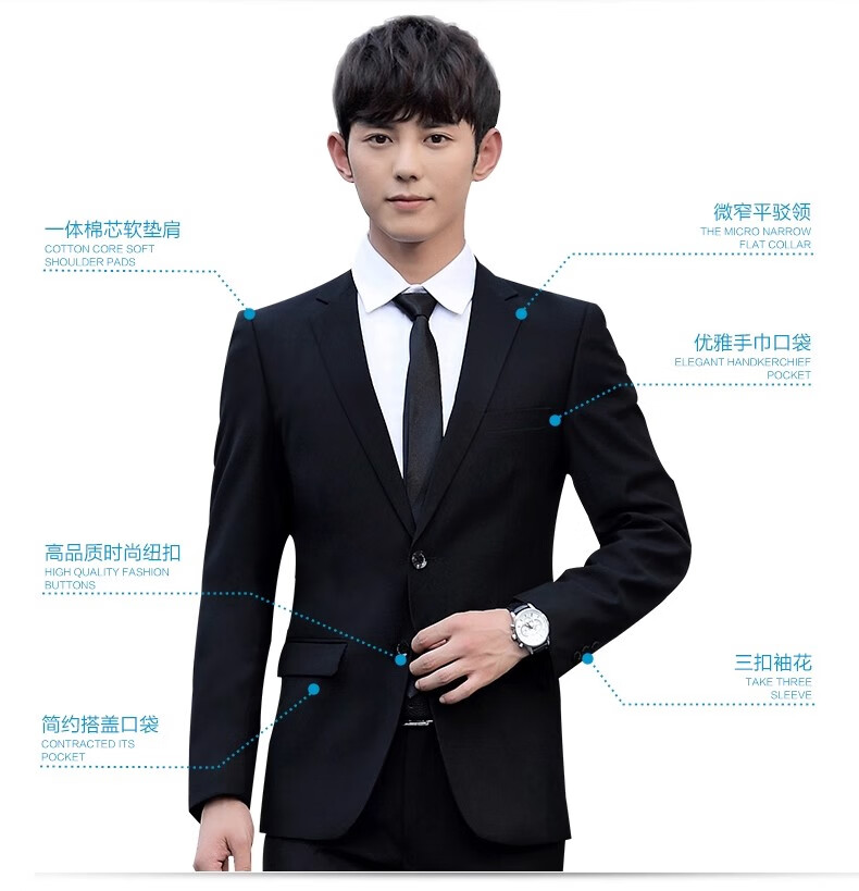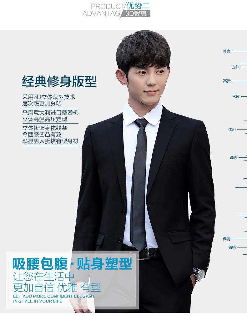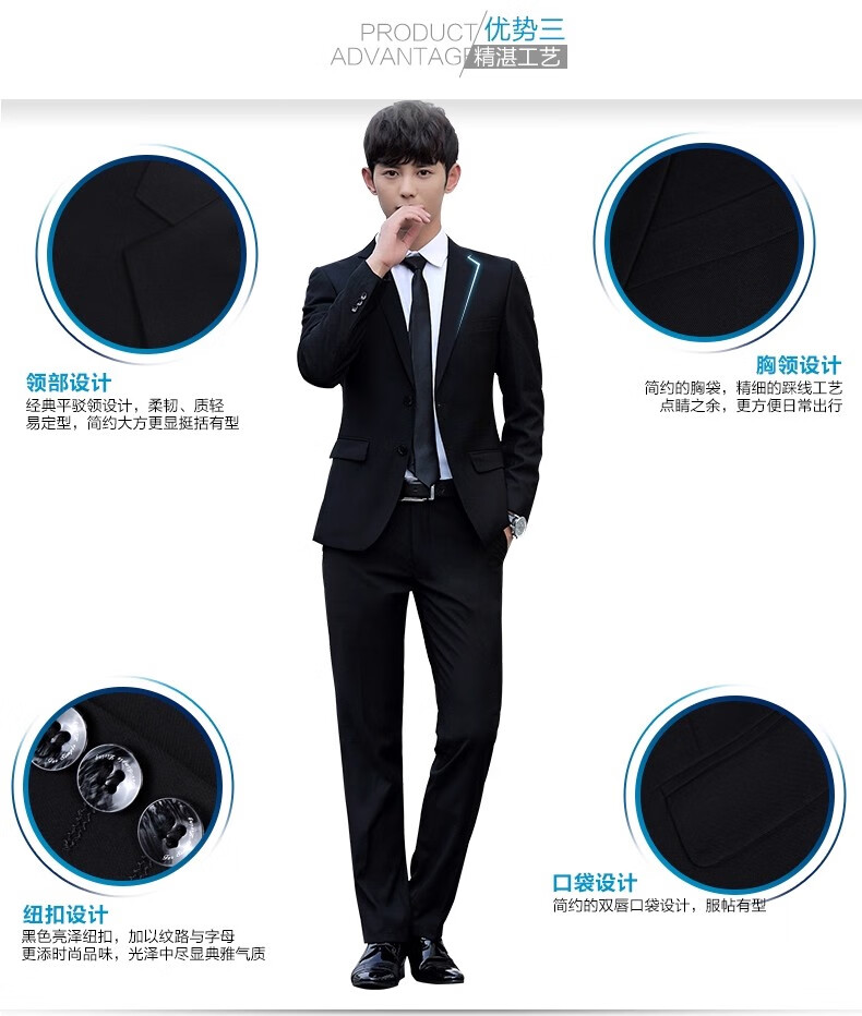 伊尔缘男士职业秋冬加厚西服套装面试正装学生西装修身休闲上班成人礼 外套一件 S 【90-100斤】【质量很好】