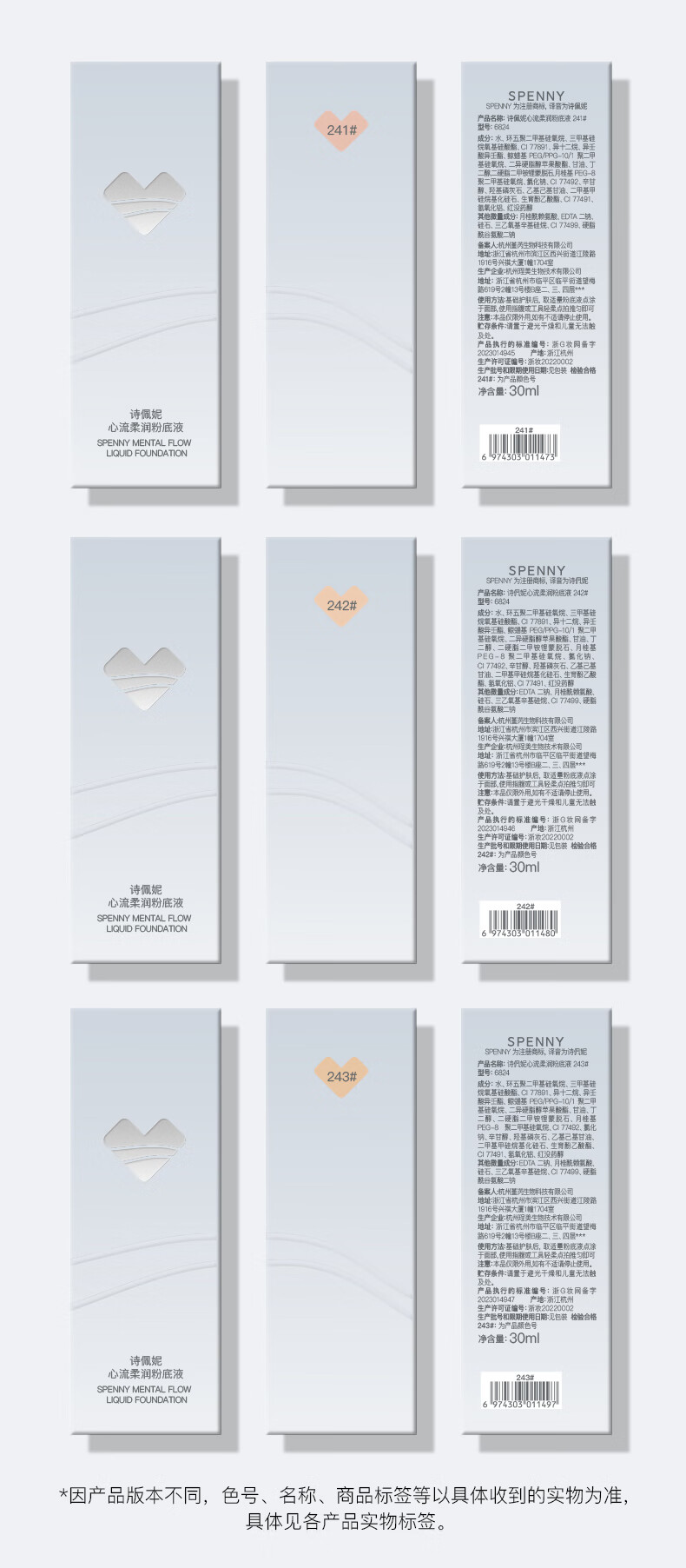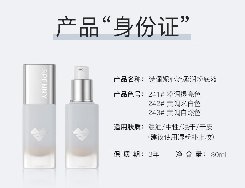 诗佩妮心流柔润持妆粉底液干皮遮瑕轻透保湿持久不易脱妆圣诞礼 243#黄调自然色