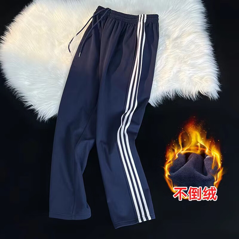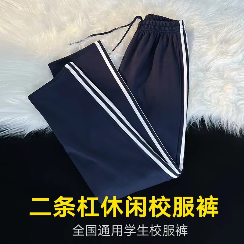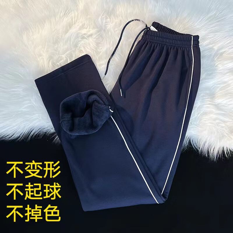 青圳校服裤子秋冬季加绒直筒藏青色一条杠两道杠初中高中生小学生校裤 【冬季加绒保暖】藏青色两道杠直筒 180