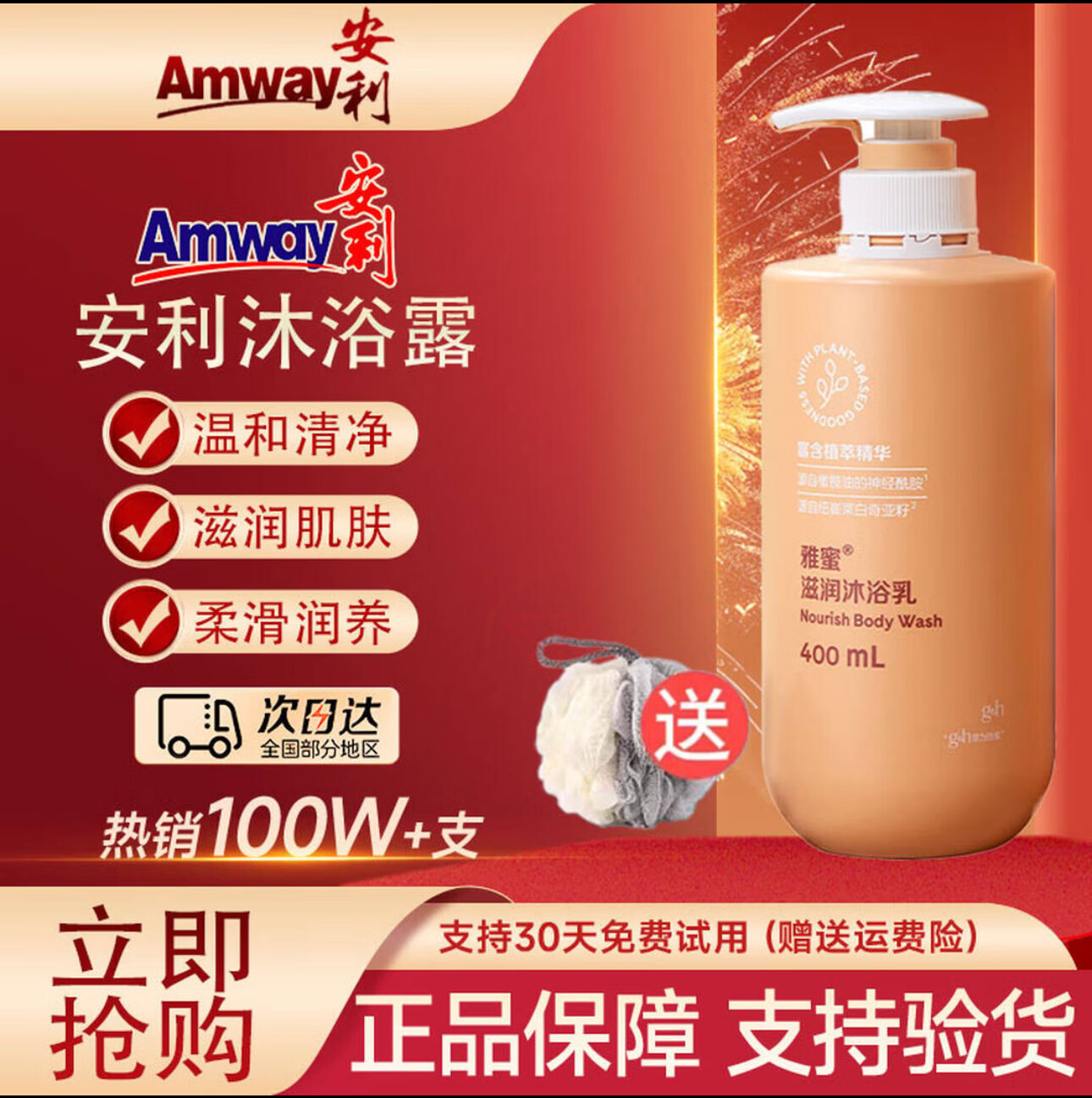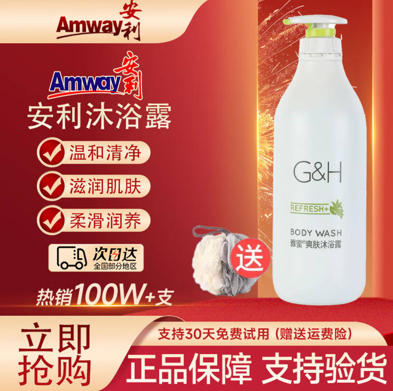 安利雅蜜润肤沐浴露爽肤滋润沐浴乳正品持久留香保湿沐浴液1L (新款)润肤沐浴露1L