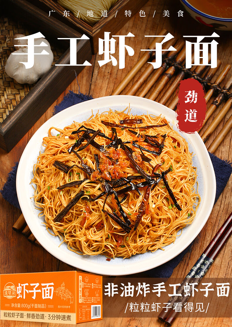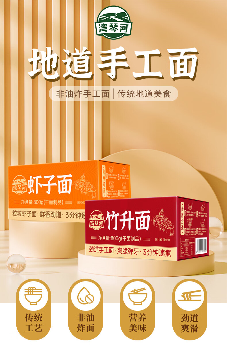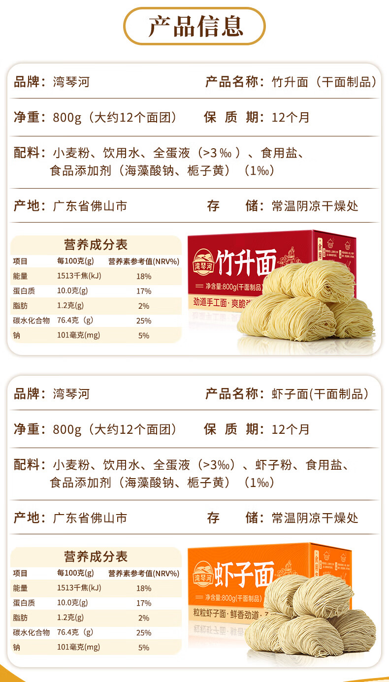 湾琴河手工竹升面 虾子面 山药龙须面 面条挂面 特色线面 方便速食礼盒 虾子面800g/竹升面800g各一箱