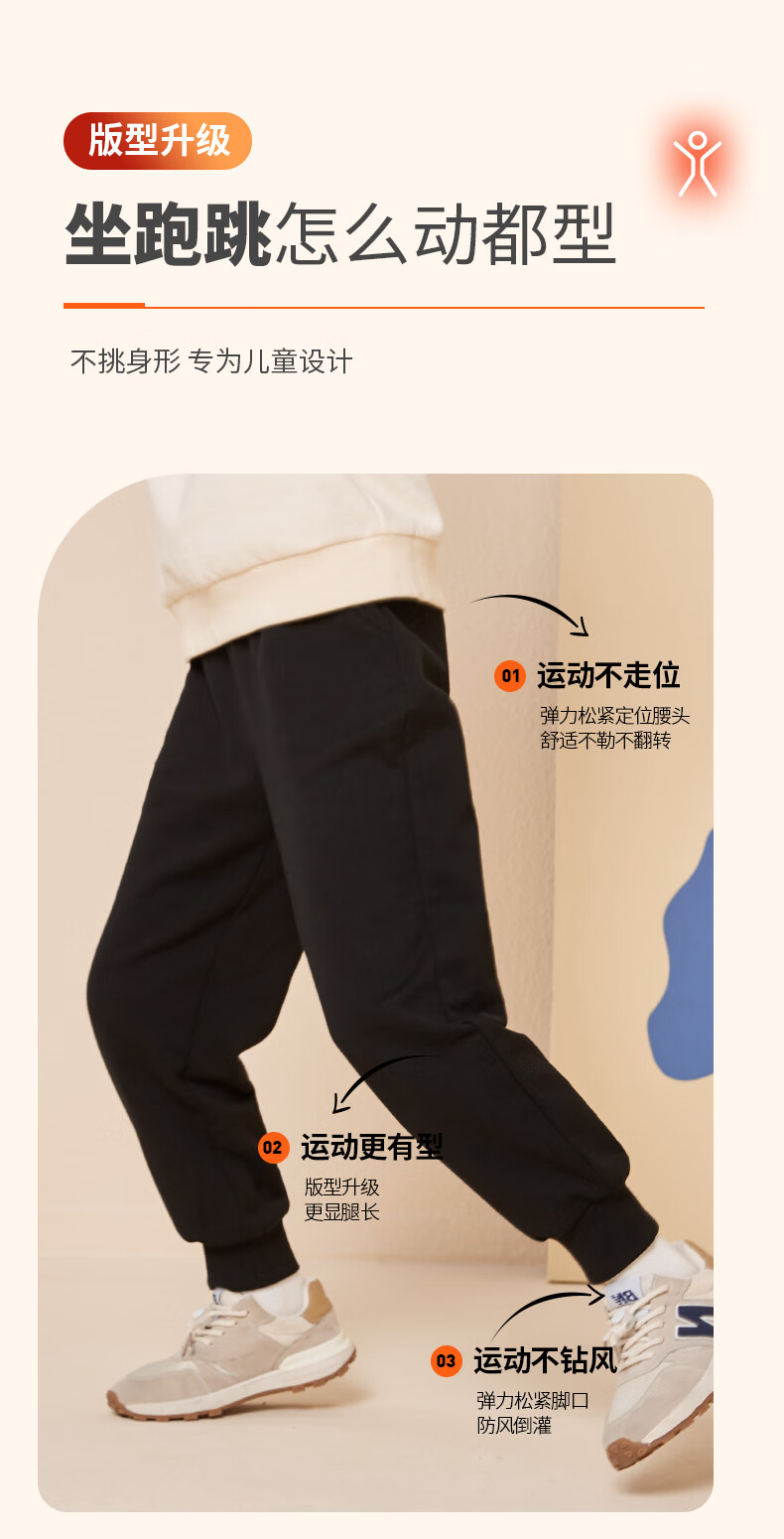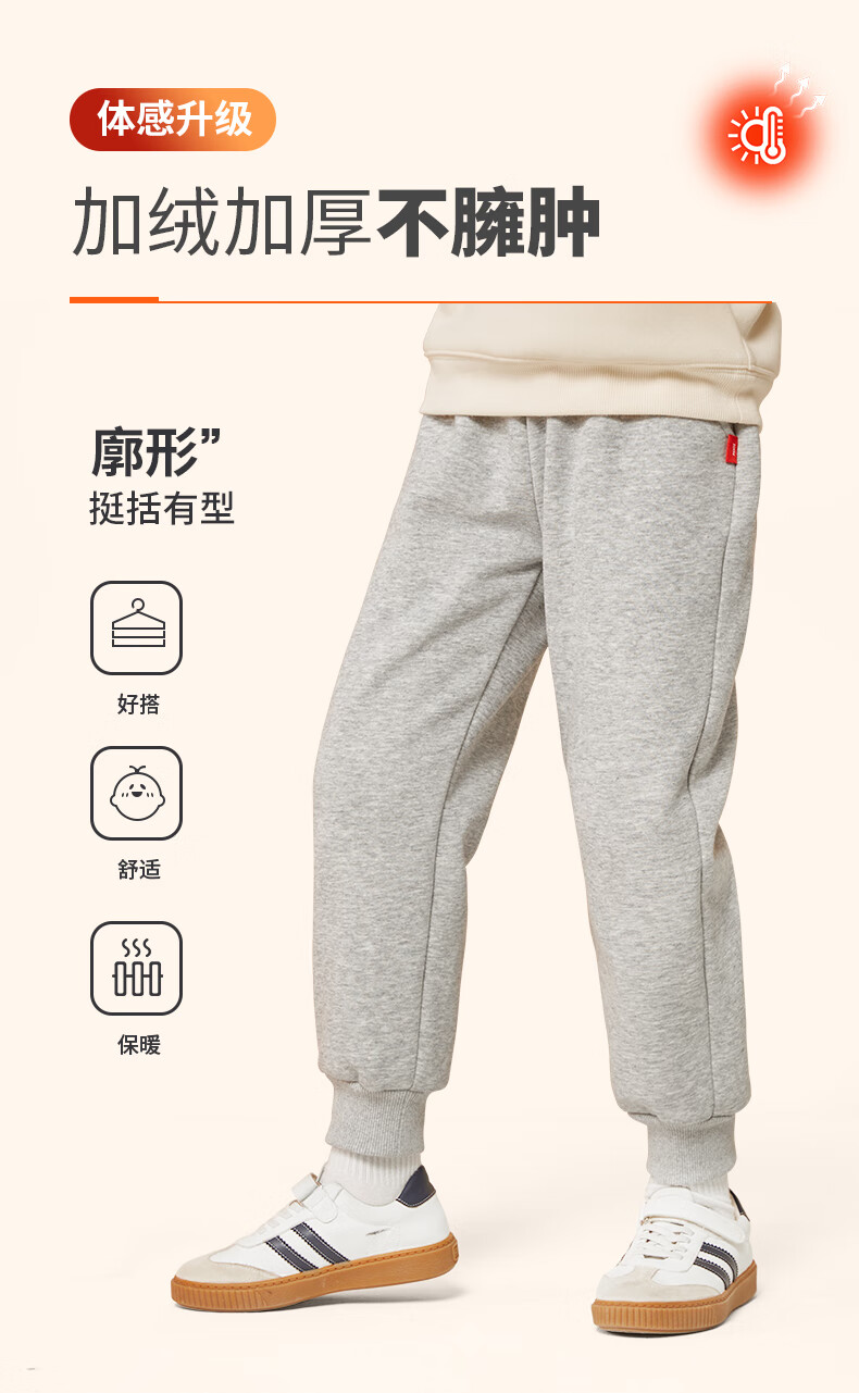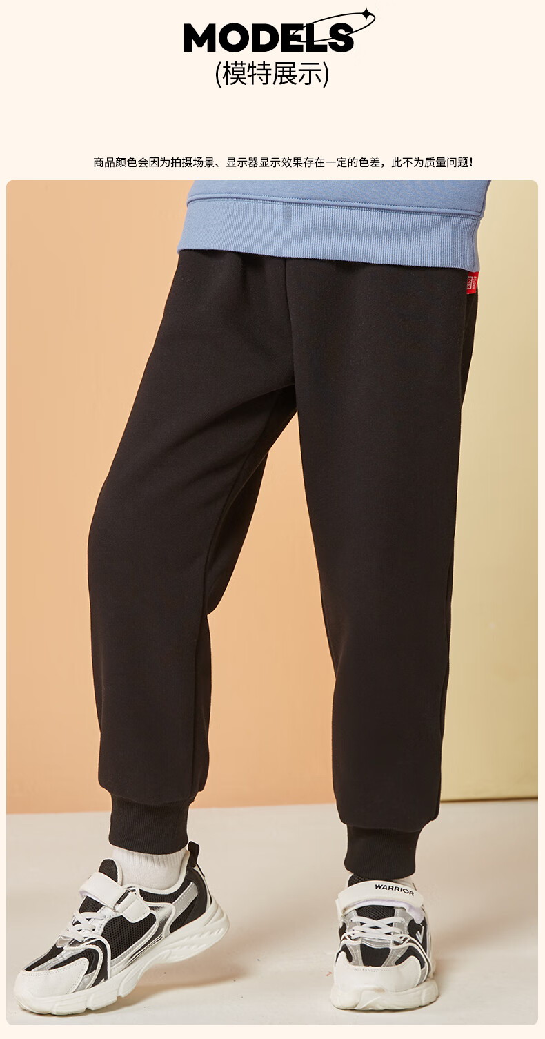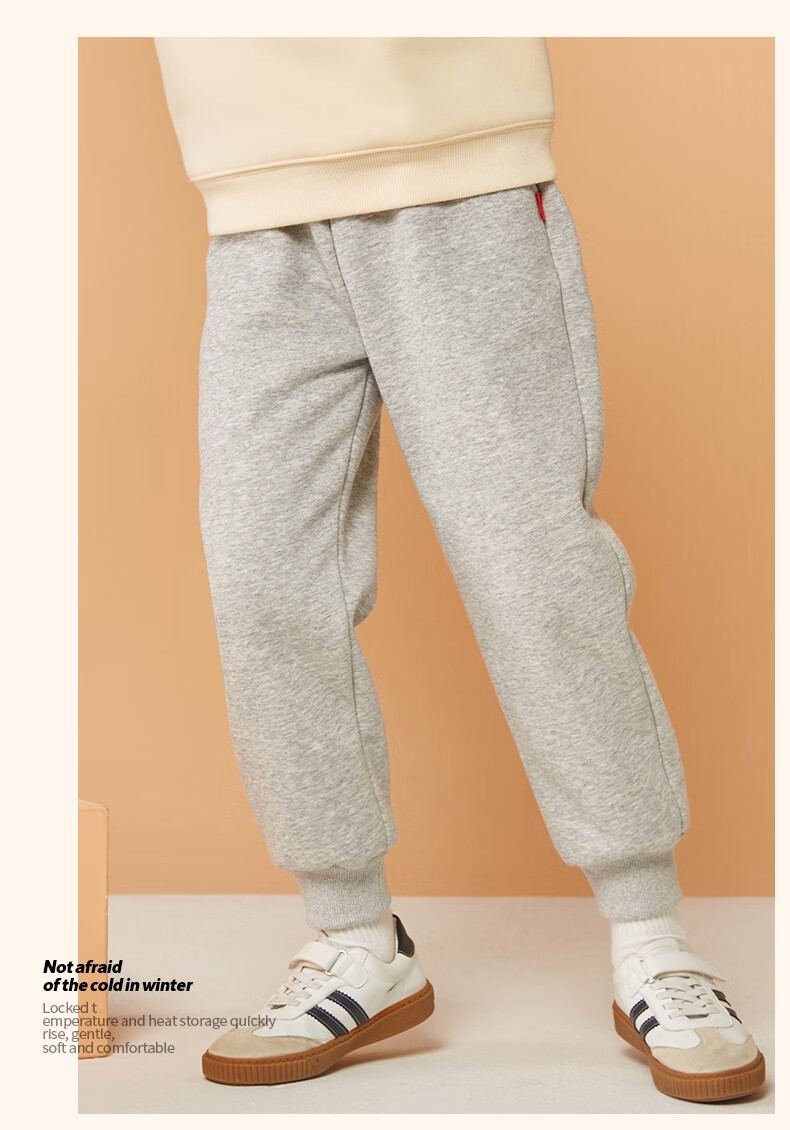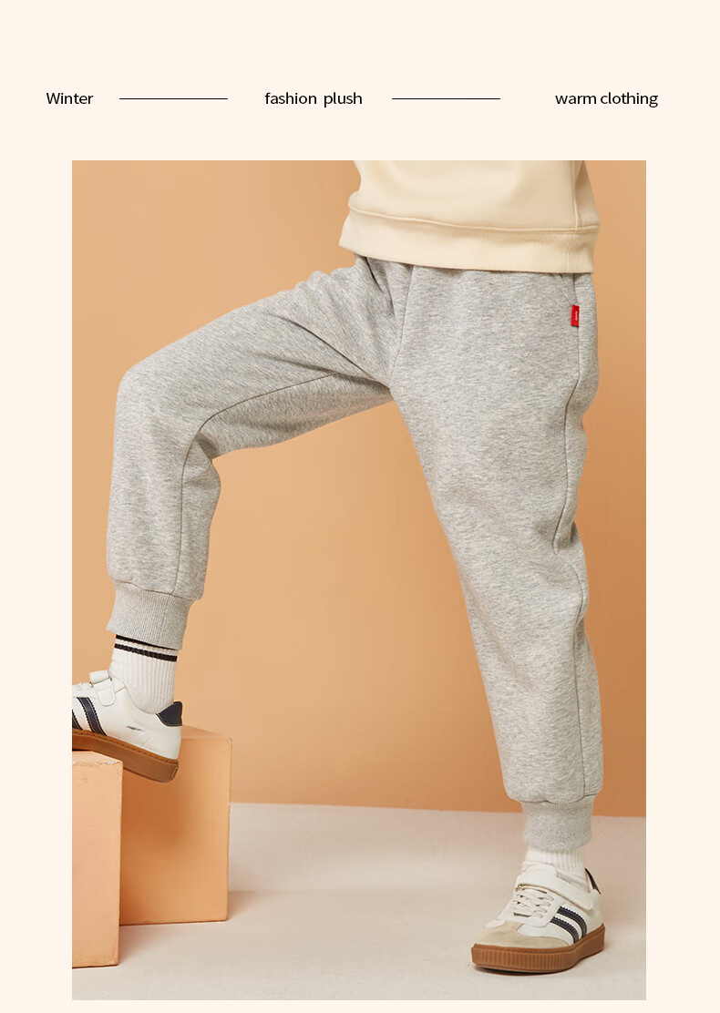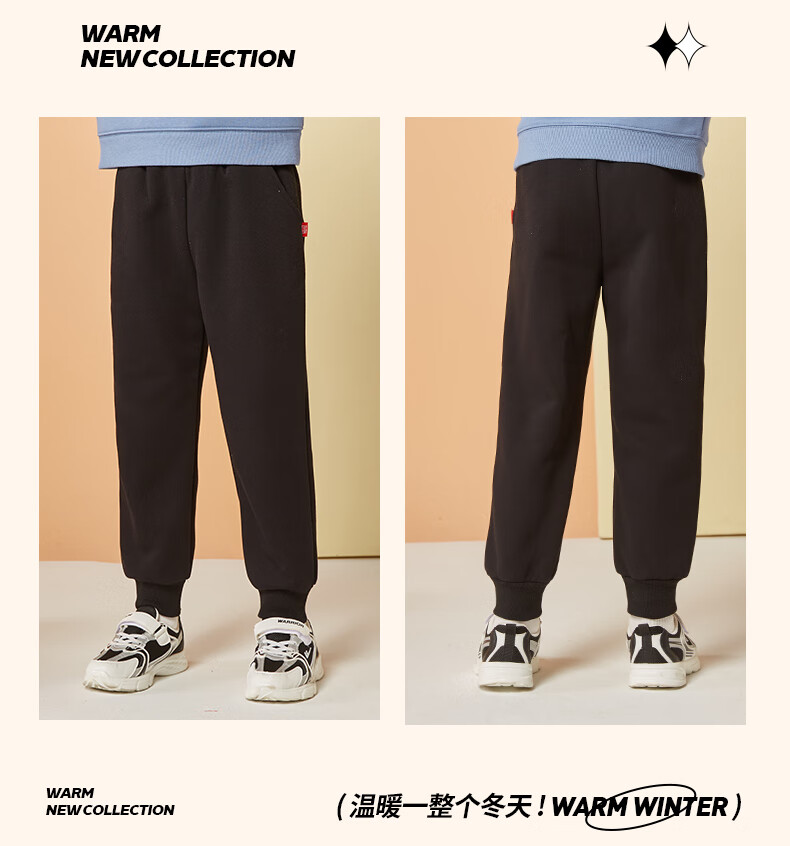 班纳班纳童装男童加绒裤子男孩卫裤2025新款长裤儿童秋冬款运动裤男 N古熊K黑 130