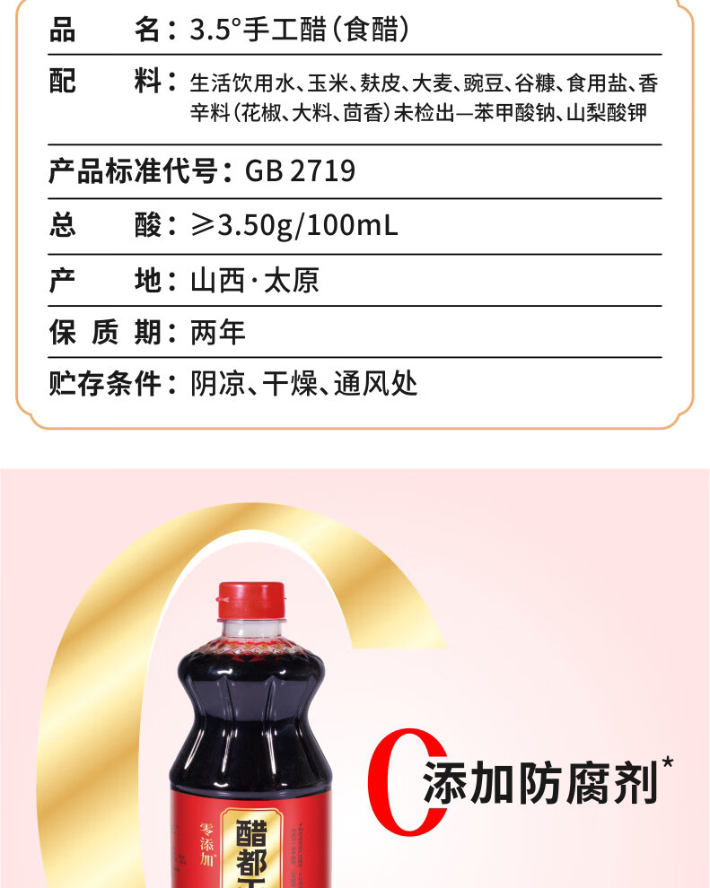 醋都王零添加古法酿造酸绵香甜山西老陈醋800ML*3瓶特产陈醋 【山西老陈醋】800ML*3瓶