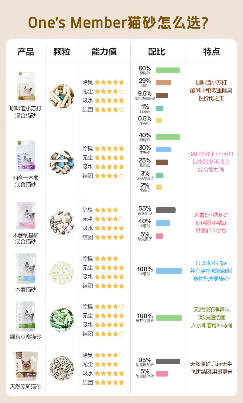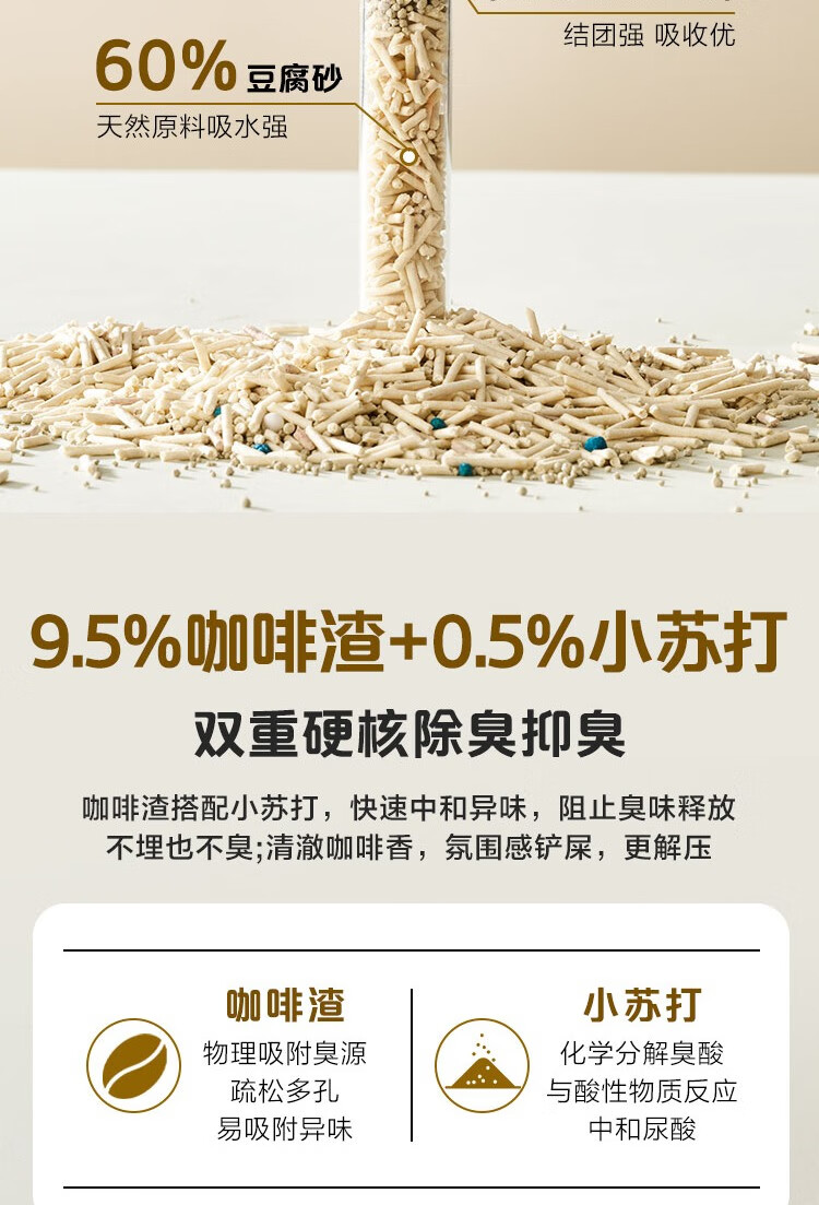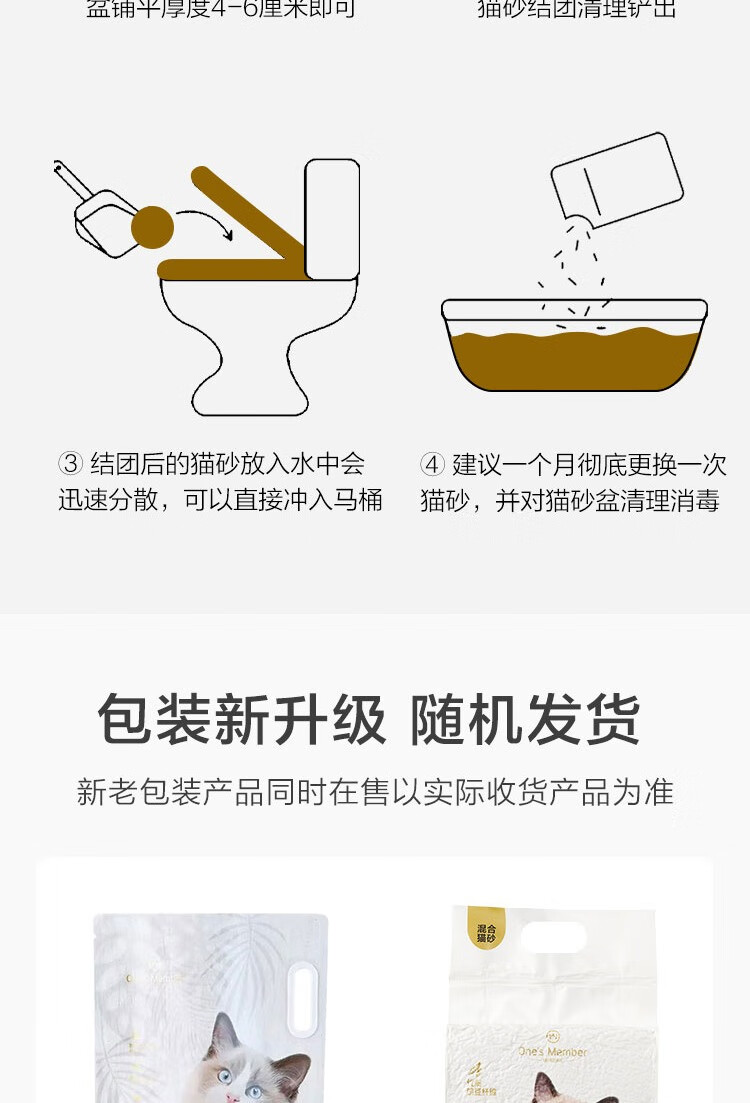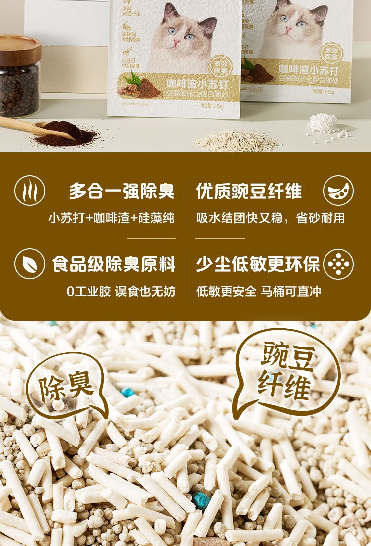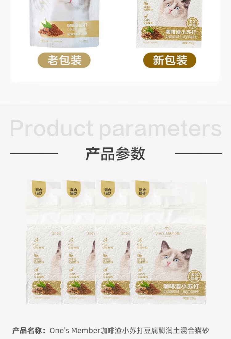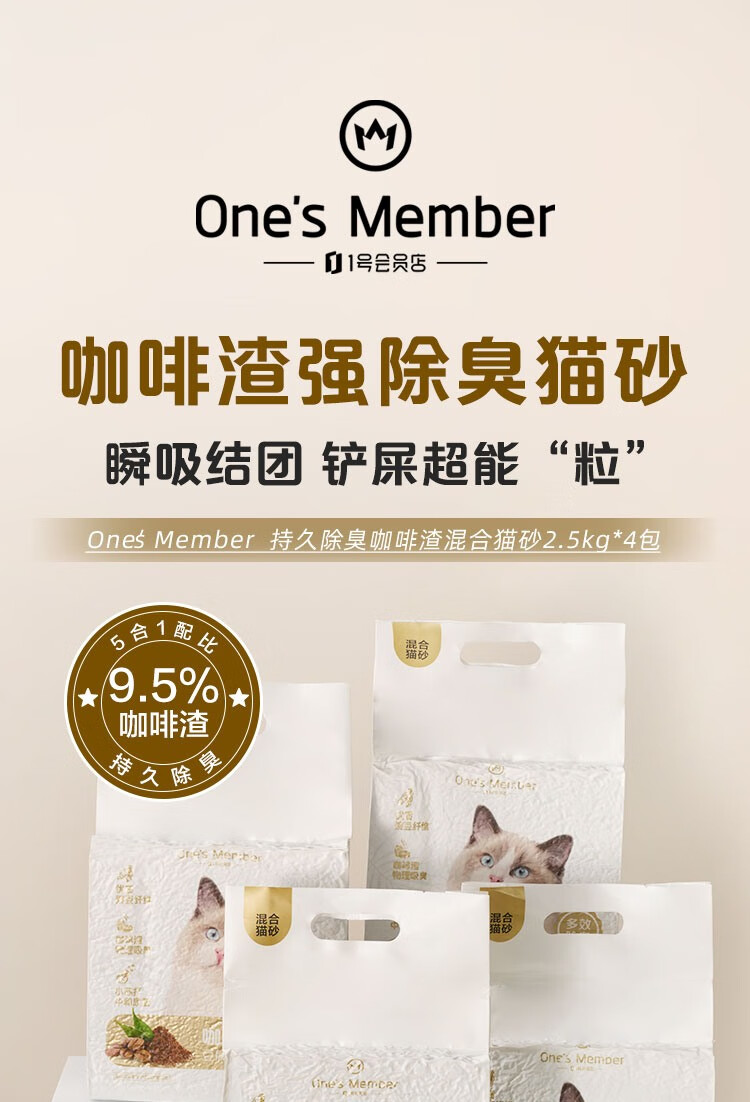 One's Member 咖啡渣小苏打五合一混合猫砂2.5kg*4除臭低尘20斤