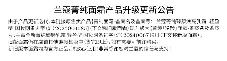 兰蔻菁纯面霜60ml轻盈版玻色因抗皱滋润护肤品生日圣诞礼物送女友