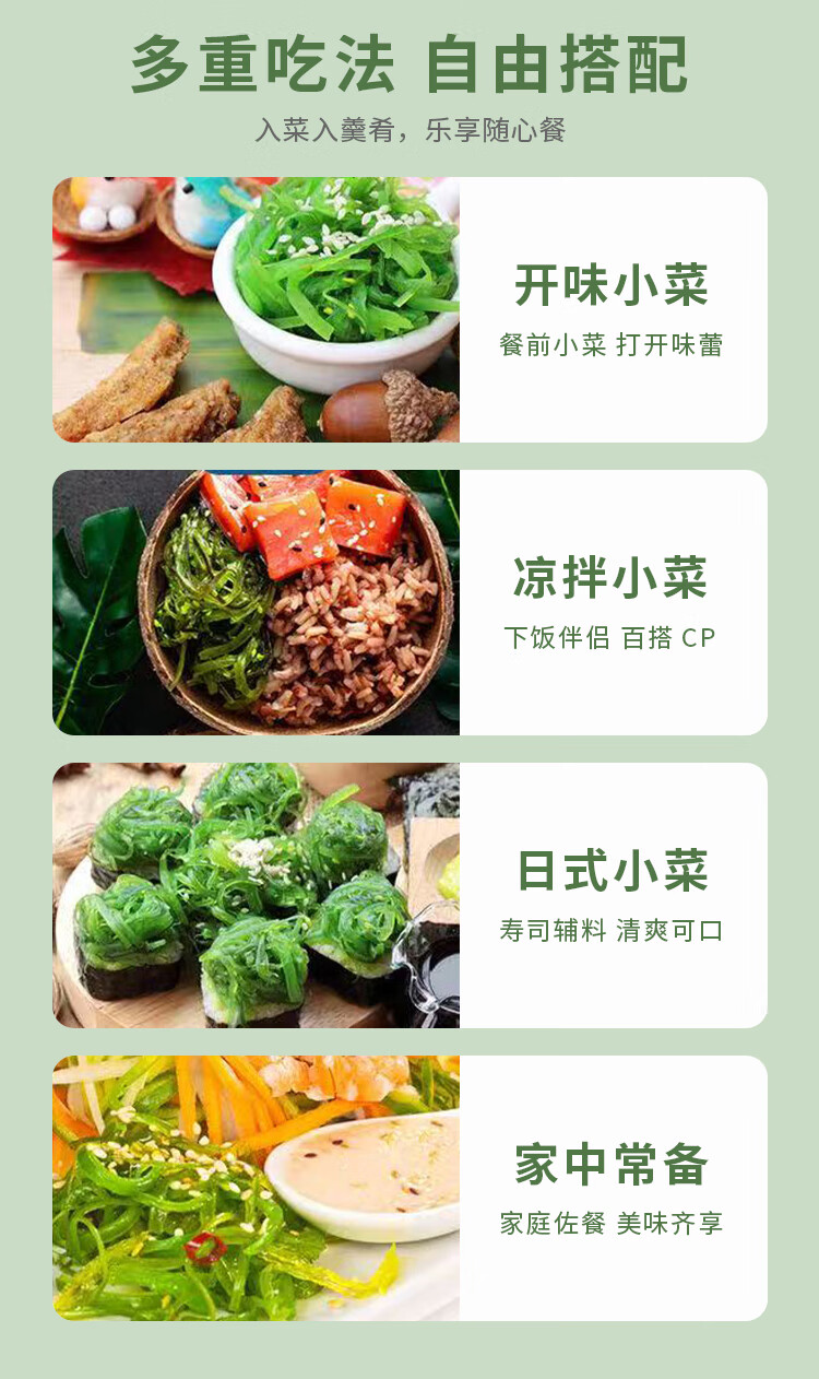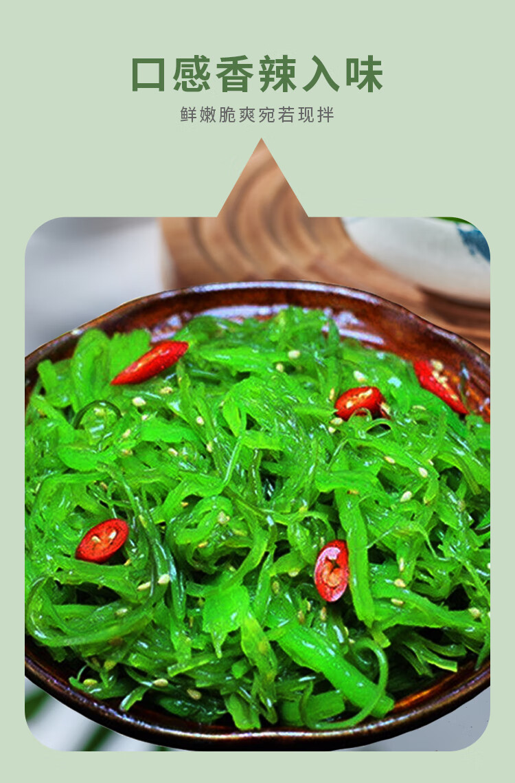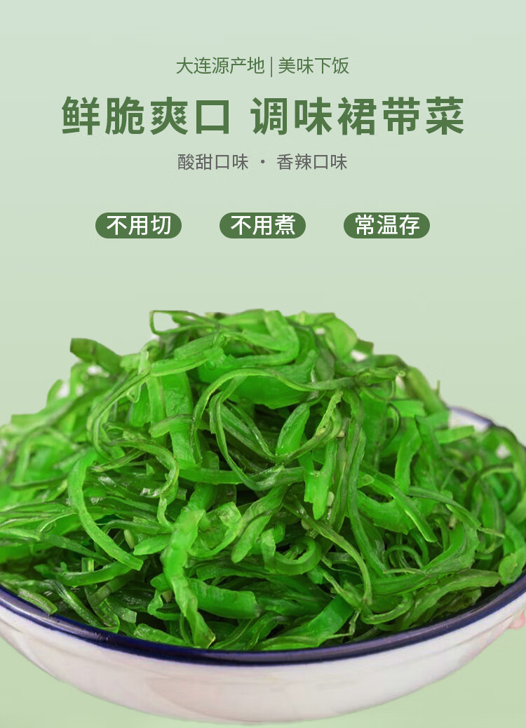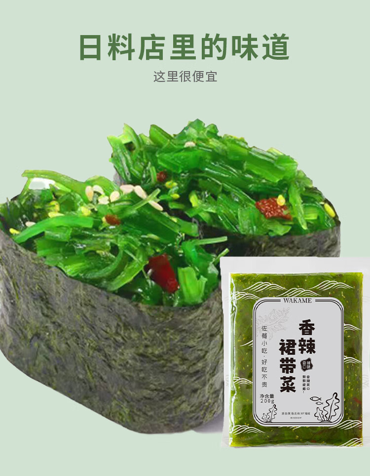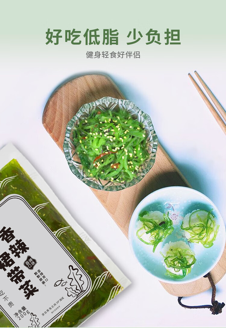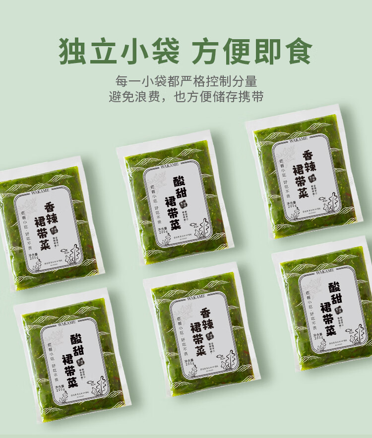 小熊船长 亿海即食裙带菜200g/袋 开袋即食海鲜水产海藻海白菜 酸甜味5袋+香辣味5袋