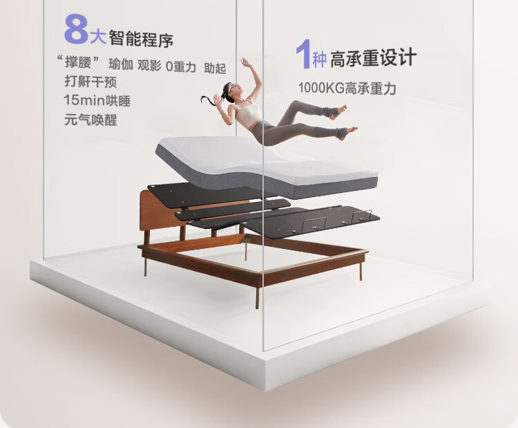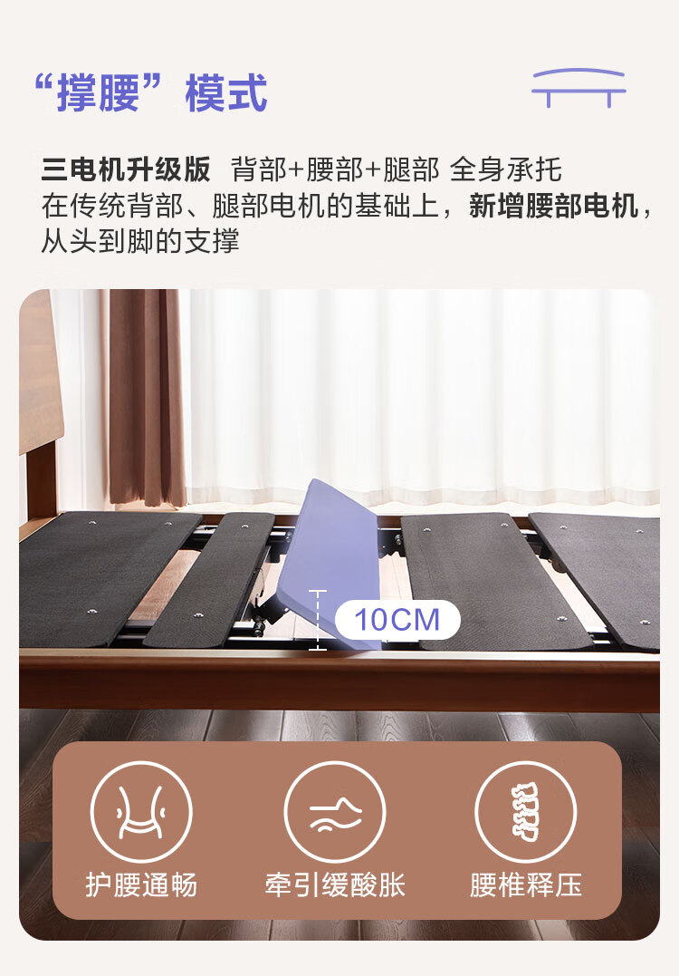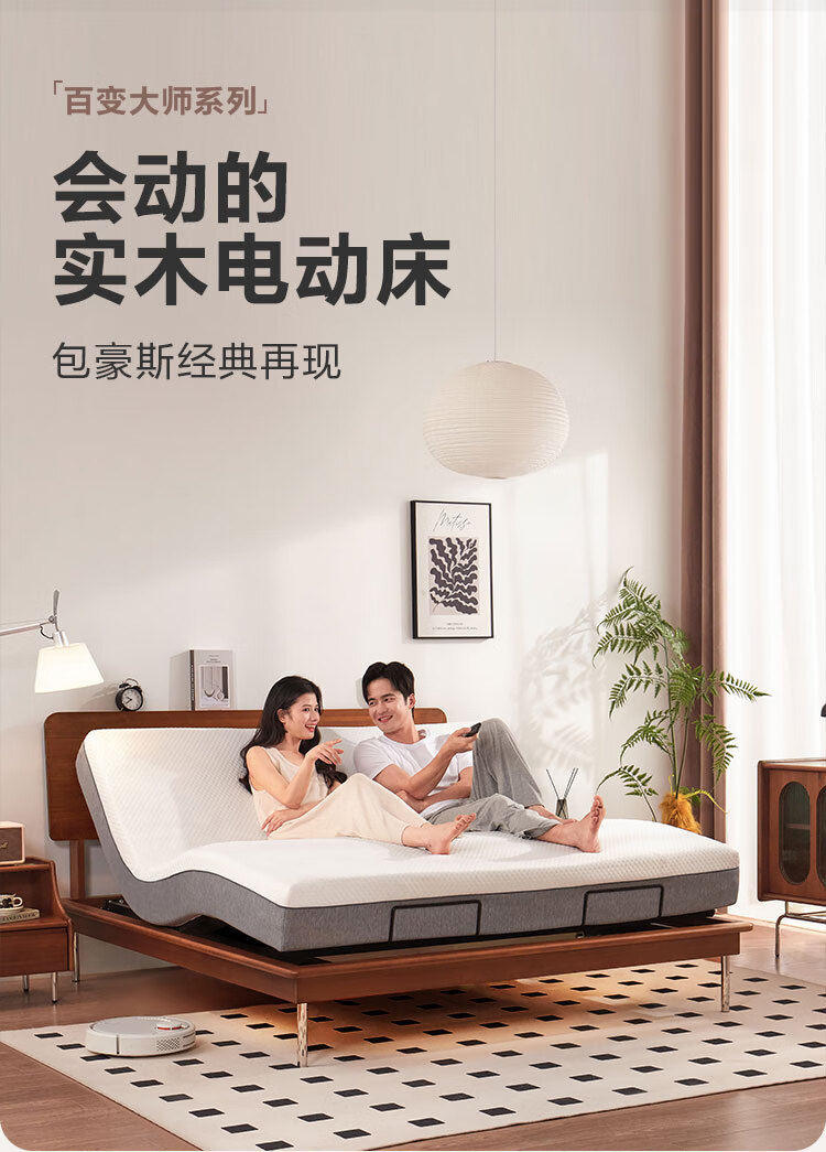 京东京造百变大师实木电动床 8+2智能模式 腰+背+腿3电机 双人床1.8x2米