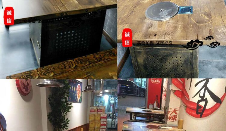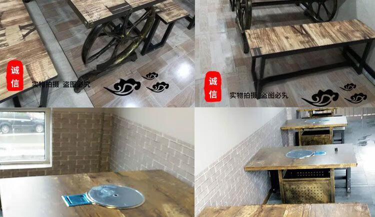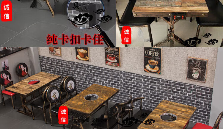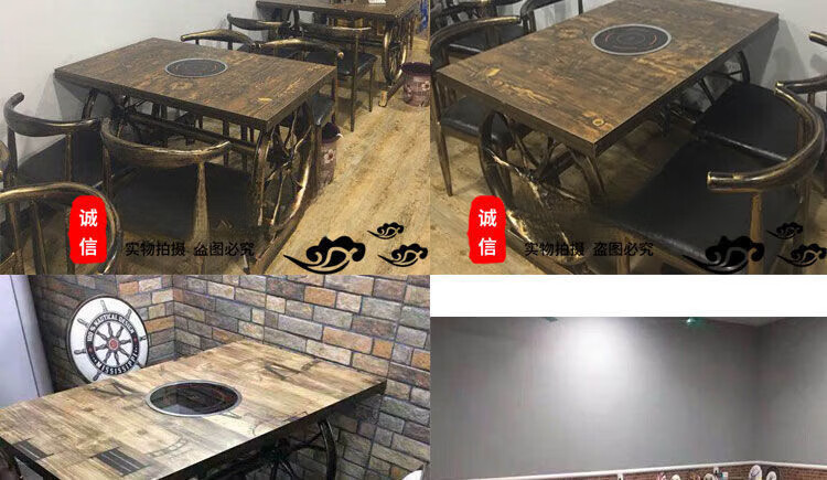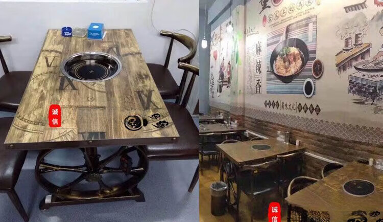 倘然之家火锅桌子电磁炉一体一人一锅圆桌餐饮饭店桌椅组合煤气灶商用烙锅 120*70一桌四椅加电磁炉下沉式