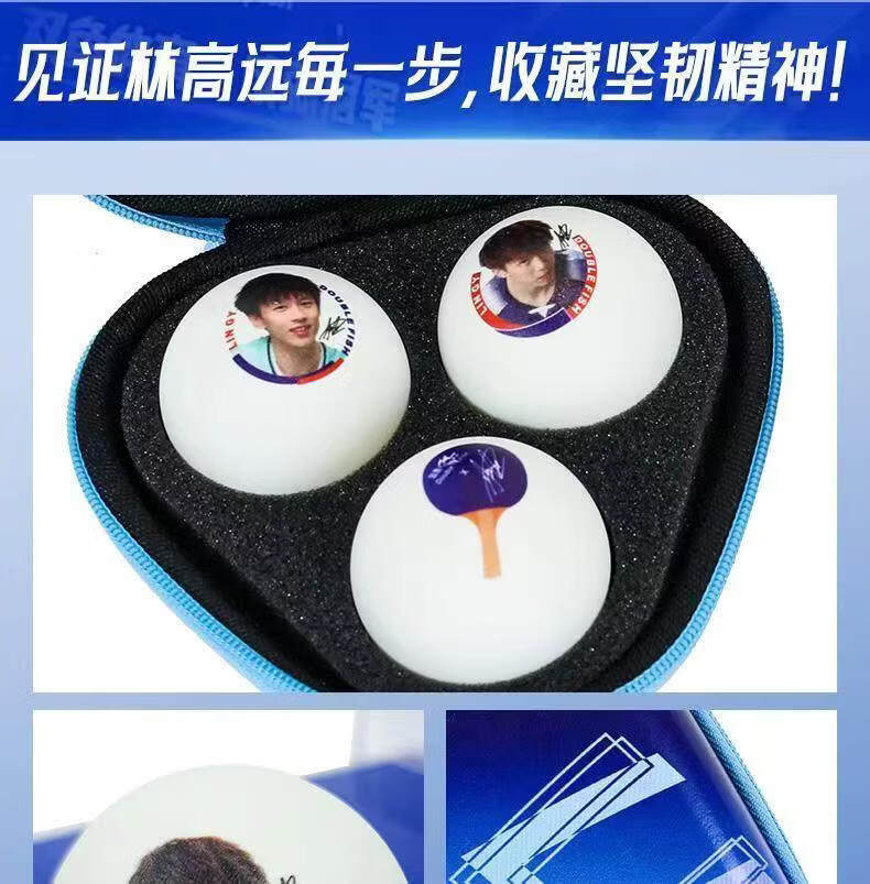 双鱼(DOUBLE FISH)林高远肖像乒乓球 收藏纪念比赛训练球三星级球官方正品 送球盒 3只 林高远肖像乒乓球