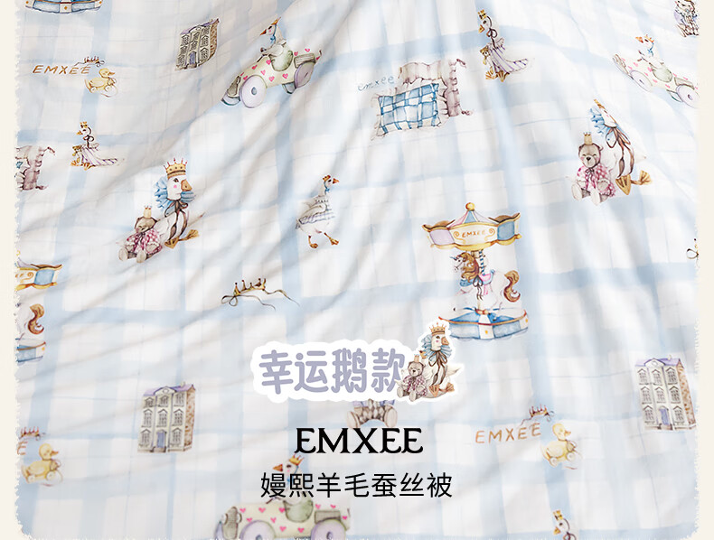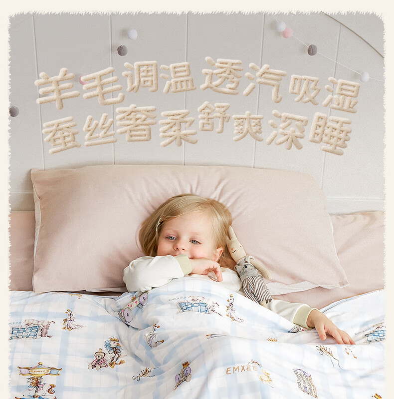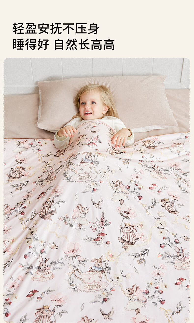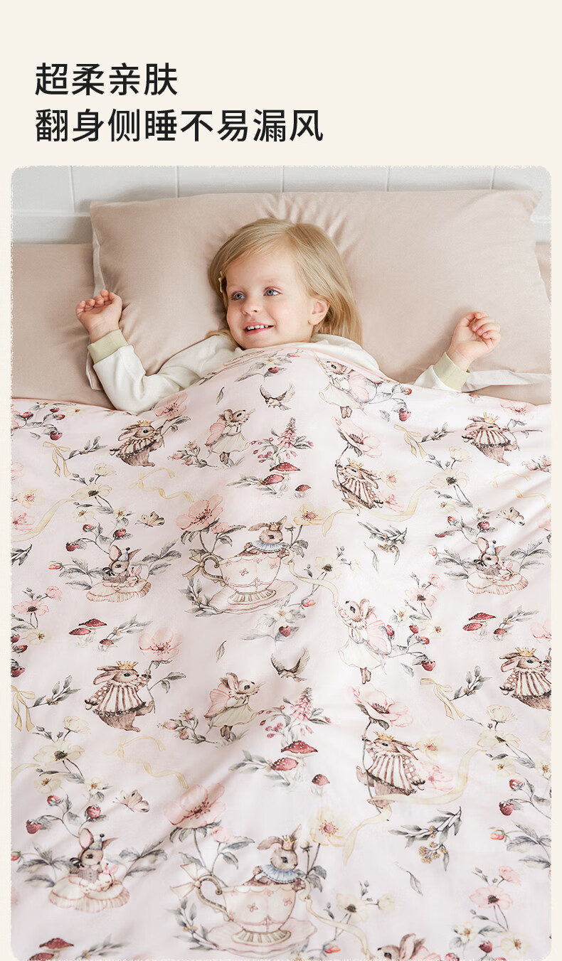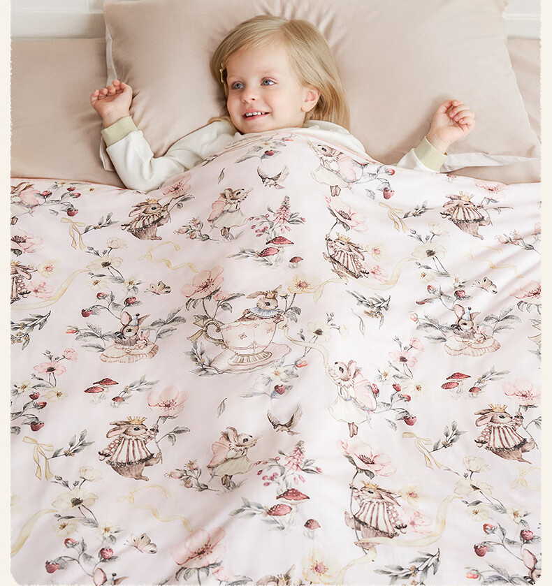 嫚熙(EMXEE)幸运鹅羊毛蚕丝被婴儿被子四季通用盖被幼儿园宝宝专用 寒冬【羊毛+蚕丝+子母被】萌兔派对 室温0-5℃