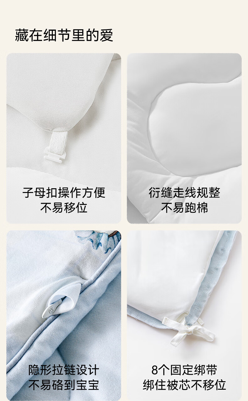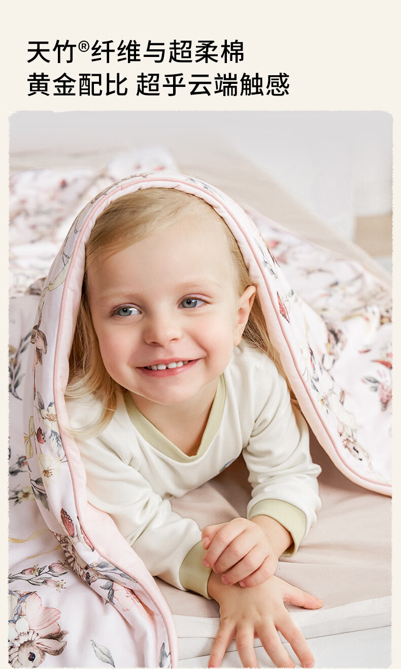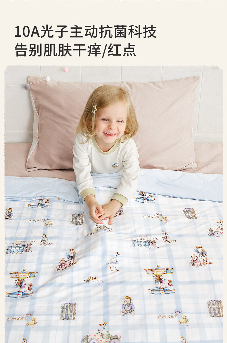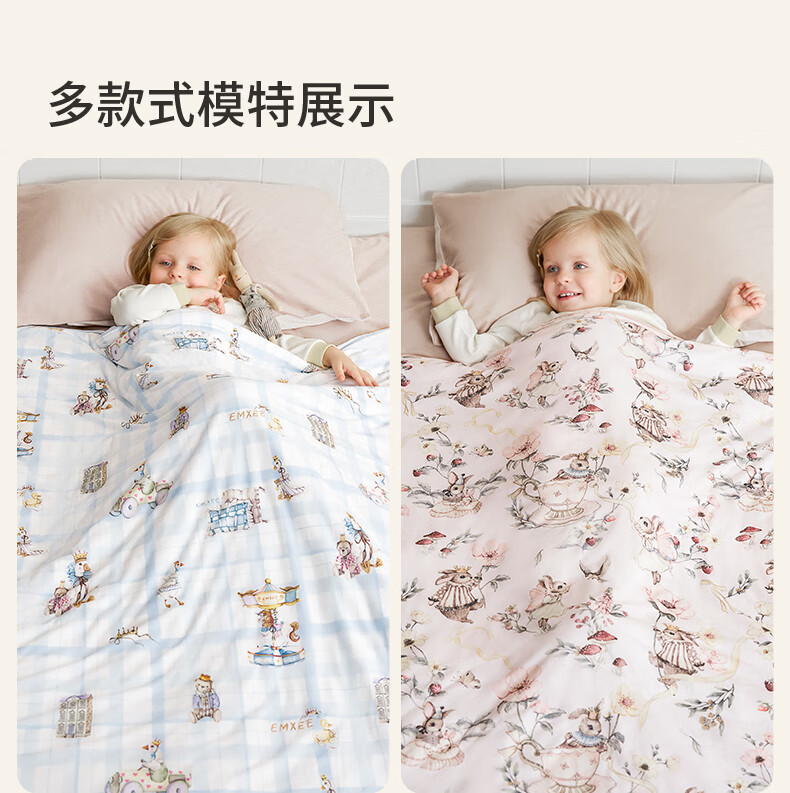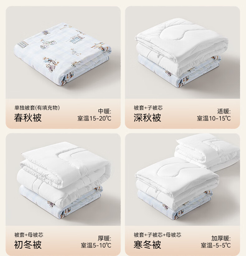 嫚熙(EMXEE)幸运鹅羊毛蚕丝被婴儿被子四季通用盖被幼儿园宝宝专用 寒冬【羊毛+蚕丝+子母被】萌兔派对 室温0-5℃