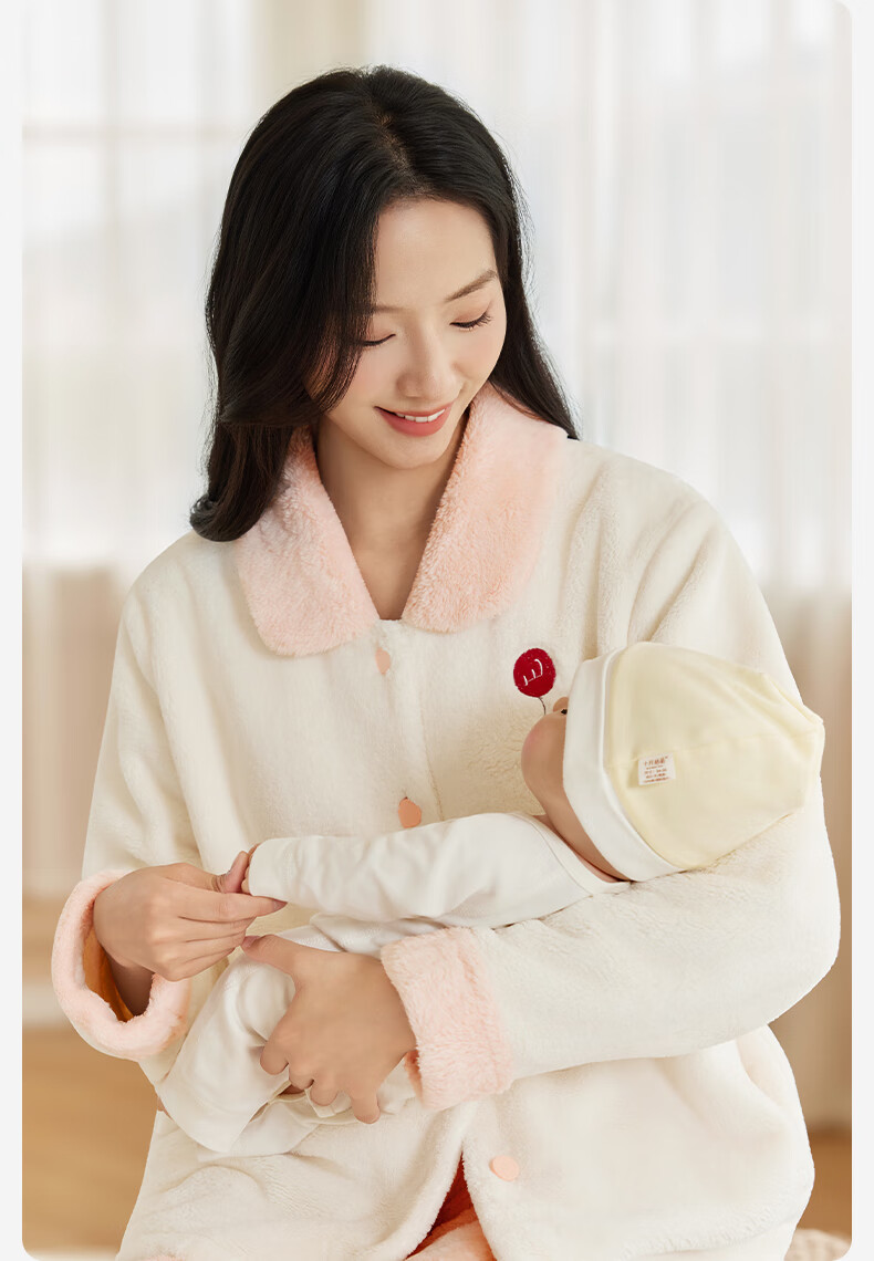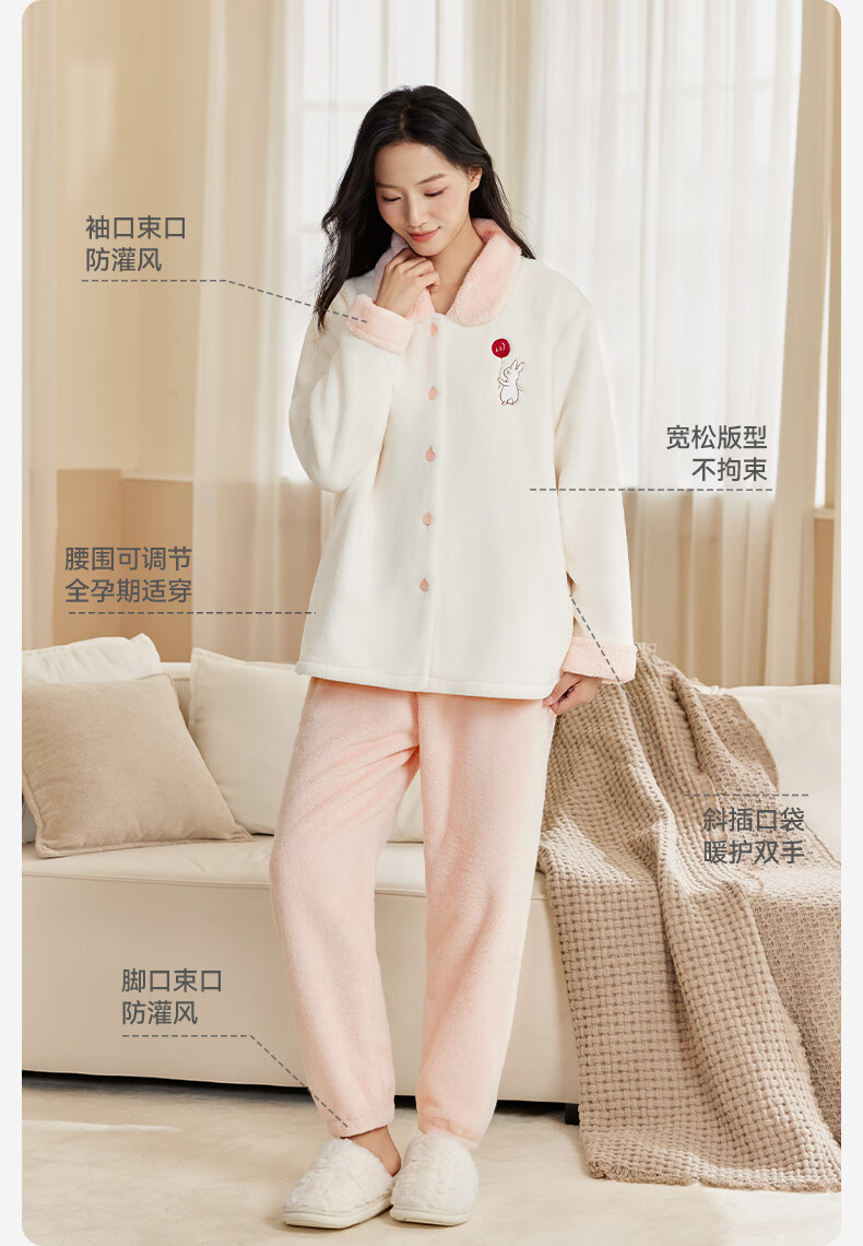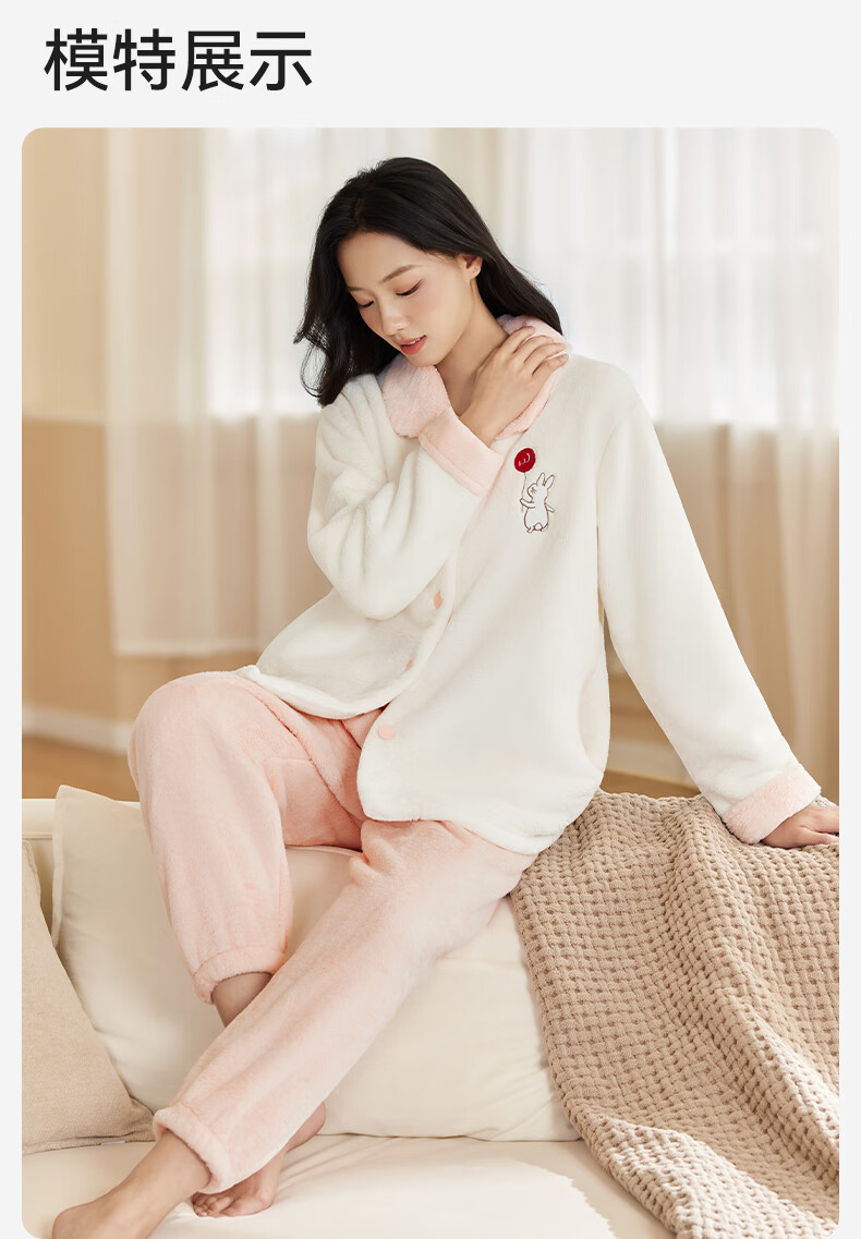 十月结晶家居服孕产妇冬季珊瑚绒睡衣月子服家居服套装 粉叽小兔 L码