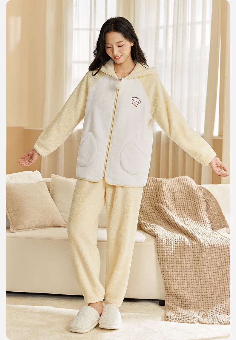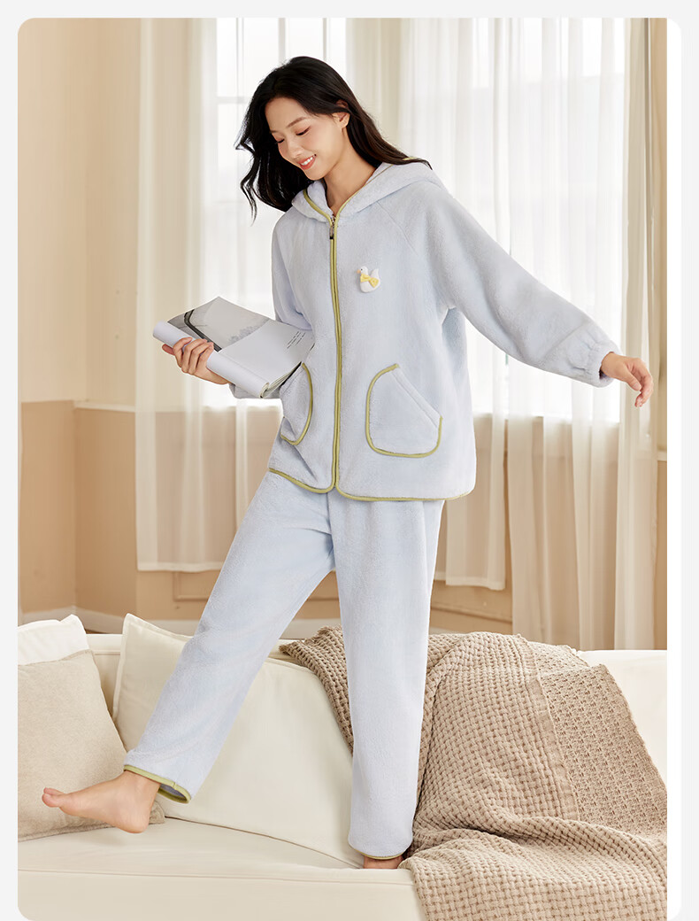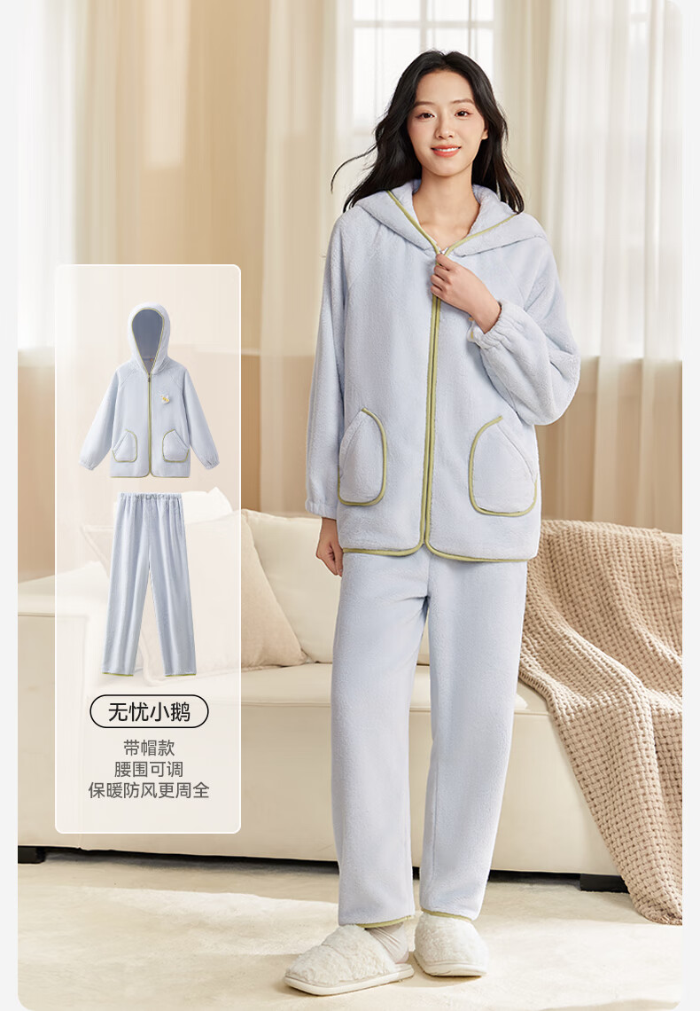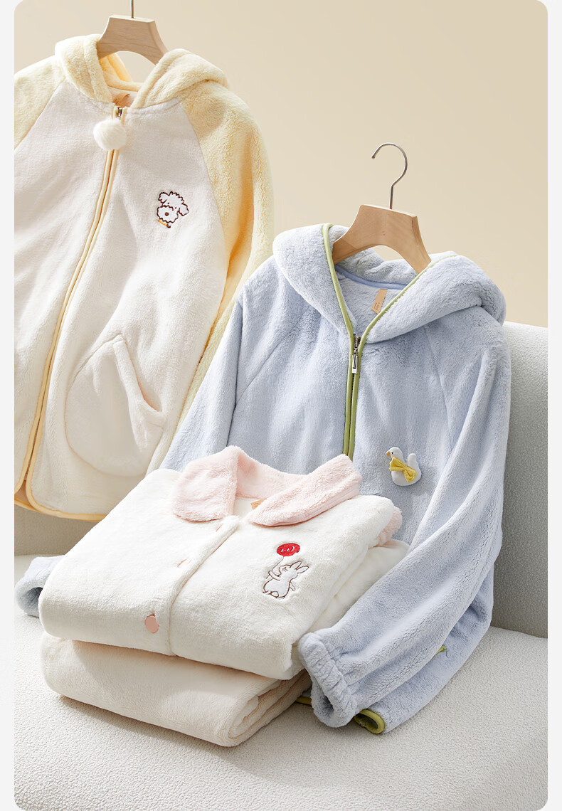 十月结晶家居服孕产妇冬季珊瑚绒睡衣月子服家居服套装 粉叽小兔 L码