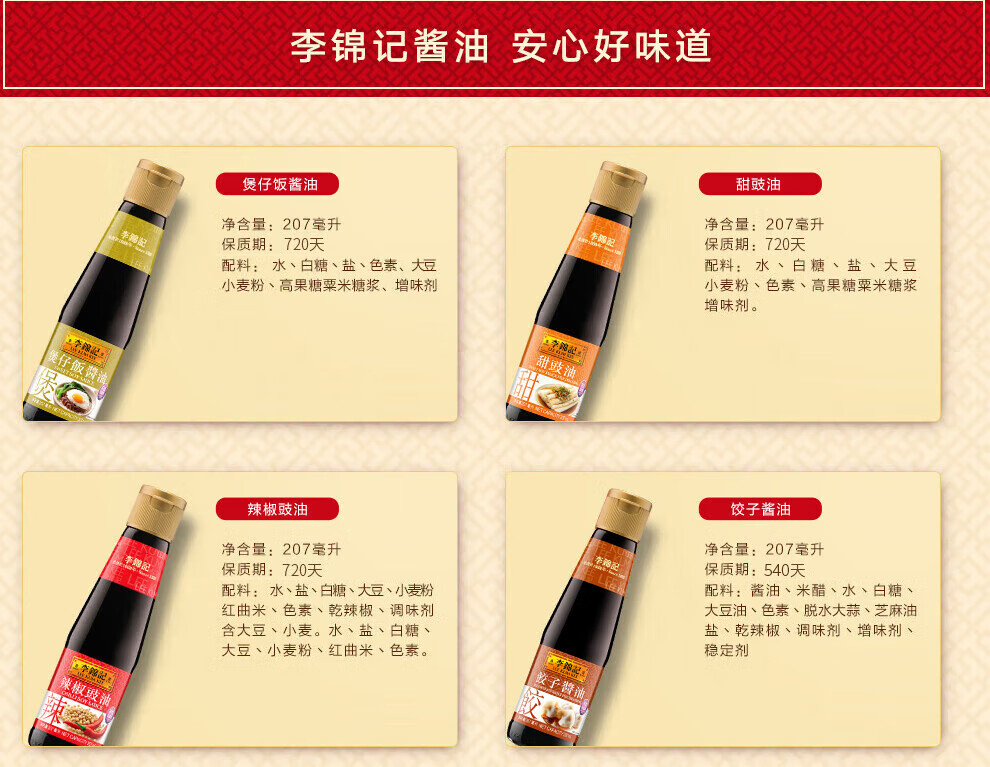 李锦记(LEE KUM KEE)港版小瓶甜豉油蘸料煲仔饭家用火锅调料饺子酱油炒菜使用无碘盐 甜豉油(甜酱油)207ml