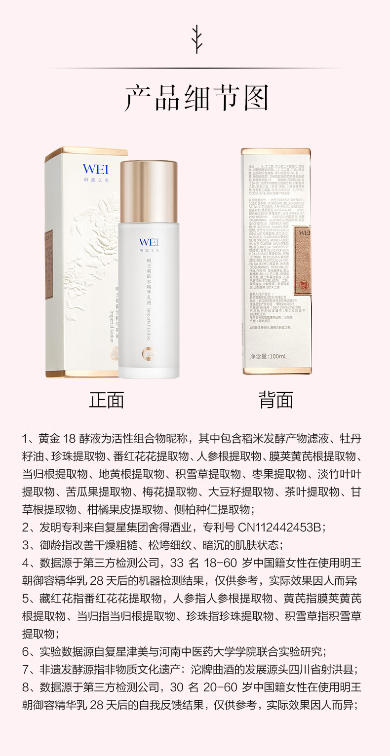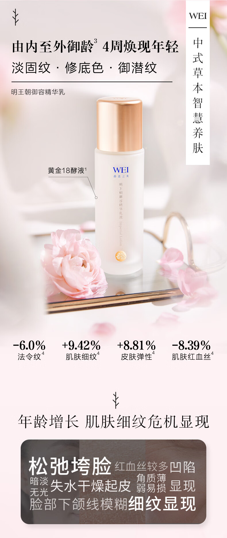 蔚蓝之美WEI明王朝御容精华乳液 抗皱紧致淡纹水乳补水保湿滋润护肤品女士