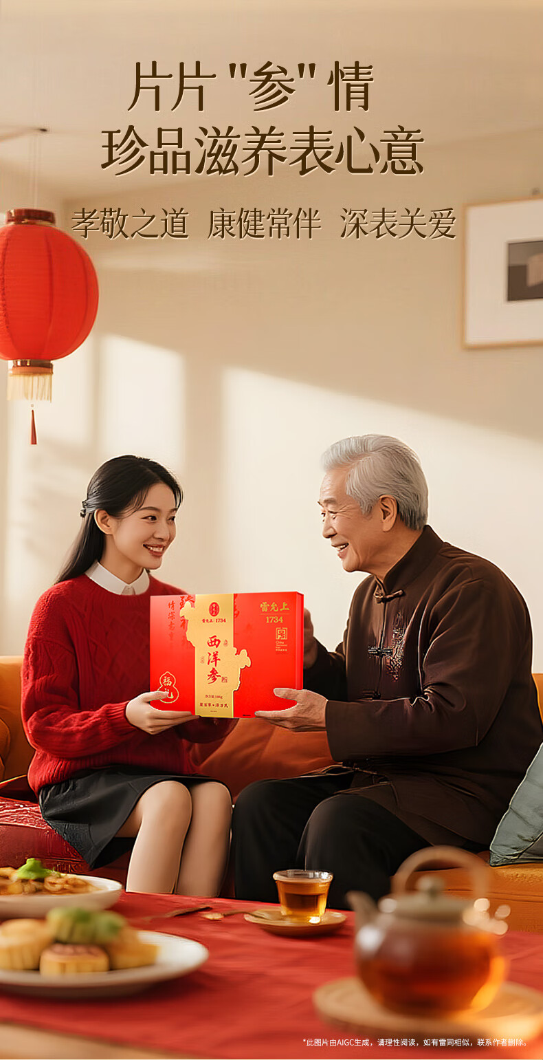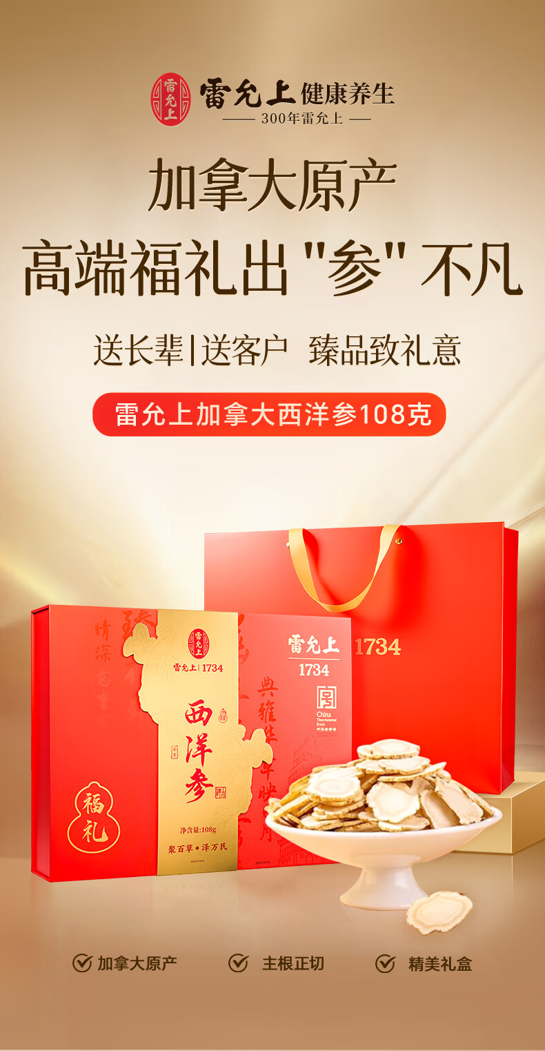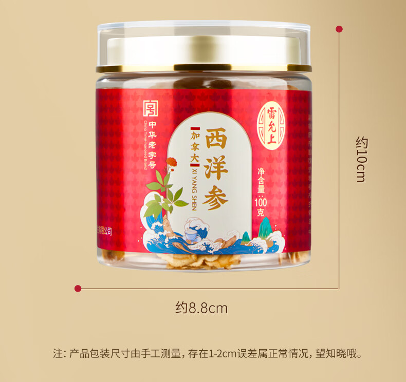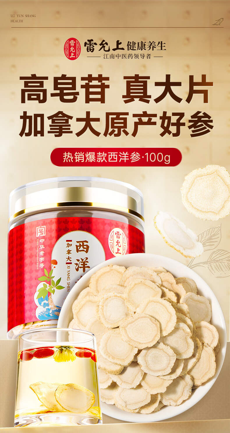 雷允上【官方】加拿大进口西洋参片特级花旗参送长辈父母礼盒 【店铺爆款】 100g*1罐 (2-3cm超大片)